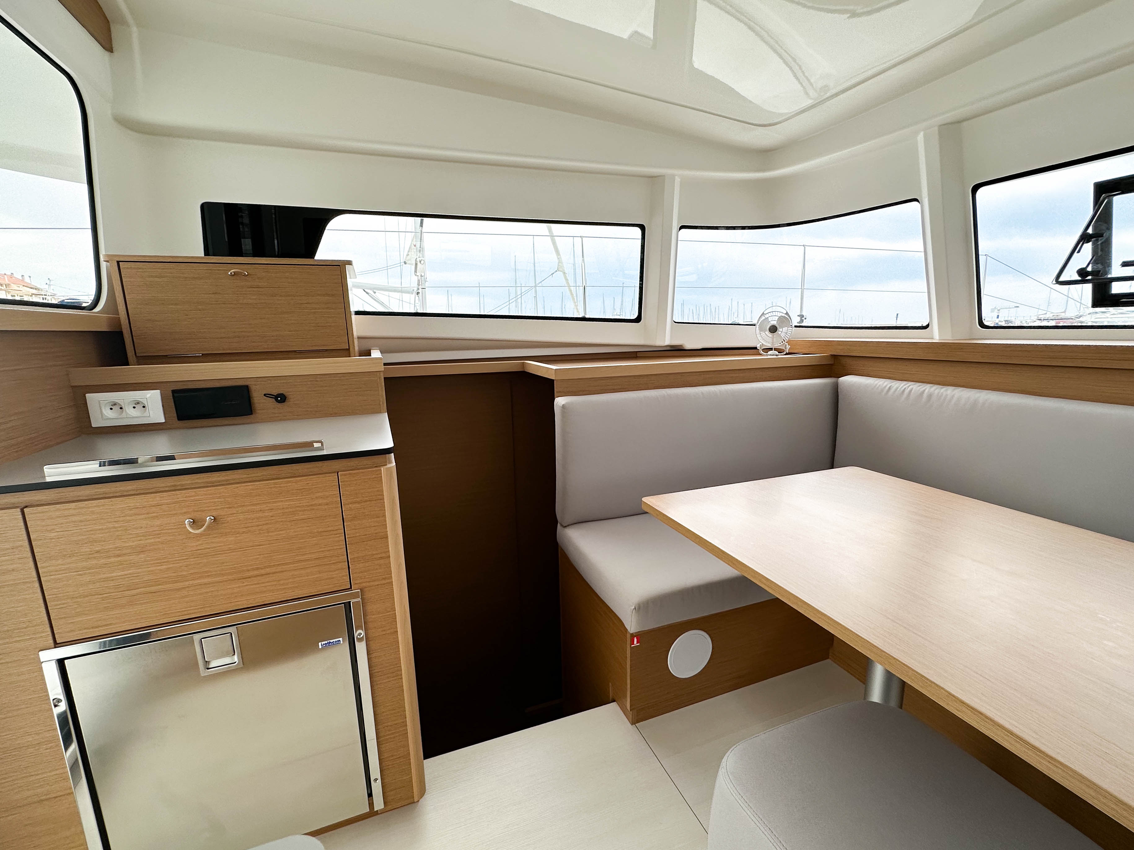 | Outside | Außendusche, Badeleiter, Badeplattform, Cockpitpolster, Cockpittisch, elektr. Ankerwinsch |