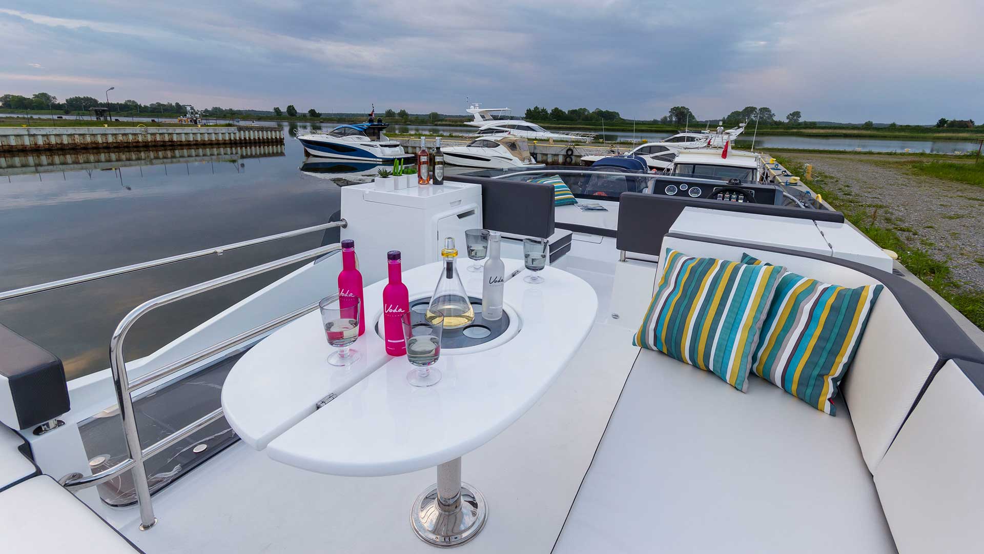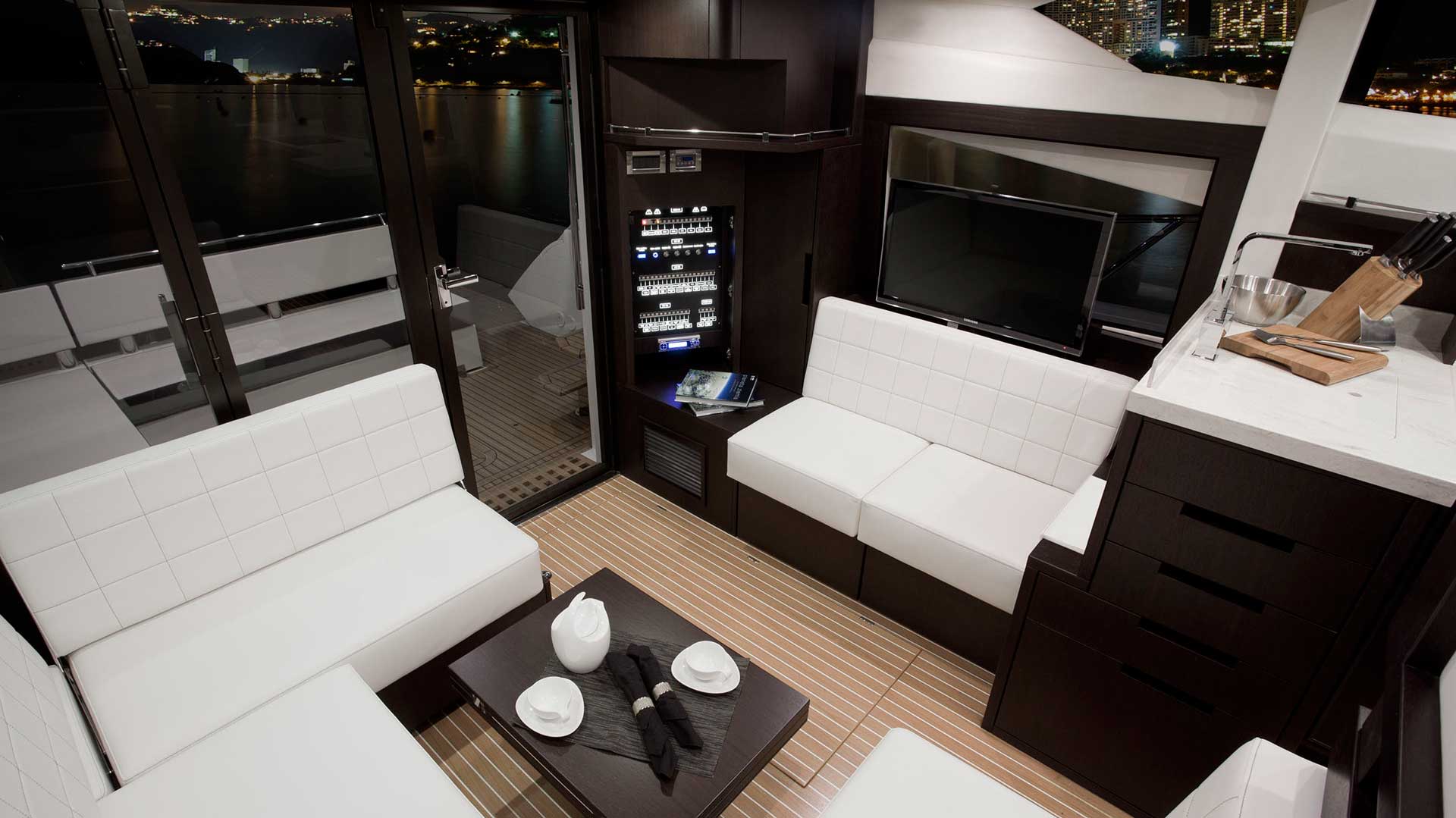 | Outside | Badeplattform (hydr.), elektr. Gangway, Grill, Teak im Cockpit |