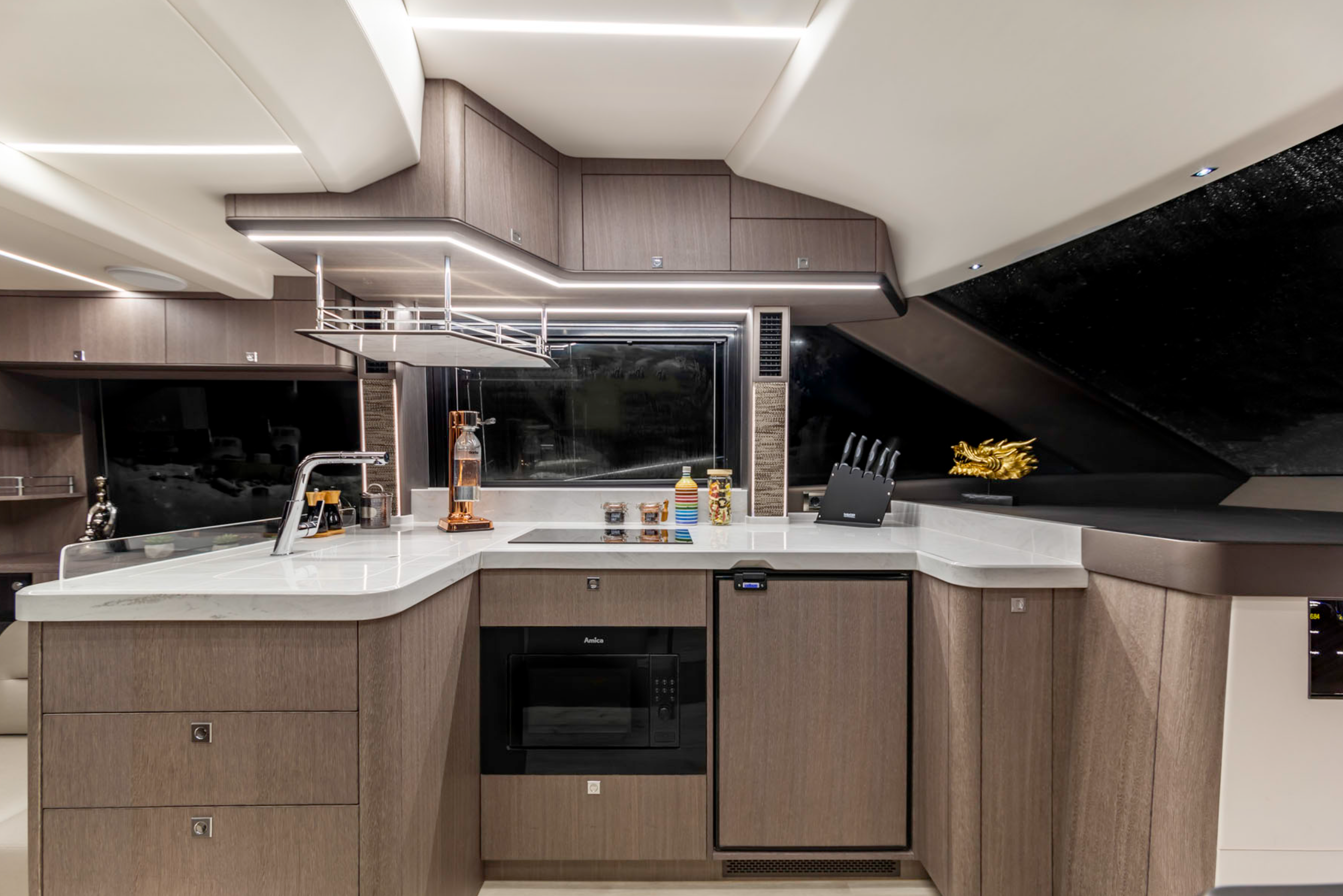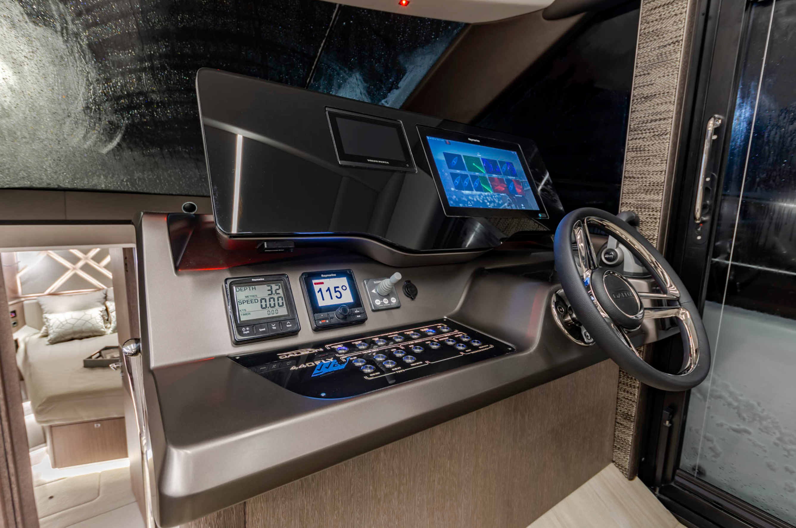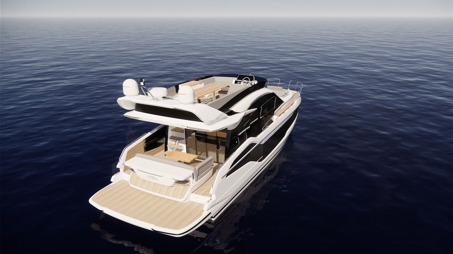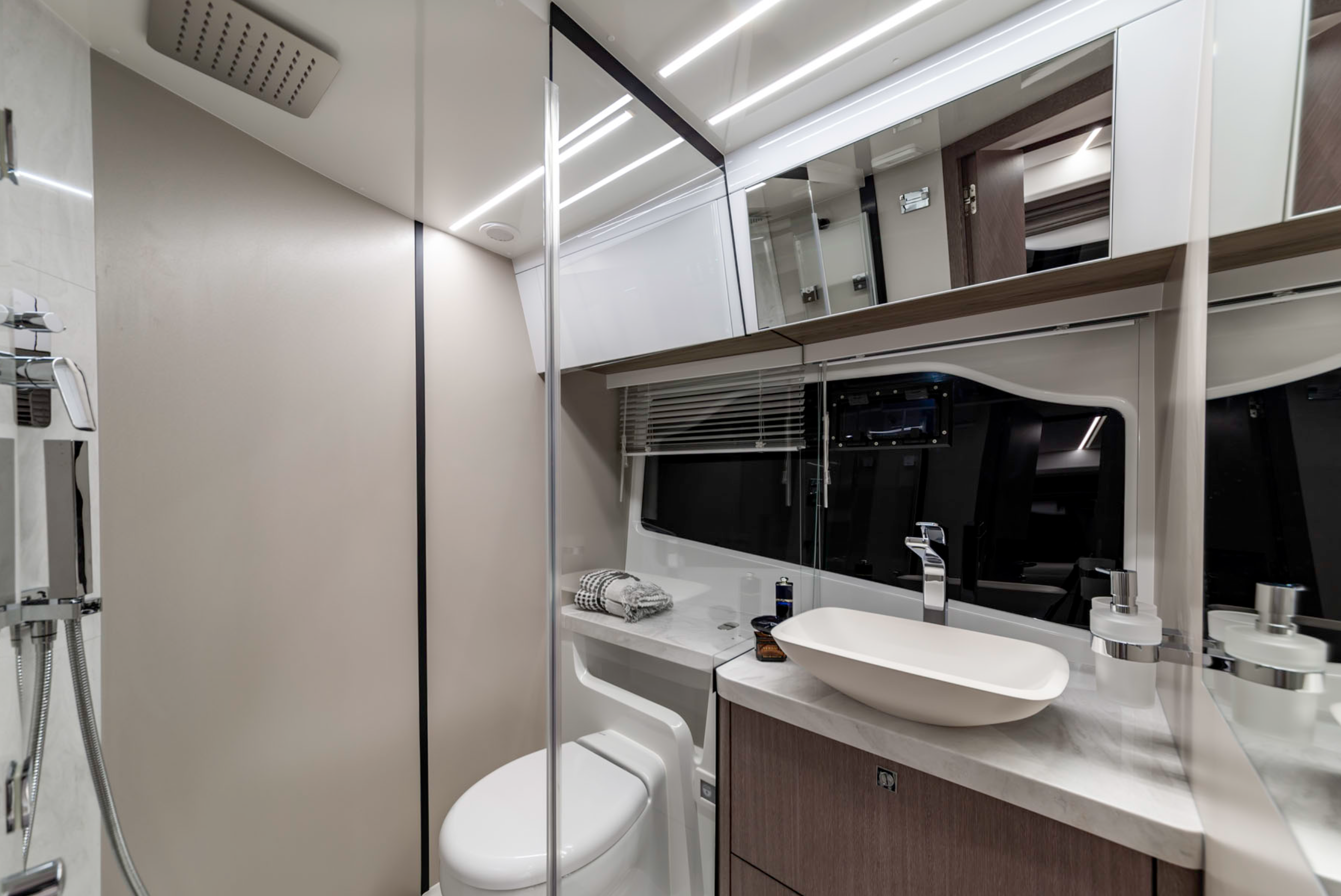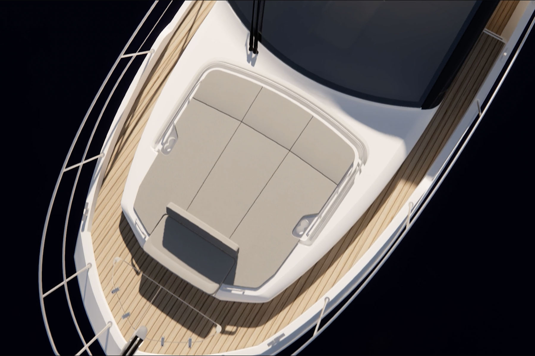 | Outside | Badeleiter, Badeplattform (hydr.), Biminitop, Cockpitdusche, Cockpitlautsprecher, Cockpittisch, elektr. Ankerwinsch, Flybridge, Grill, Treibanker |