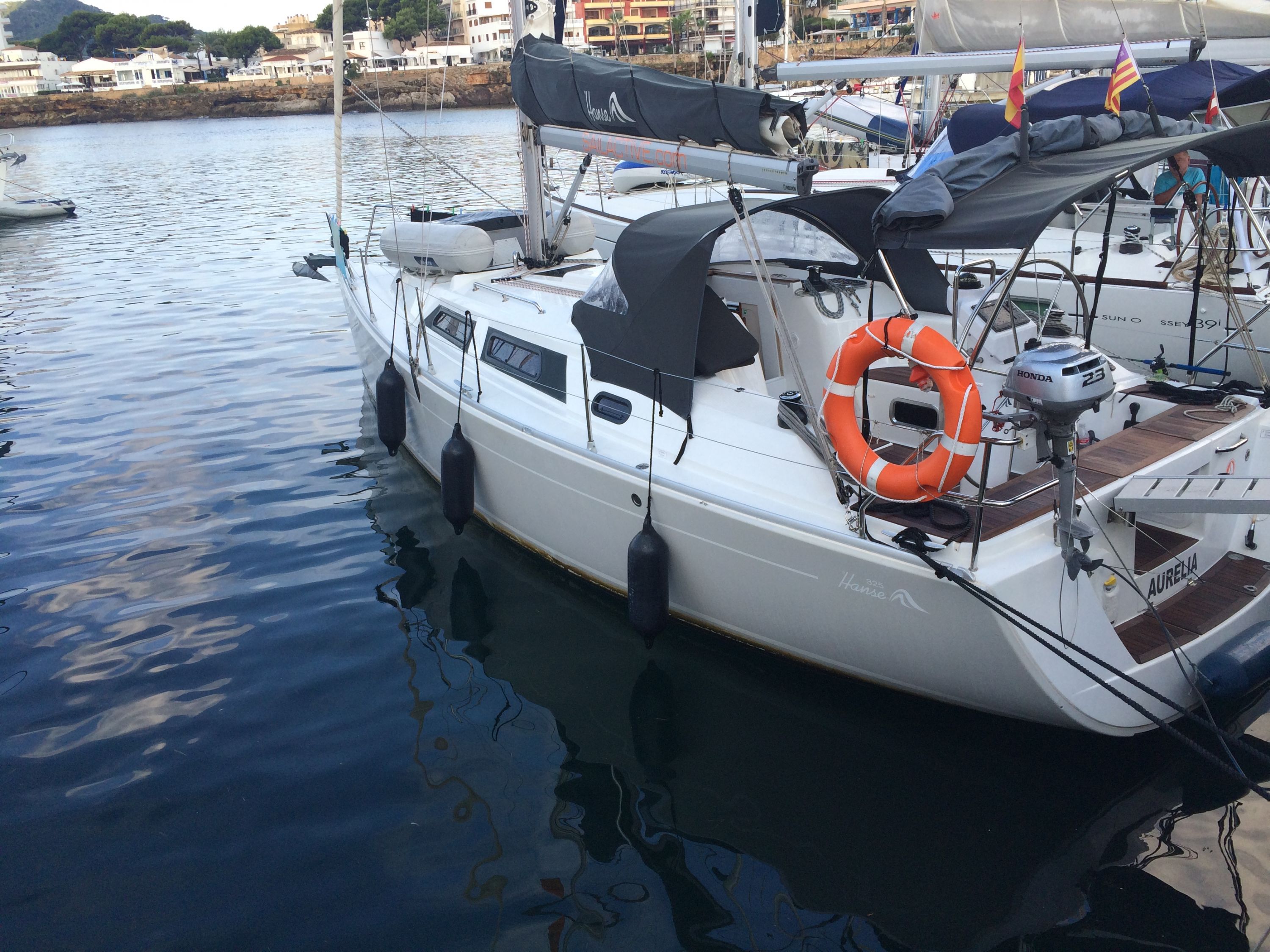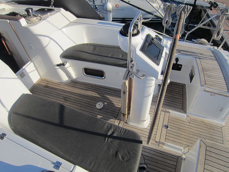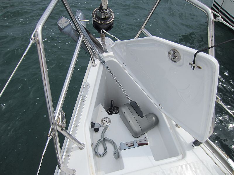 | Outside | 12 V-Anschluss, 220 V-Landanschluss, Badeleiter, Biminitop, Cockpitdusche, Cockpitlautsprecher, Cockpitpolster, Cockpittisch, elektr. Ankerwinsch, Faltpropeller, Gangway, Schnorchelausrüstung, Selbstholende Winschen, Sprayhood, Treibanker, Windex |