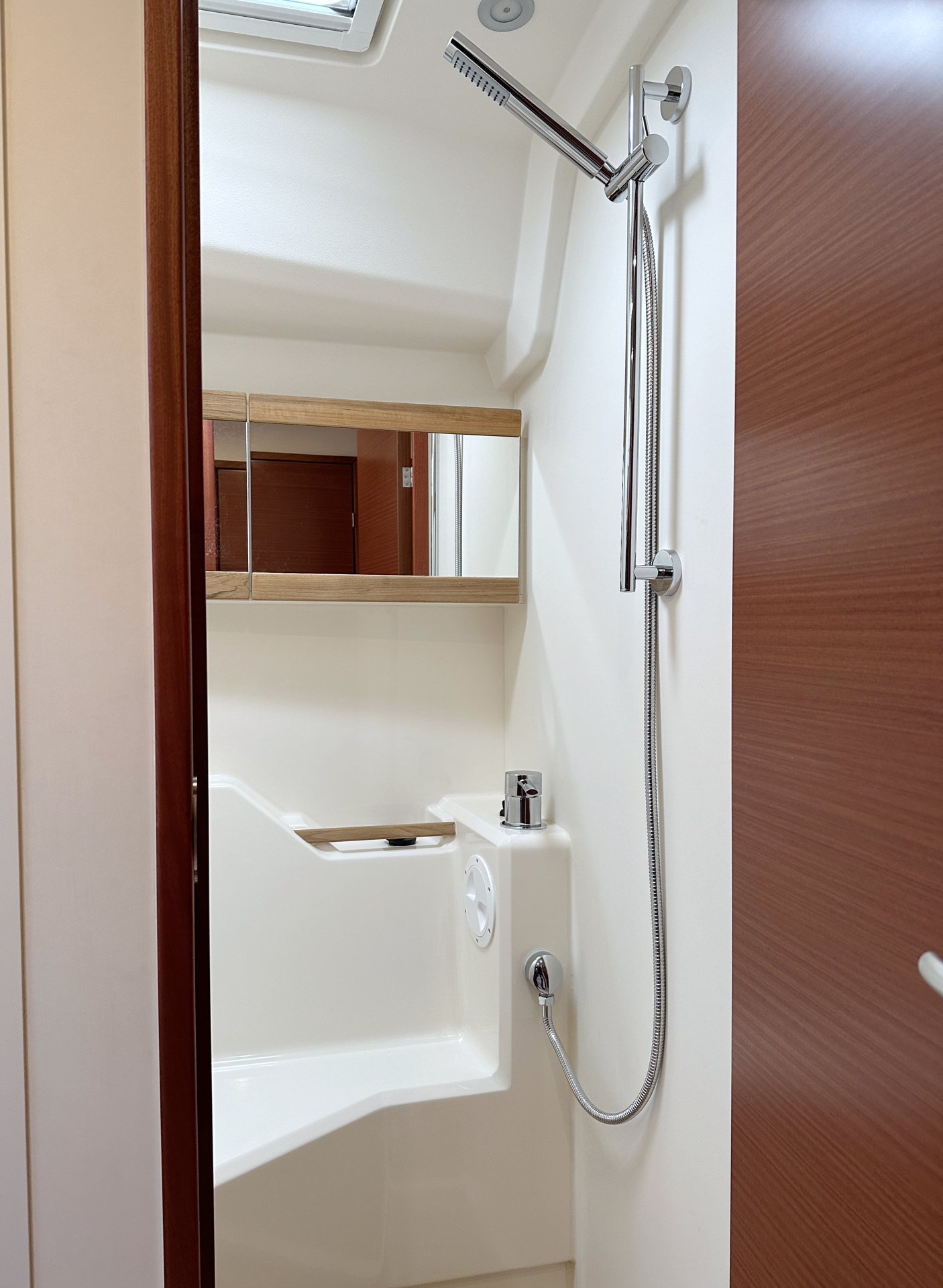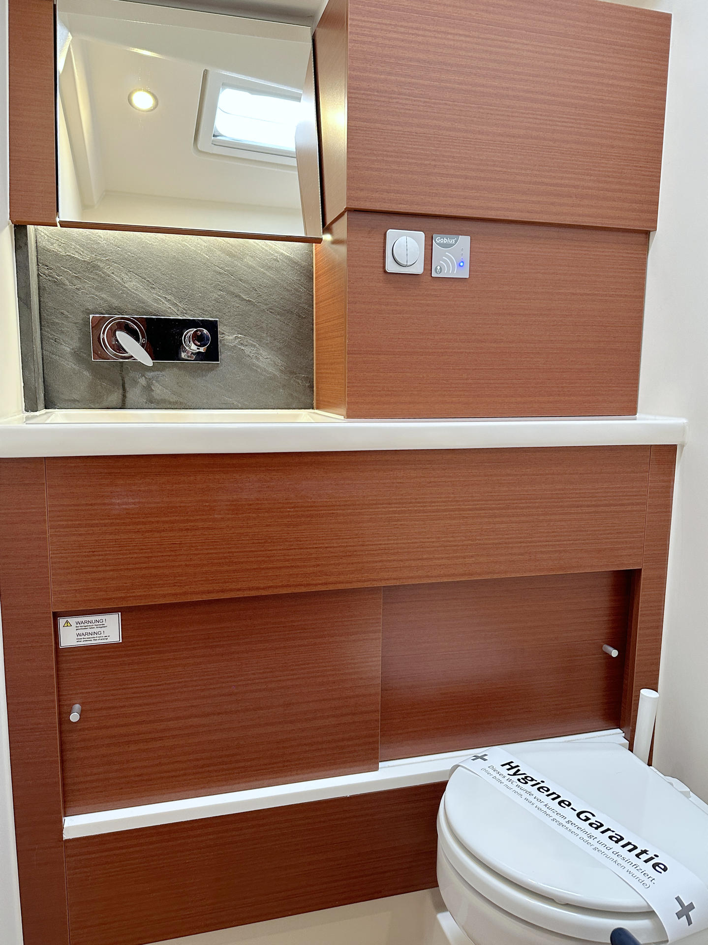 | Safety | AIS Empfänger, Ankerlicht, Automatikwesten, Autopilot, Bootsmannstuhl, Bordapotheke, Bordwerkzeug, Bugstrahlruder, elektr. Bilgepumpe, Epirb, Feuerlöscher, Flaggen, Navigationslichter, Nebelhorn, Notpinne, Notsignale, Rettungsinsel, Taschenlampe, UKW-Funk, Zweitanker |
