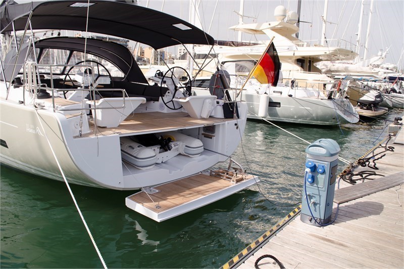 | Outside | 220 V-Landanschluss, Badeleiter, Biminitop, Cockpitdusche, Cockpitlautsprecher, Cockpittisch, elektr. Ankerwinsch, elektr. Winsch, Gangway, Sprayhood, Teakdeck, Treibanker, Windex |
