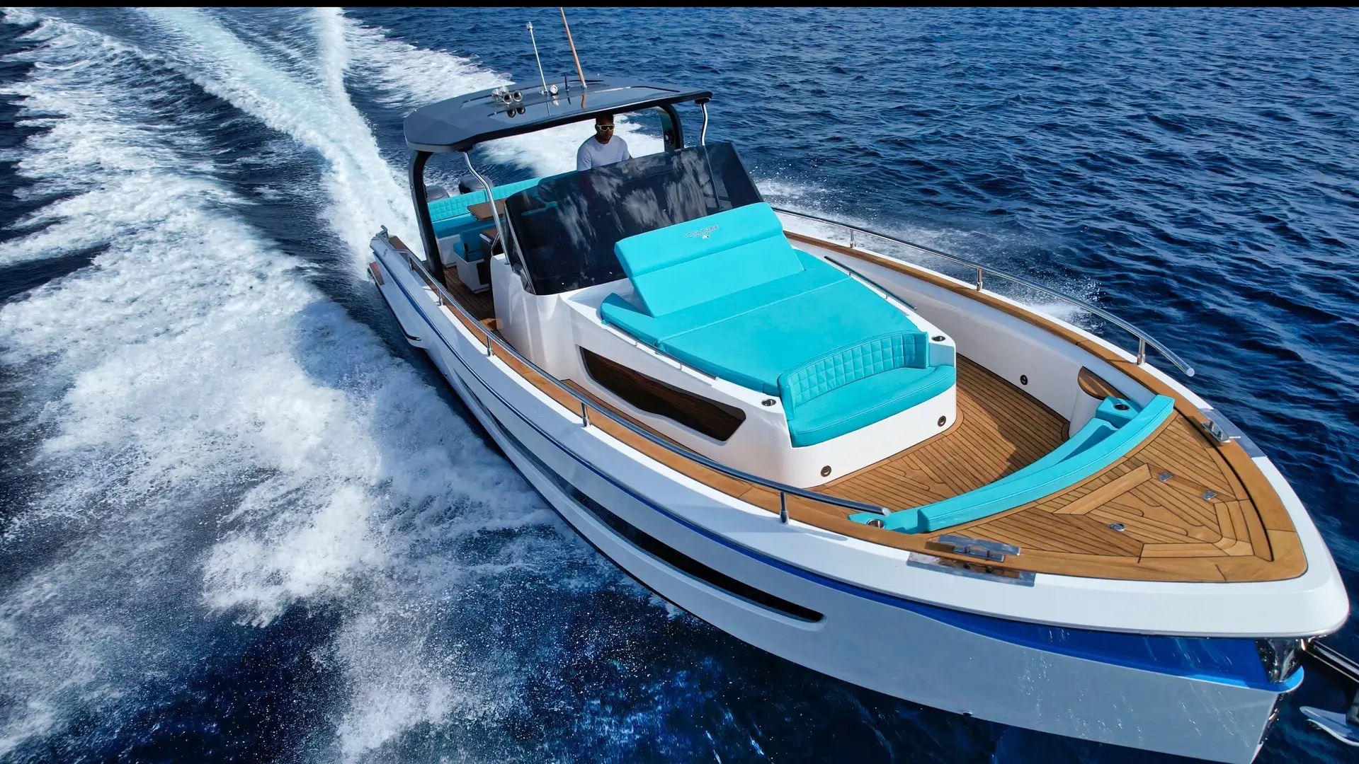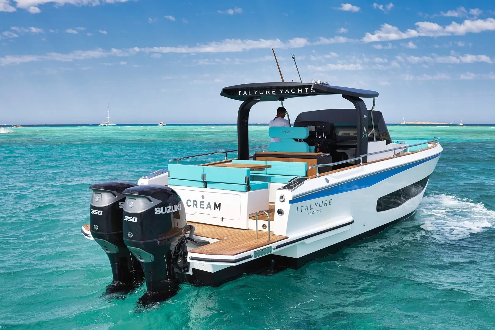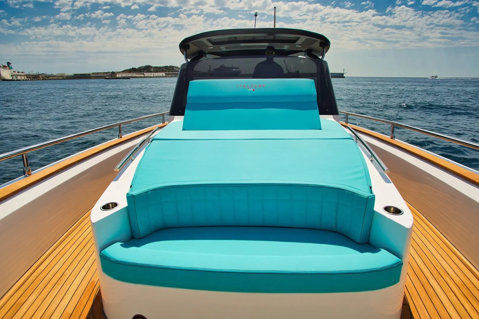 | Outside | Biminitop, Cockpitkühlschrank, Cockpitpolster, Cockpittisch, elektr. Ankerwinsch, Fender, Festmacherleinen, Heckdusche, Teak im Cockpit, Wet Bar |