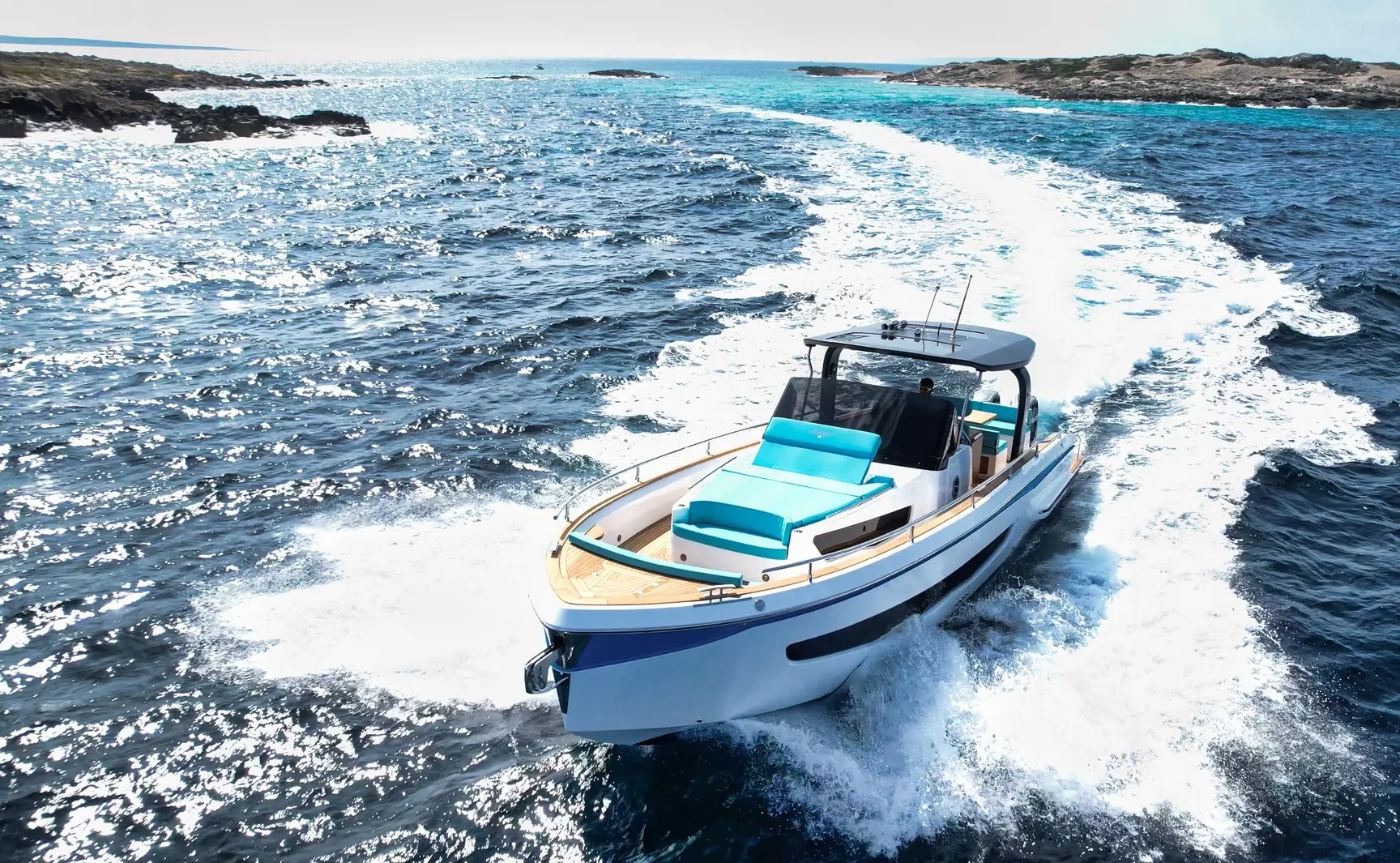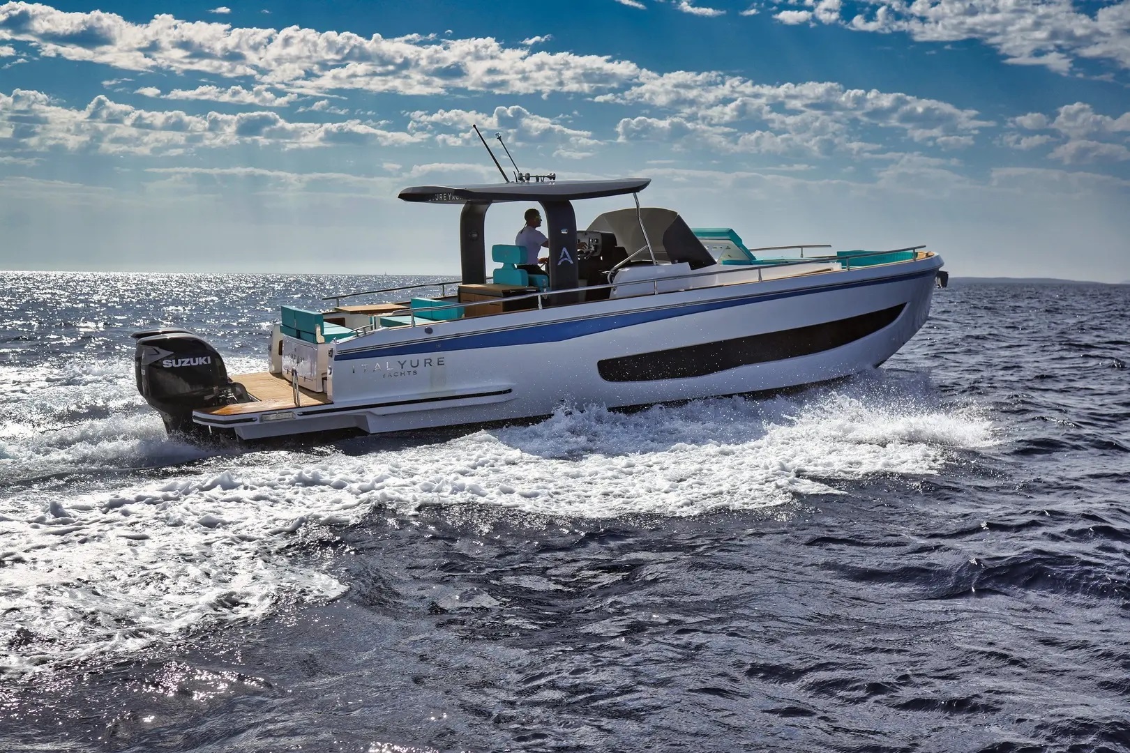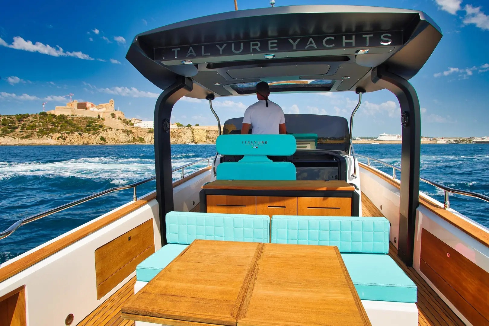 | Outside | Biminitop, Cockpitkühlschrank, Cockpitpolster, Cockpittisch, elektr. Ankerwinsch, Fender, Festmacherleinen, Heckdusche, Teak im Cockpit, Wet Bar |