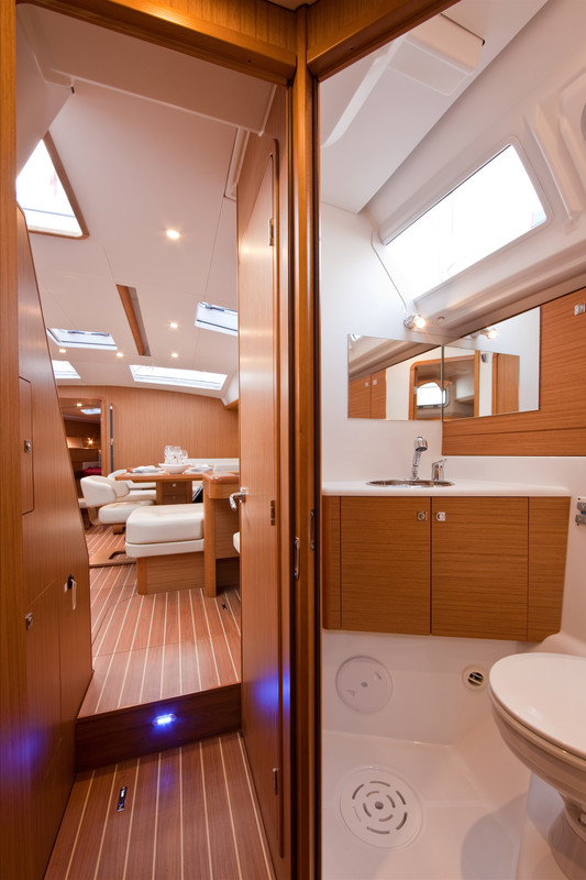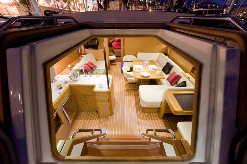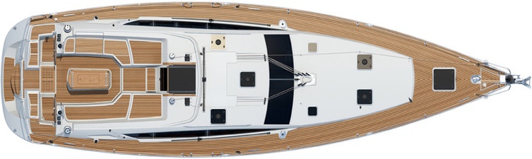 Outside Anker mit Kette, Badeleiter, Biminitop, Cockpitdusche, Cockpitlautsprecher, Cockpittisch, elektr. Ankerwinsch, Fender, Gangway, Solaranlage, Sprayhood, Teak im Cockpit, Teakdeck, Windex