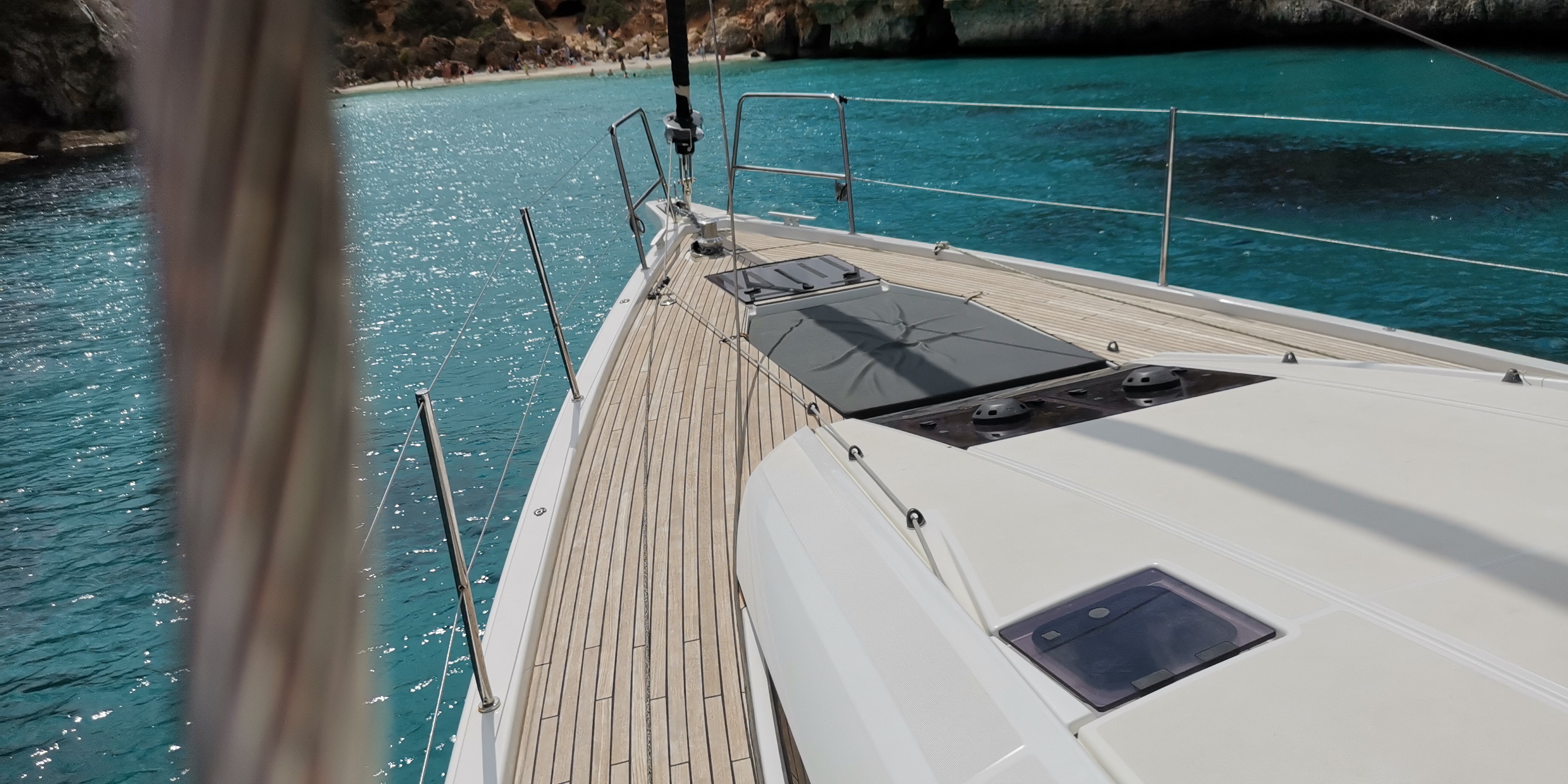 | Outside | Ankerwinsch, Biminitop, elektr. Ankerwinsch, elektr. Winsch, Sprayhood, Teakdeck, Wantenschneider |
