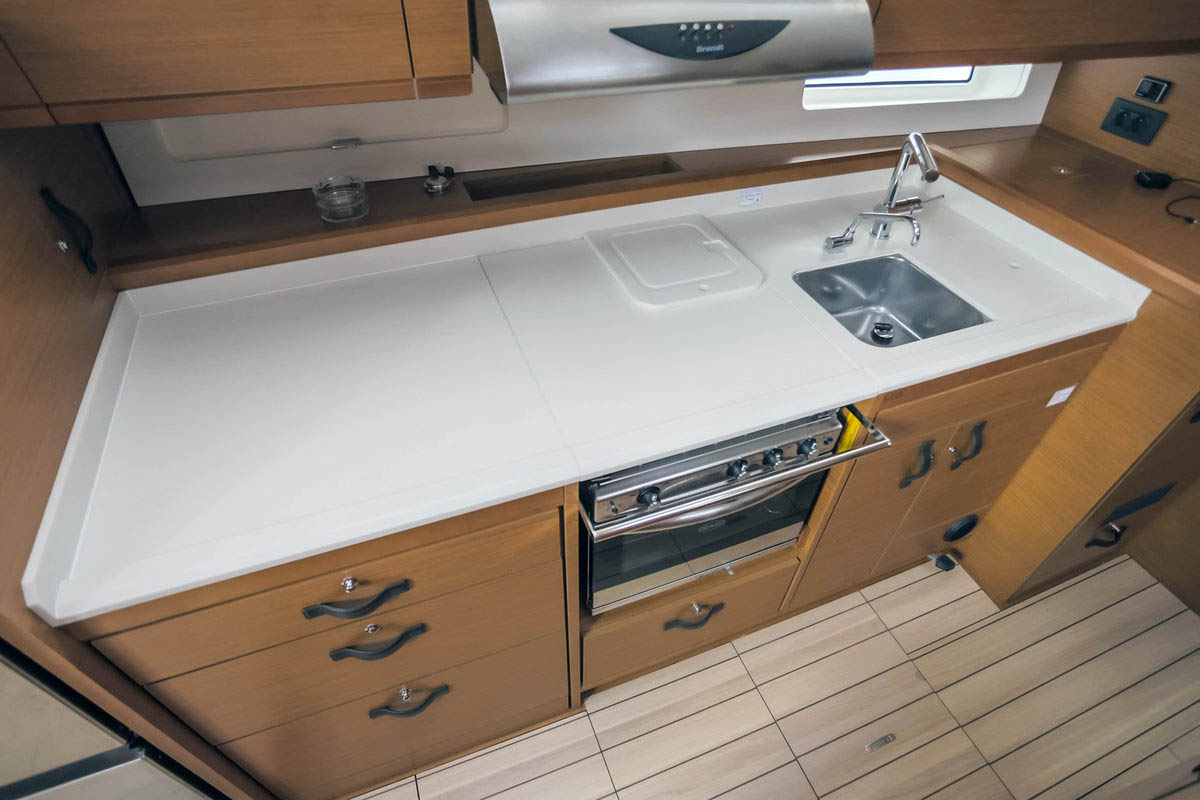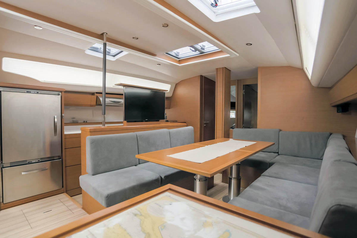 | Outside | 220 V-Landanschluss, Anker mit Kette, Badeleiter, Badeplattform, Biminitop, Cockpitdusche, Cockpitkühlschrank, Cockpitlautsprecher, Cockpitpolster, Cockpittisch, elektr. Ankerwinsch, elektr. Genuawinsch, Sonnendeck, Sprayhood, Teak im Cockpit, Winschen |
