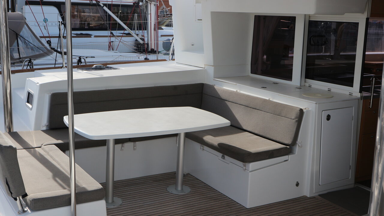 | Outside | Cockpitkühlschrank, Cockpitpolster, elektr. Ankerwinsch, elektr. Winsch, Faltpropeller, Sprayhood, Teak im Cockpit |
