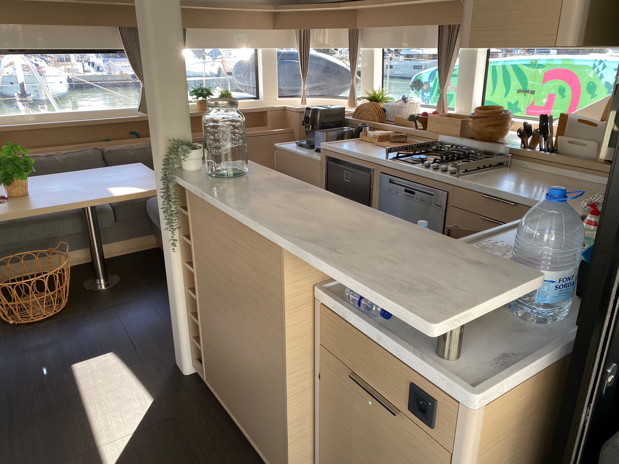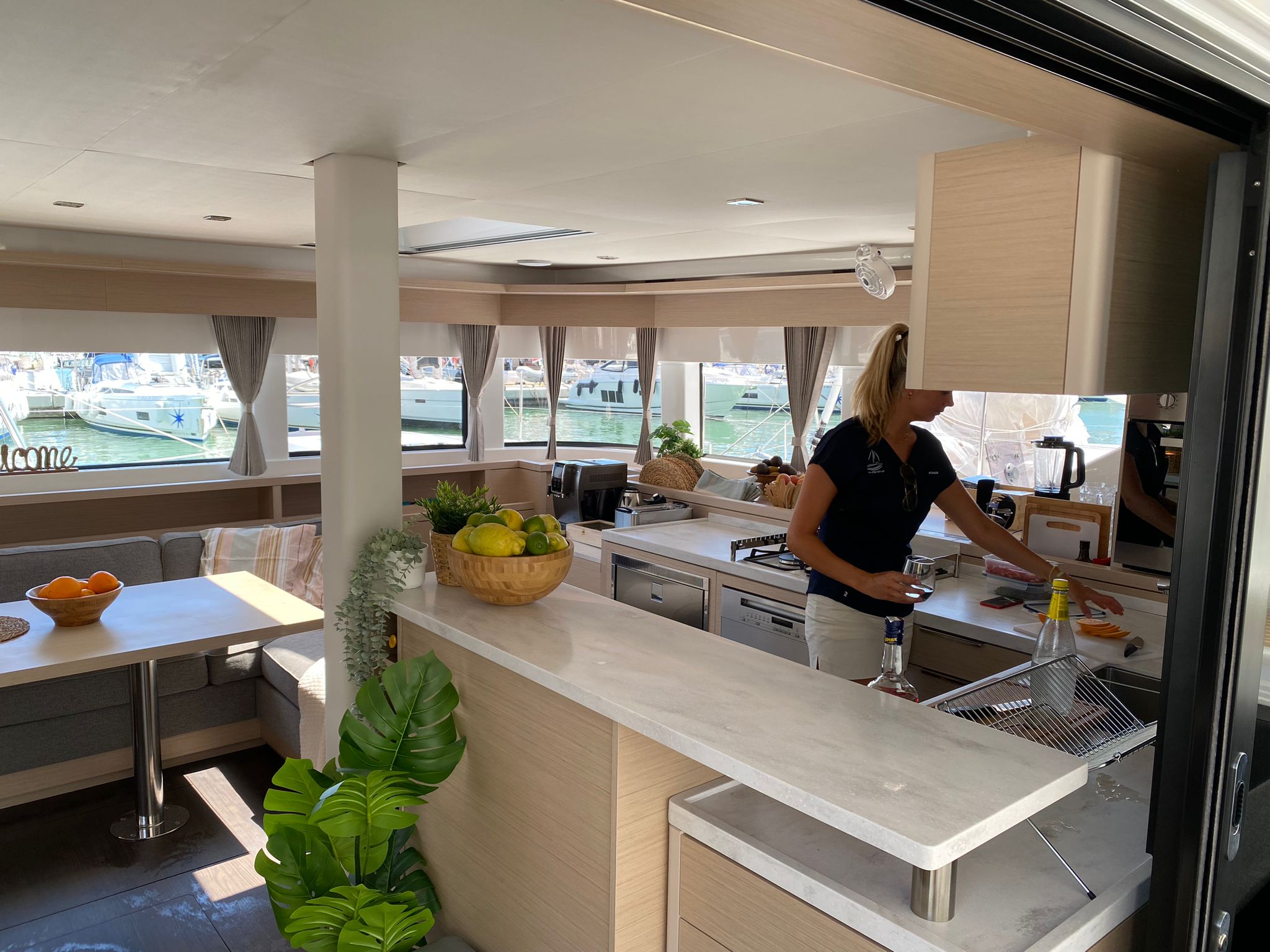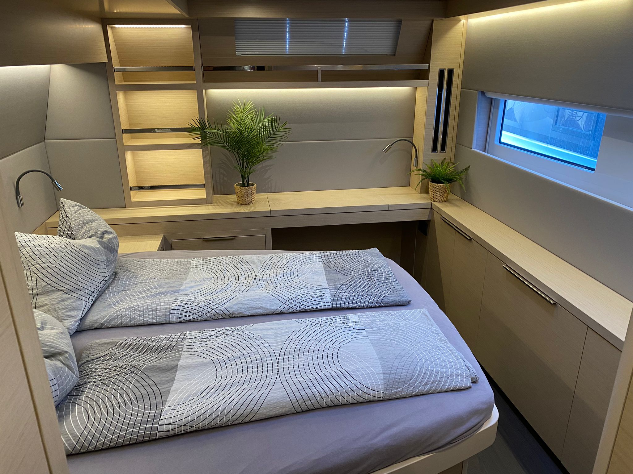 | Inside | Eiswürfelmaschine, FUSION Sound System, Gasdetektor, Generator, Inverter 12V/220V, Klimaanlage (ohne Landstrombedarf), Kühlschrank, Mikrowelle, Radio mit USB und Bluetooth, Warmwasser, Watermaker, WC (elektr.) |
