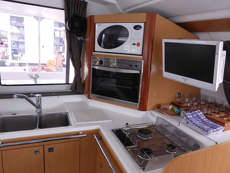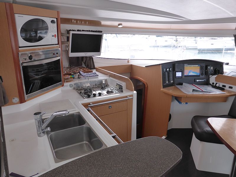 | Outside | 220 V-Landanschluss, Badeleiter, Biminitop, Cockpitdusche, Cockpitlautsprecher, Cockpitpolster, Cockpittisch, Davits, elektr. Ankerwinsch, Gangway, Sprayhood, Treibanker, Windex |