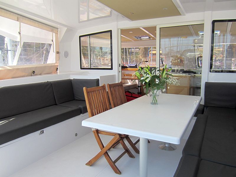 | Outside | Anker mit Kette, Biminitop, Cockpitpolster, Cockpittisch, Festmacherleinen, Sprayhood, Teakdeck, Windex |
