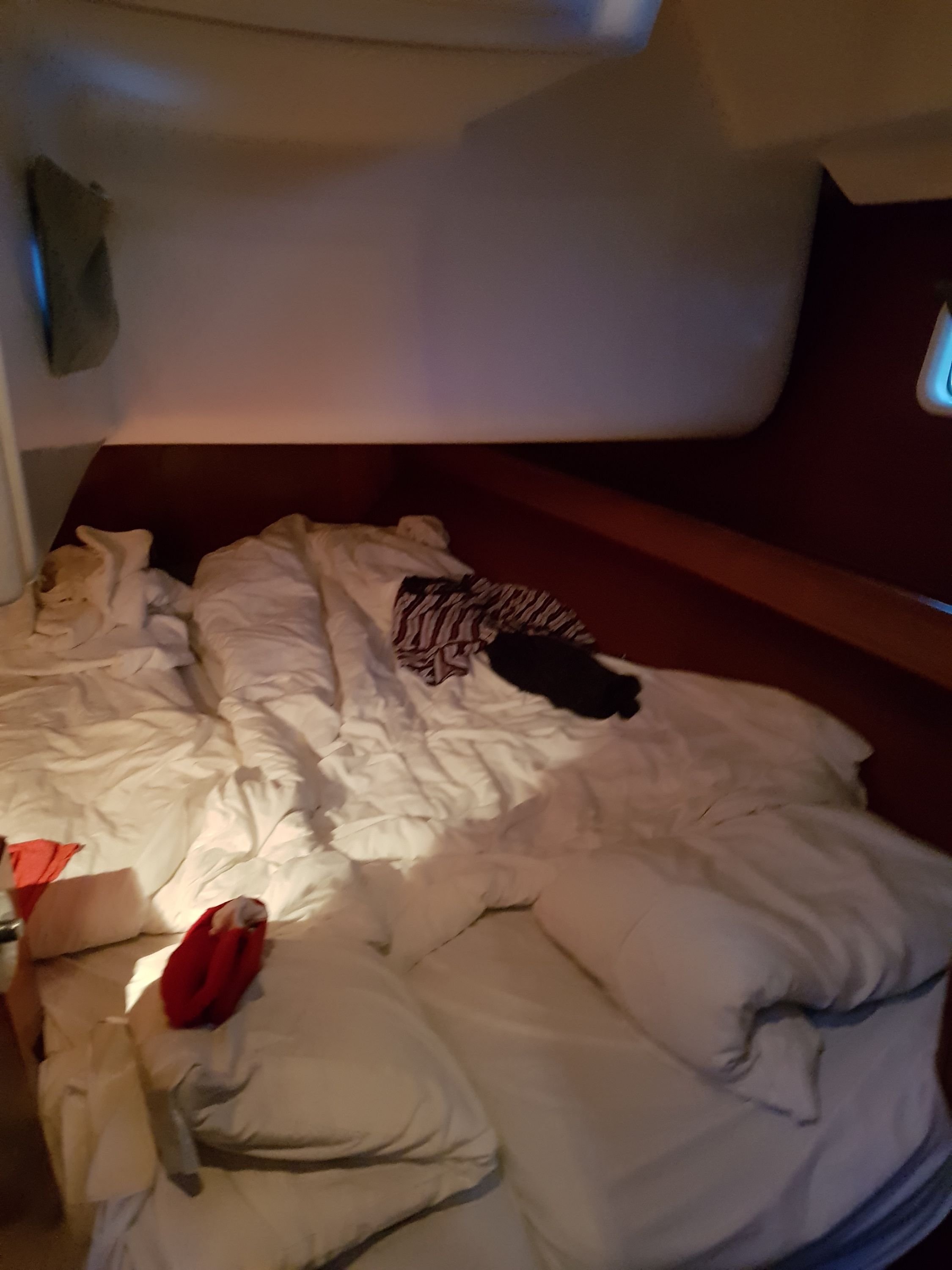 Autopilot, Bootsmannstuhl, Bordapotheke, Bordwerkzeug, Feststoffschwimmwesten, Feuerlöscher, Handbilgepumpe, Handschuhe, Lifebelts, Navigationslichter, Nebelhorn, Notpinne, Notsignale, Radarreflektor, Rettungsbojenlicht, Rettungsinsel, Taschenlampe, UKW-Funk, Zweitanker |