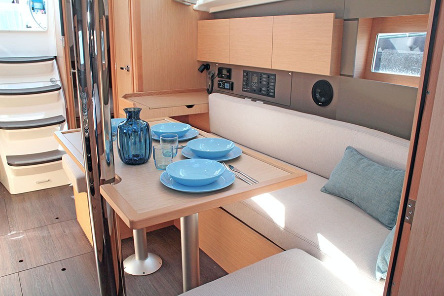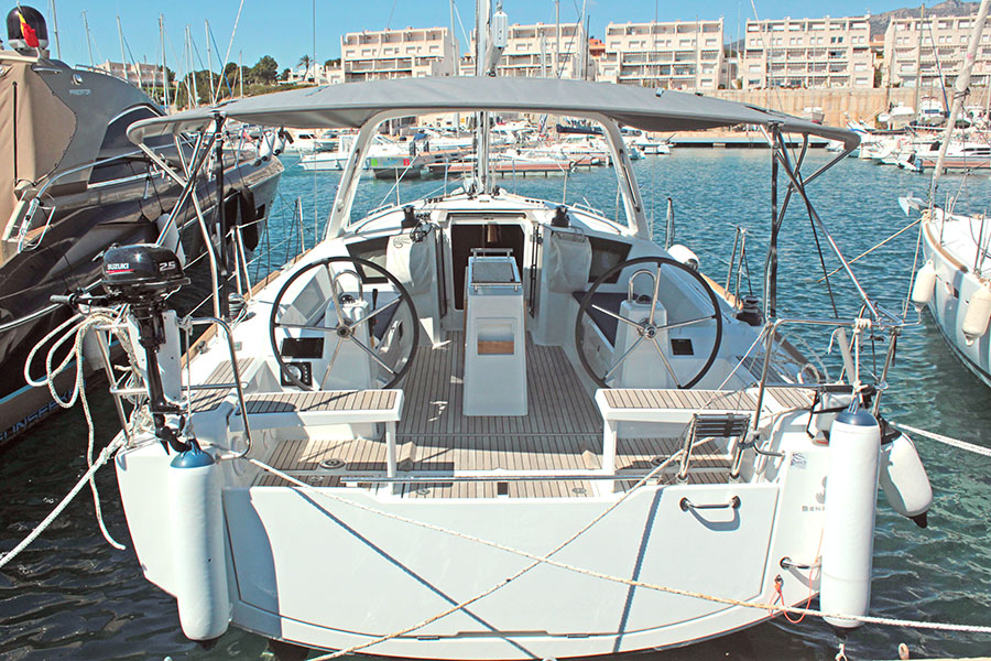| Outside | 12 V-Anschluss, Badeleiter, Badeplattform, Biminitop, Cockpitlautsprecher, Cockpitpolster, Cockpittisch, elektr. Ankerwinsch, Sprayhood, Teak im Cockpit |