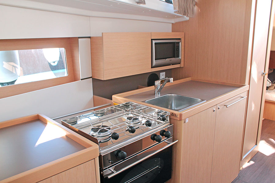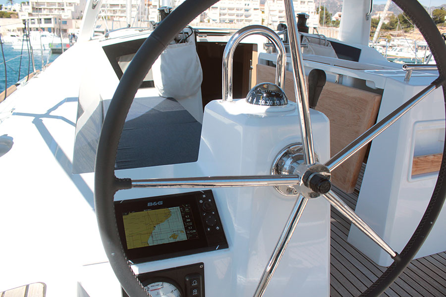 | Safety | Autopilot, Bugstrahlruder, elektr. Bilgepumpe, Feststoffschwimmwesten, Navigationslichter, Notpinne, Rettungsinsel, Sicherheitsausrüstung, UKW-Funk |
