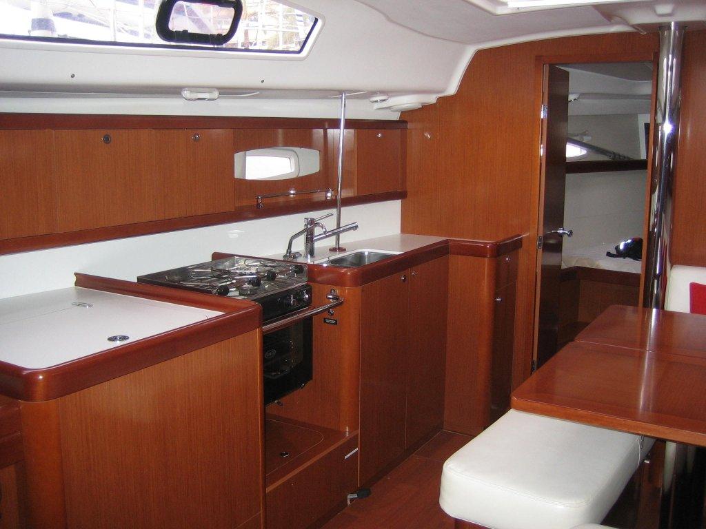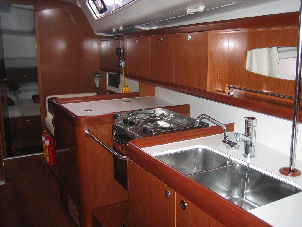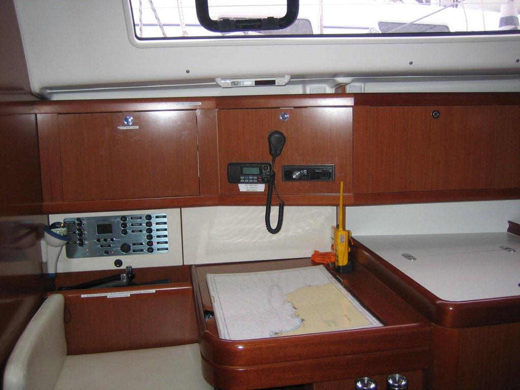 | Navigation | Barometer, Echolot, elektr. Seekarten, Fernglas, GPS mit Kartenplotter, GPS mit Kartenplotter im Cockpit, Hafenhandbücher, Handpeilkompass, Kompass, Navigationsbesteck, Seekarten, Sumlog, Windmesser |