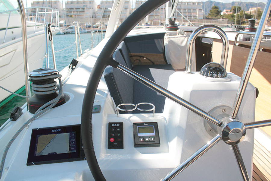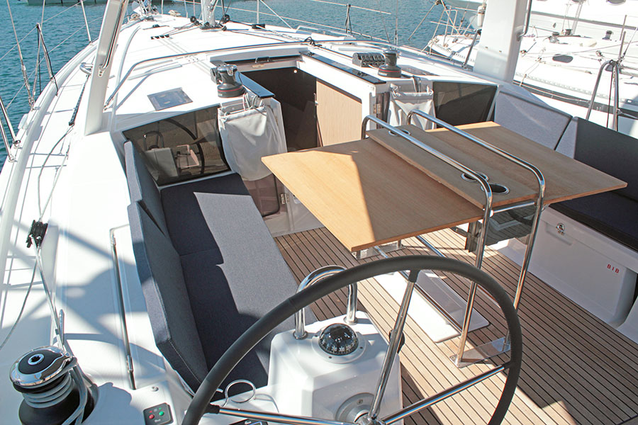 | Outside | 12 V-Anschluss, Badeleiter, Badeplattform, Biminitop, Cockpitlautsprecher, Cockpitpolster, Cockpittisch, elektr. Ankerwinsch, Sprayhood, Teak im Cockpit |