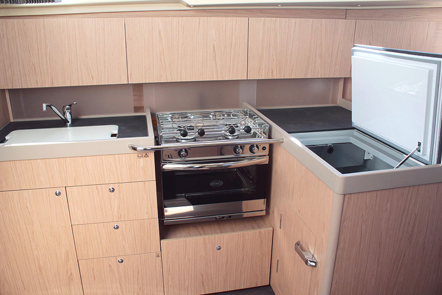 | Inside | 12V Steckdose, 220V Steckdosen, Backofen, Fäkalientank, Gasherd, Geschirr, Hi-Fi System, Kühlbox, Kühlschrank, Ladegerät, Lautsprecher im Salon, Salontisch absenkbar, Warmwasser |