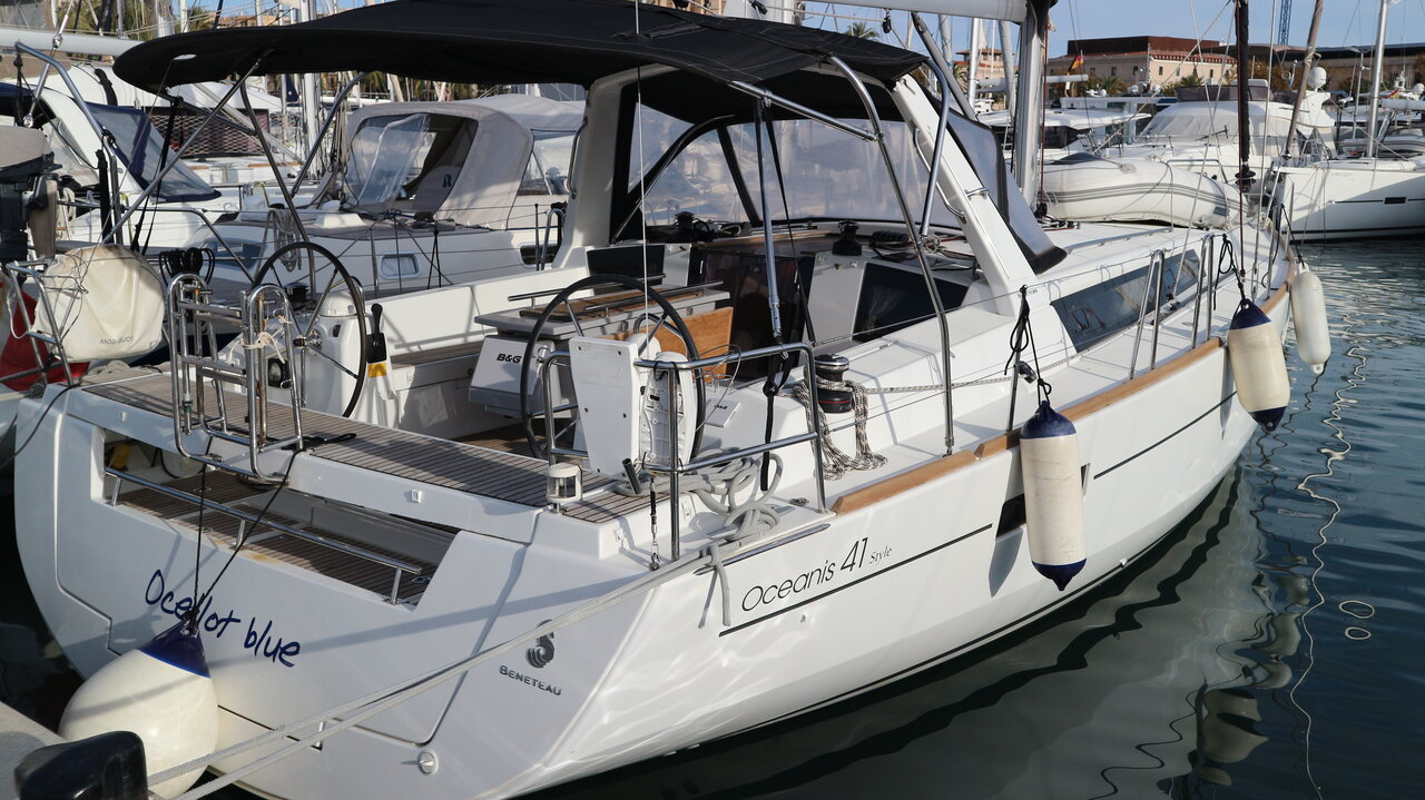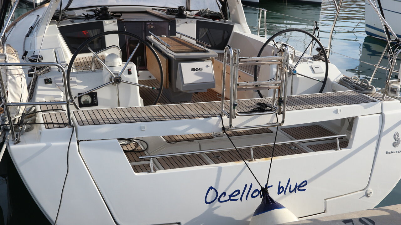 | Outside | 12 V-Anschluss, 220 V-Landanschluss, Anker mit Kette, Ankerkettenzähler, Außendusche, Badeleiter, Badeplattform, Biminitop, Cockpitdusche, Cockpitlautsprecher, Cockpitpolster, Cockpittisch, elektr. Ankerwinsch, Gangway, Heckdusche, Sprayhood, Treibanker, Windex, Winschen |