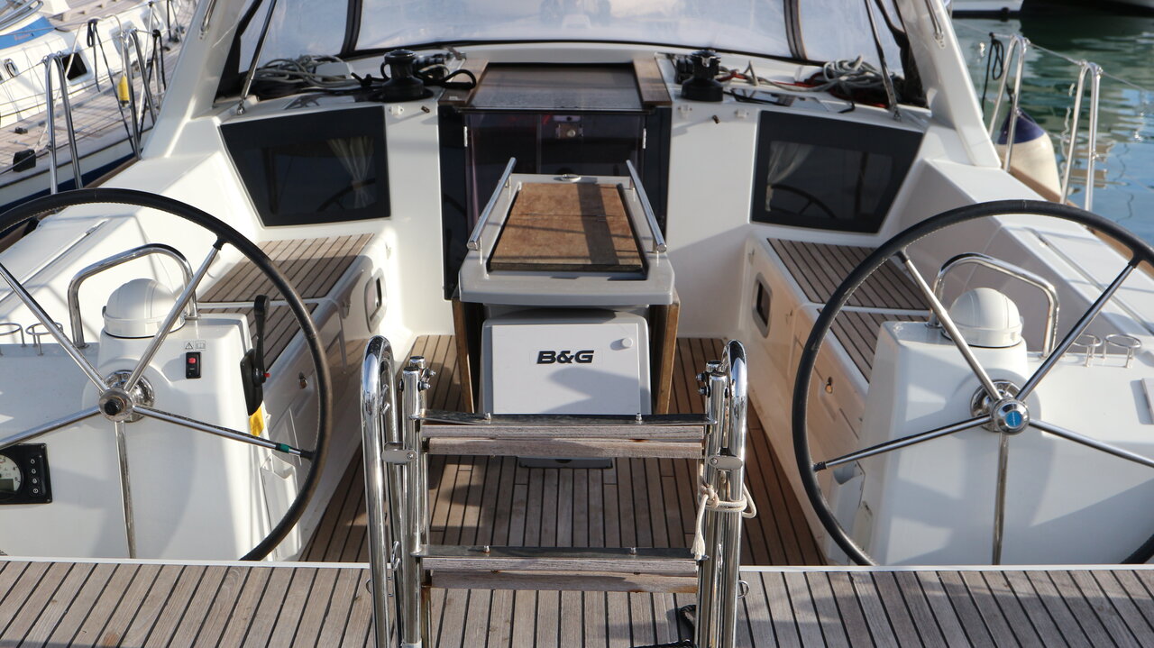 | Navigation | Barometer, Echolot, elektr. Seekarten, Fernglas, GPS mit Kartenplotter im Cockpit, Hafenhandbücher, Handpeilkompass, Kompass, Seekarten, Sumlog, Windmesser |