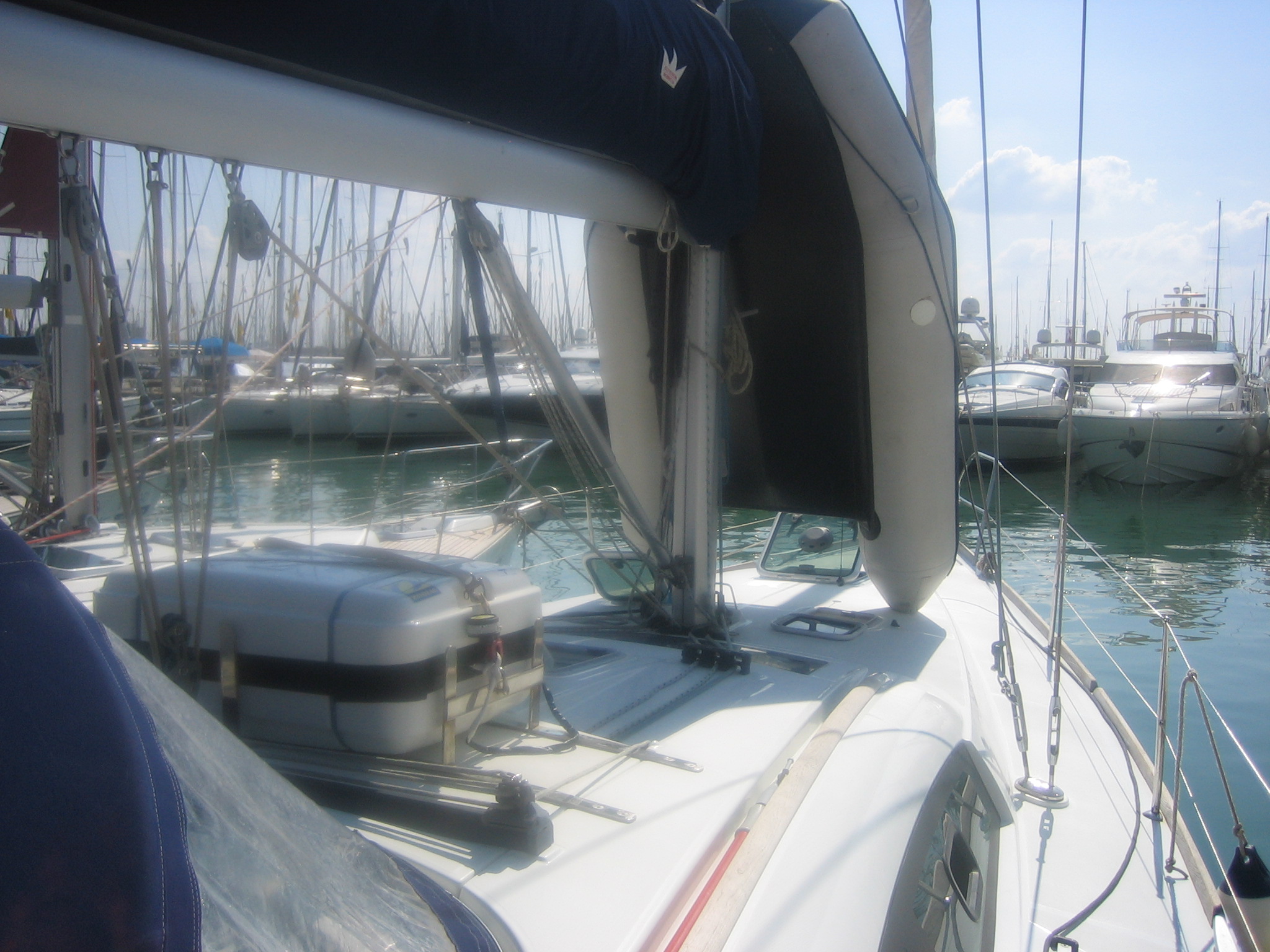 - Auf Drängen (teilweise) repariert wurden vor Abfahrt: Autopilot (Defekt), Sprayhood (eingeschränkt benutzbar), VHF ohne GPS, Kühlschranktür,