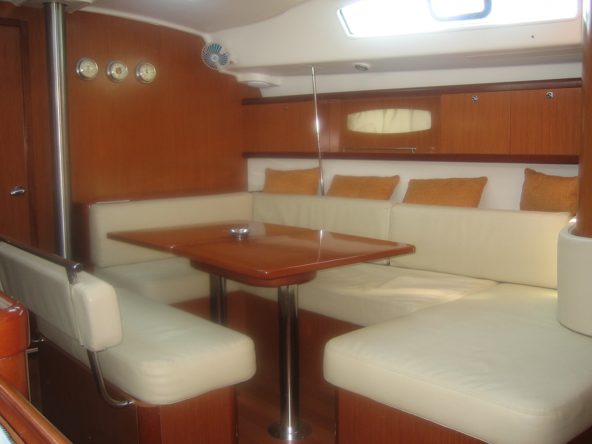 Die Yacht war dem Alter entsprechend "gebraucht". Polster, Schränke, Bodenbretter und Segel benötigen ein Refit. Insgesamt kann das Boot gut genutzt werden, die Erwartungen an die Einrichtung sollten bei diesem Baujahr nicht zu hoch angesetzt werden. Für 3 Paare war die Größe des Bootes sehr gut. Die Ausstattung entspricht dem Standard, kann bei Bedarf vor Ort optimiert werden. Das Personal ist super, auch Hilfe unterwegs funktioniert sehr gut.