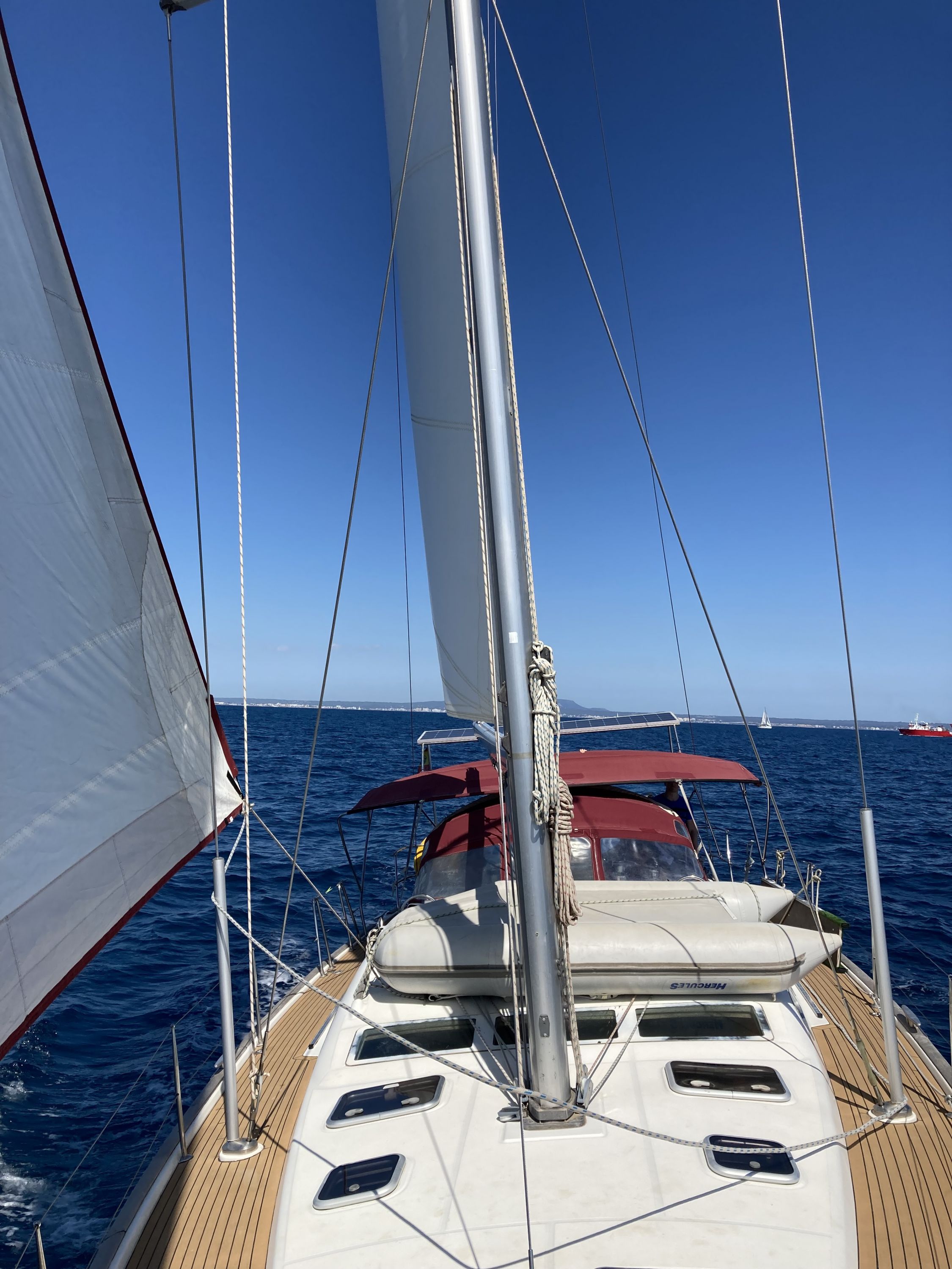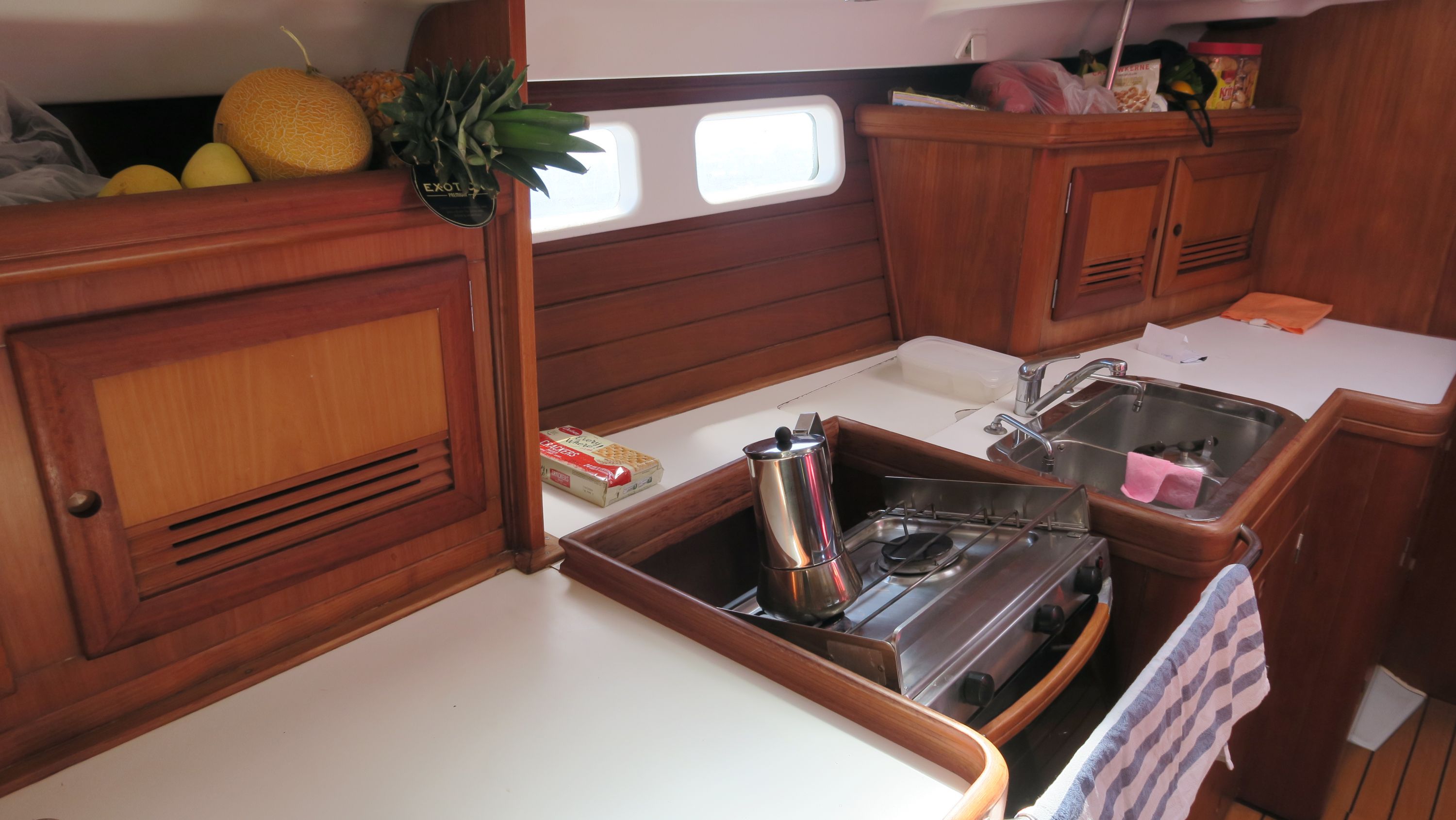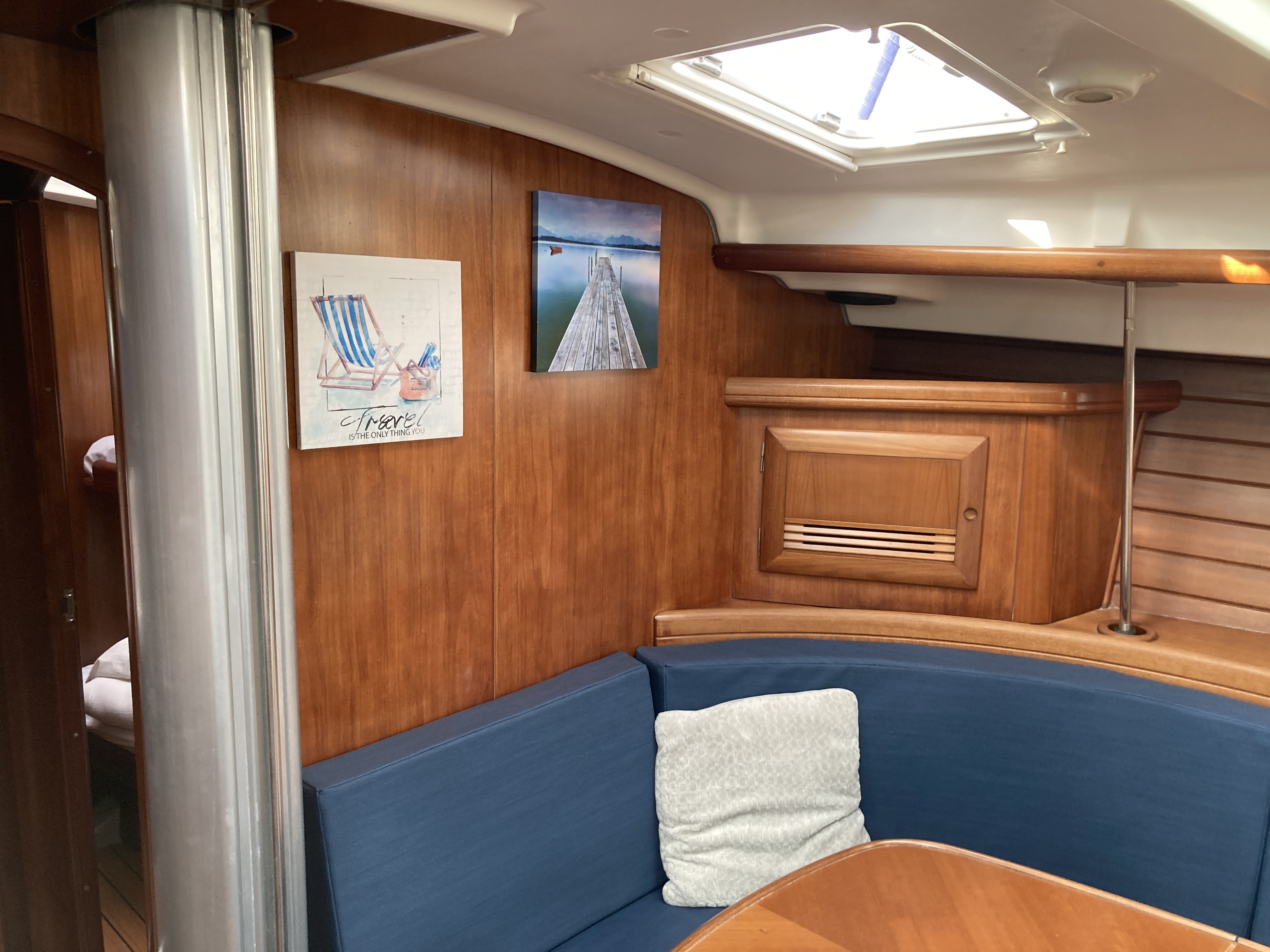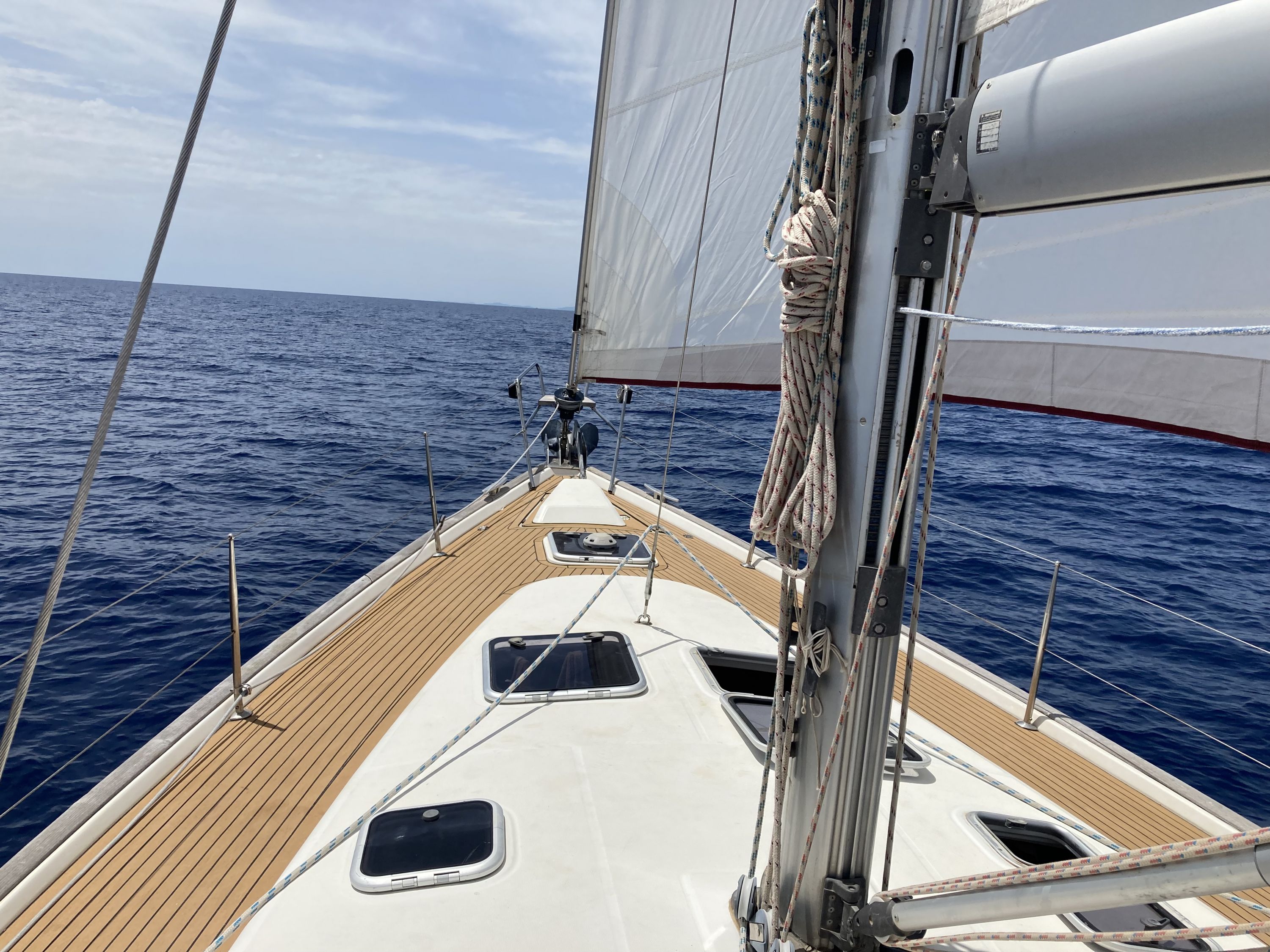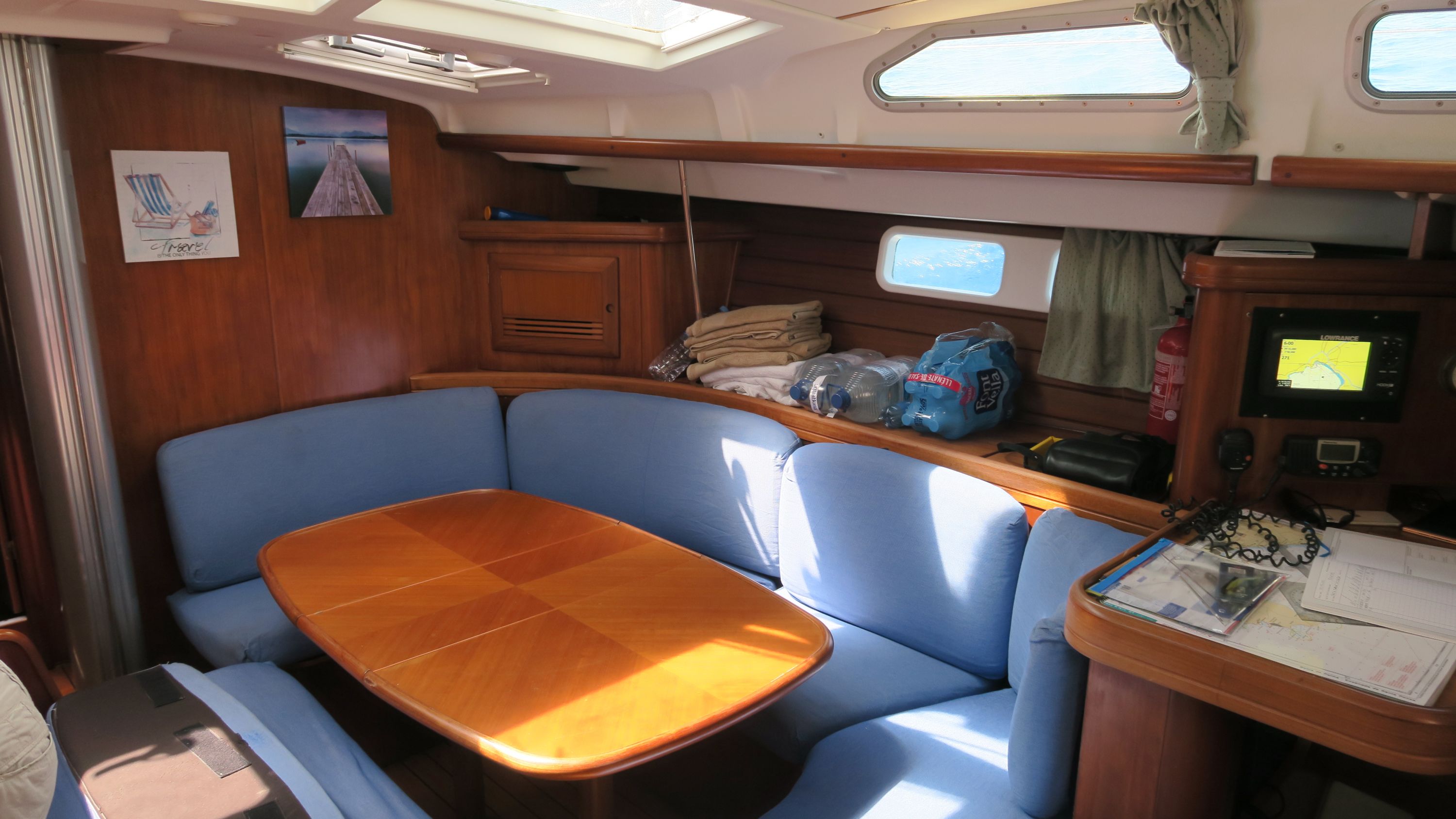 | Navigation | Barometer, Drehzahlmesser, Echolot, Fernglas, GPS mit Kartenplotter im Cockpit, GPS mit Kartenplotter im Salon, Hafenhandbücher, Kompass, Motorstundenzähler, Navigationsbesteck, Seekarten, Sumlog, Windmesser |