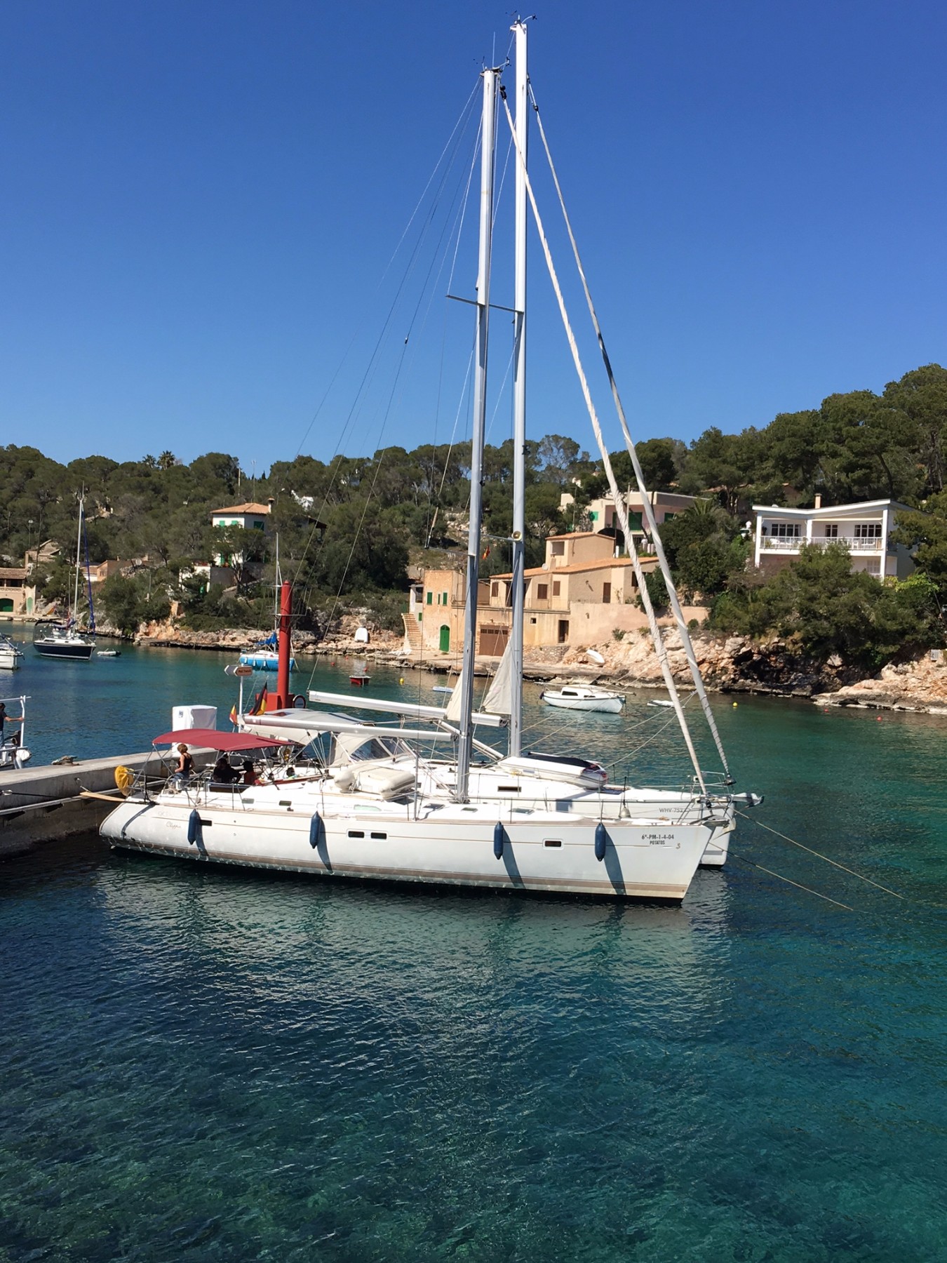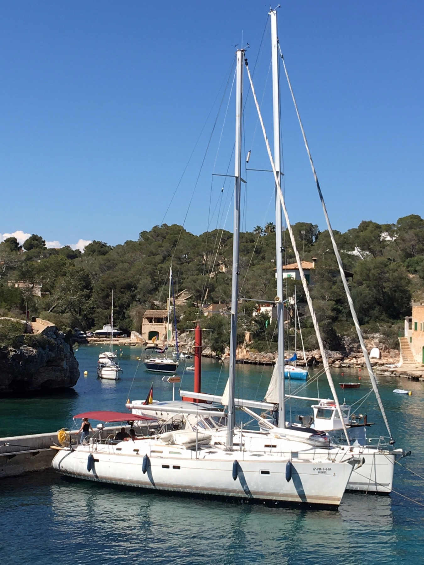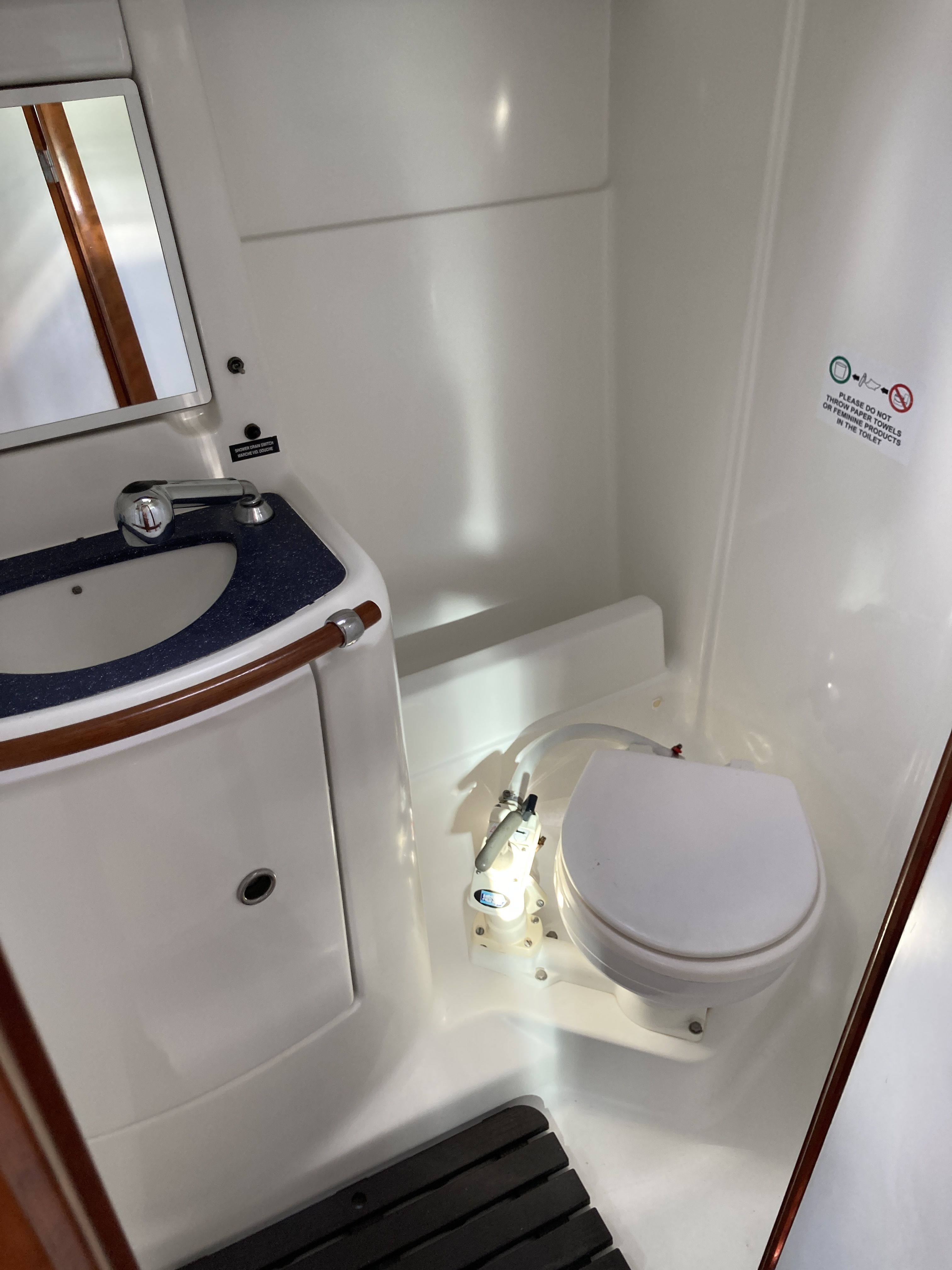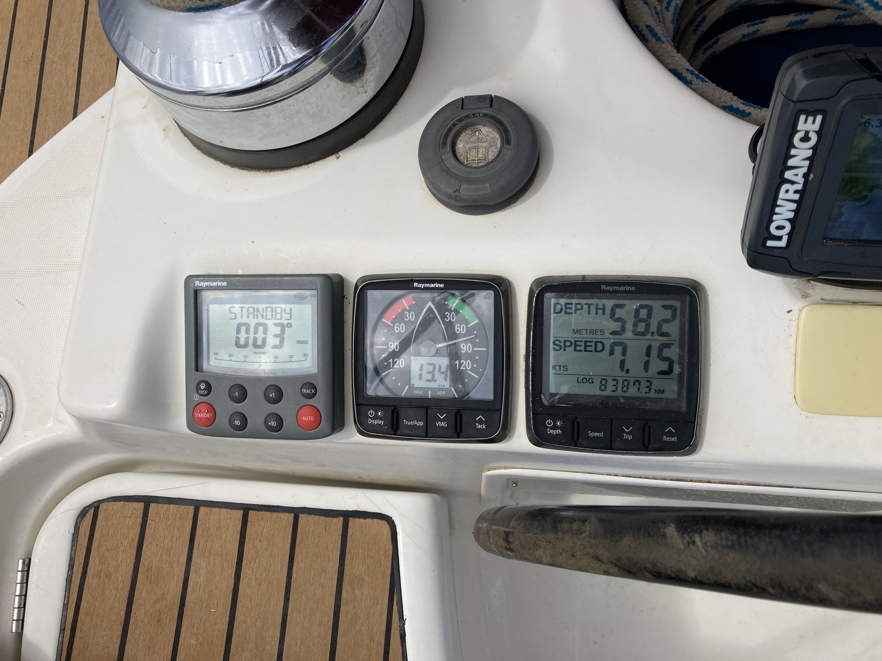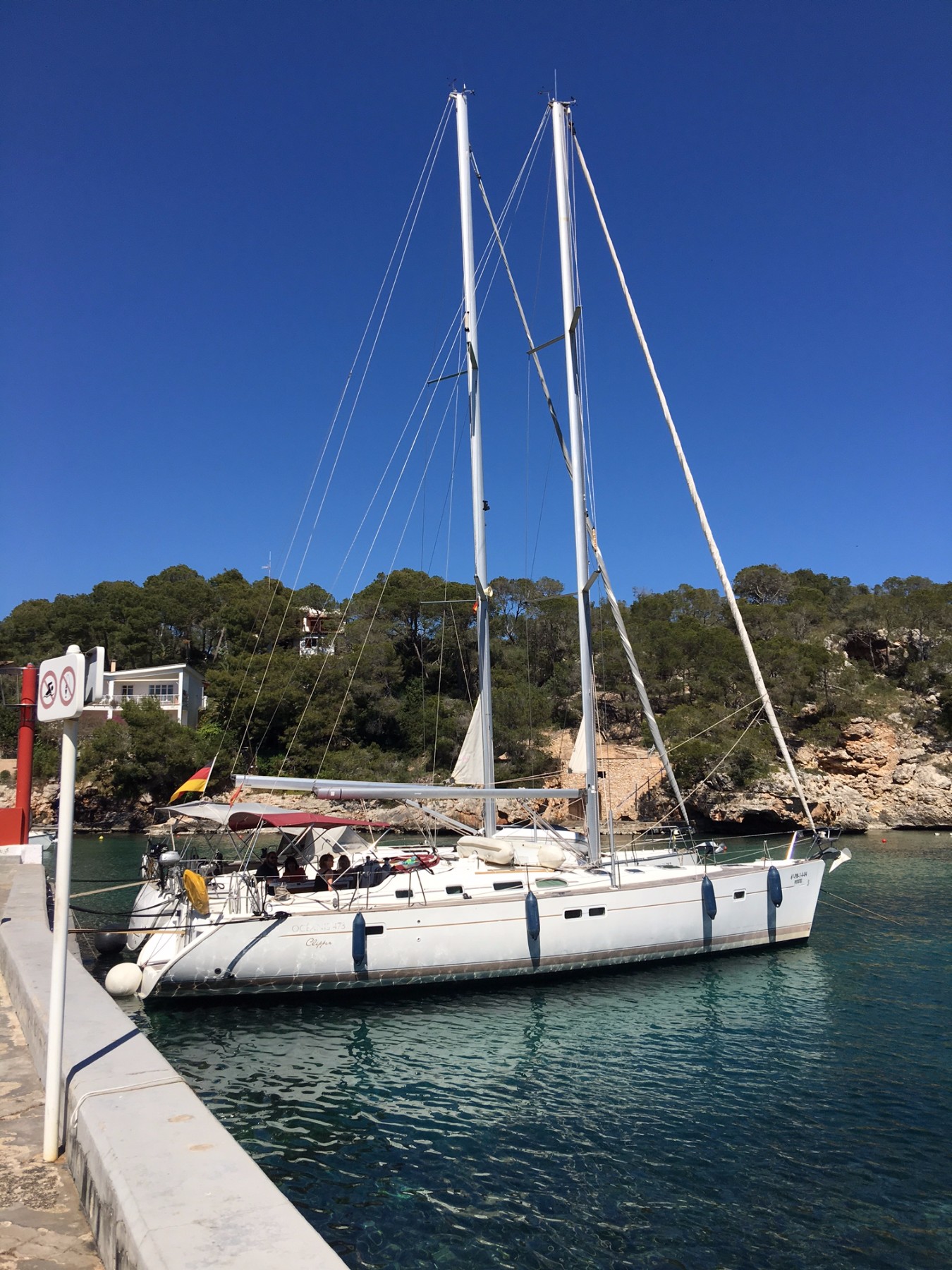 | Navigation | Barometer, Drehzahlmesser, Echolot, Fernglas, GPS mit Kartenplotter im Cockpit, GPS mit Kartenplotter im Salon, Hafenhandbücher, Kompass, Motorstundenzähler, Navigationsbesteck, Seekarten, Sumlog, Windmesser |