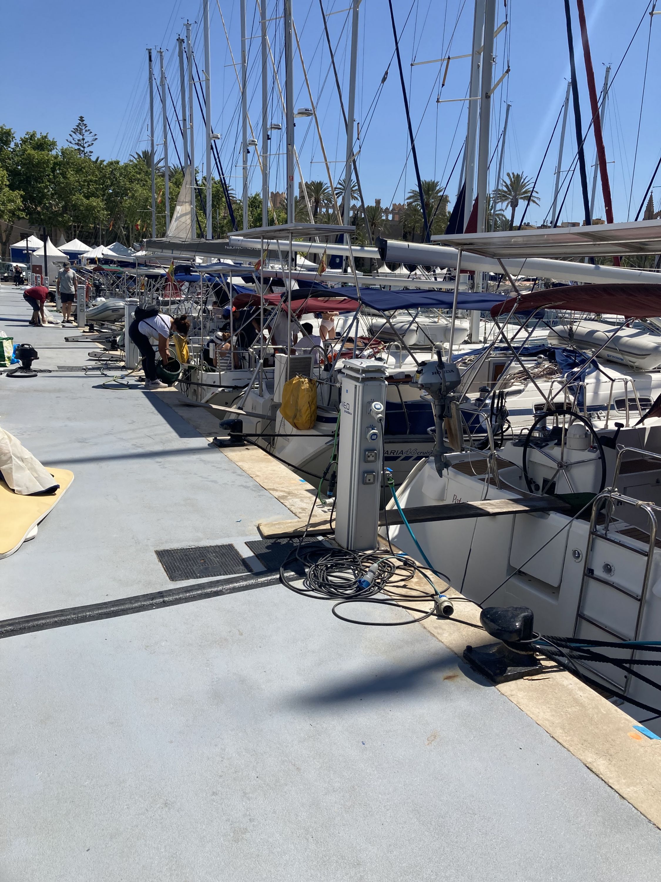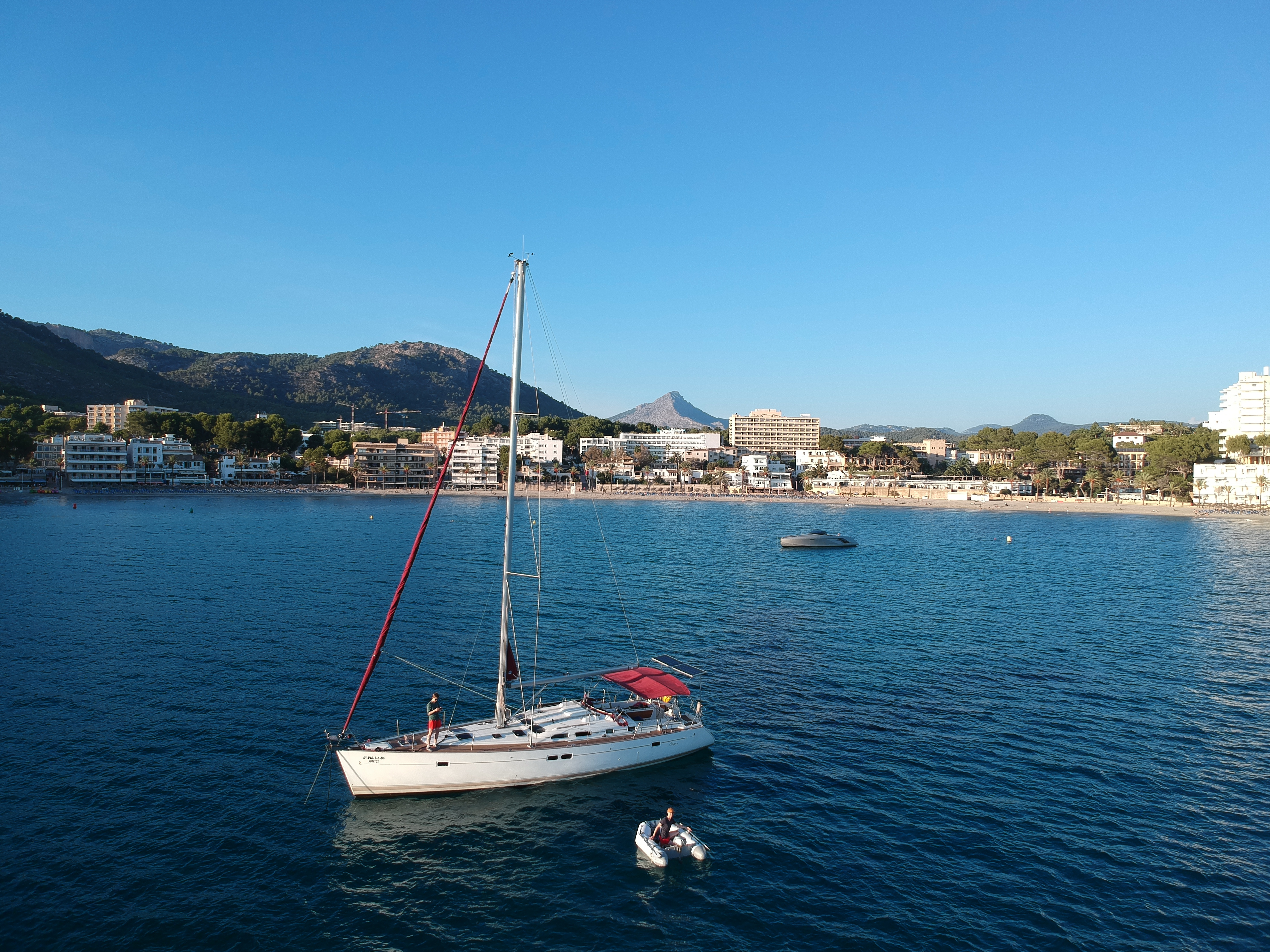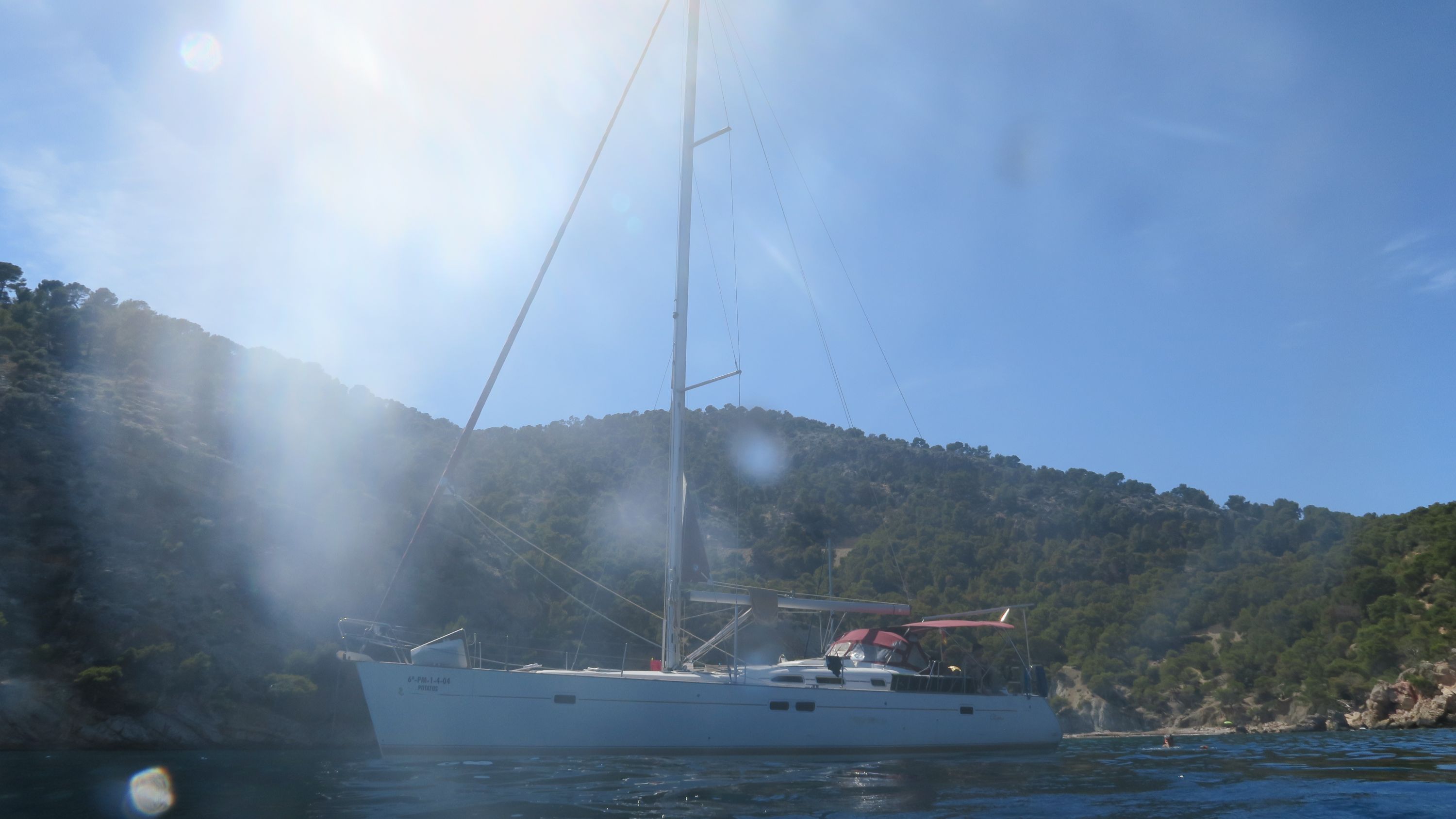 | Outside | 220 V-Landanschluss, Anker mit Kette, Aschenbecher, Badeleiter, Biminitop, Bootshaken, Cockpitdusche, Cockpitpolster, Cockpittisch, Deckbürste, Dieselkanister , elektr. Ankerwinsch, Fallwinschen, Fender, Festmacherleinen, Kunststoff-Eimer (Pütz), Solaranlage, Sprayhood, Teakdeck, Wasserschlauch, Winschen |