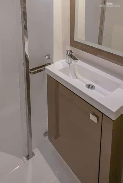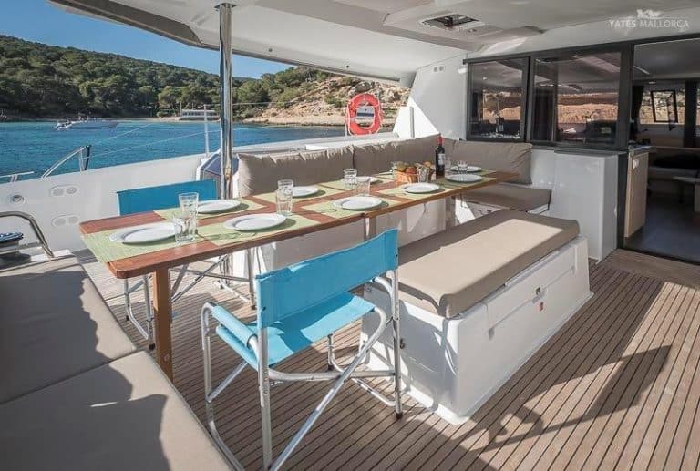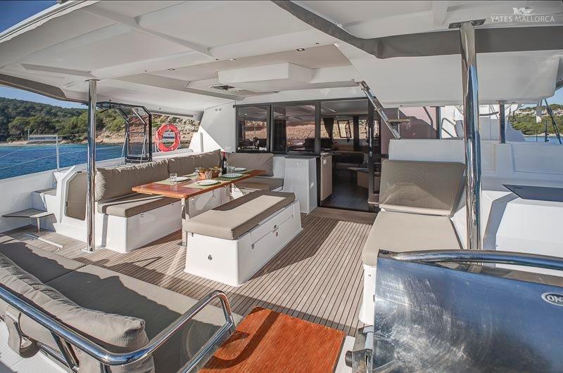 | Outside | Badeplattform, Biminitop, Cockpitkühlschrank, Cockpitpolster, Cockpittisch, elektr. Ankerwinsch, Fender, Festmacherleinen, Gangway, Grill, Heckdusche, Lifeline System, Solaranlage, Teak im Cockpit |
