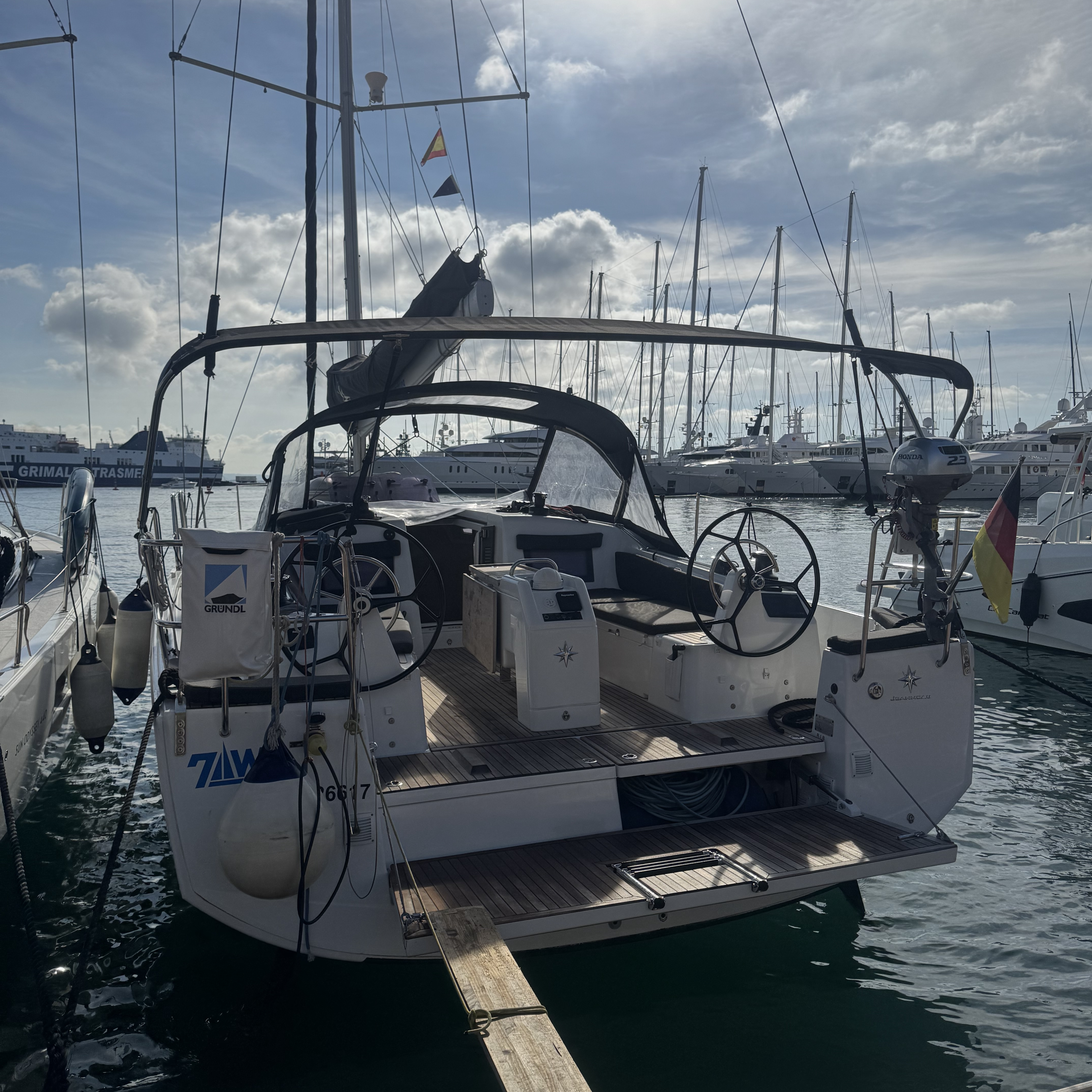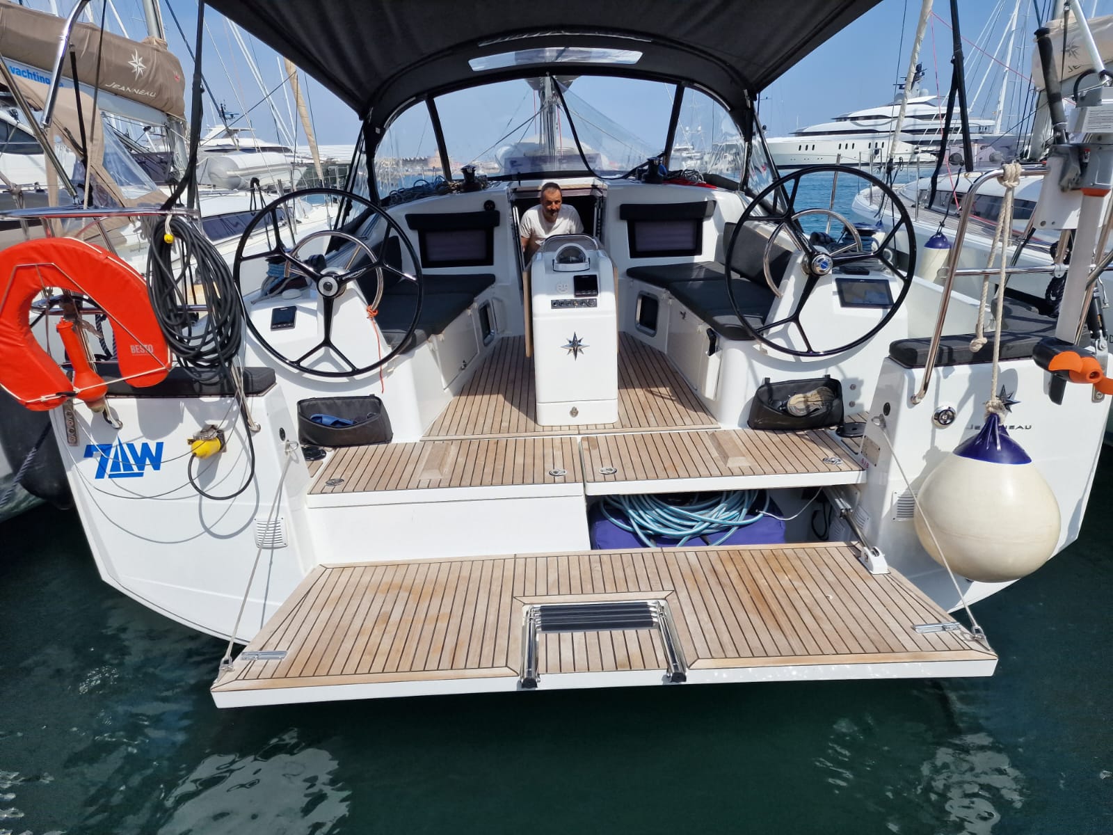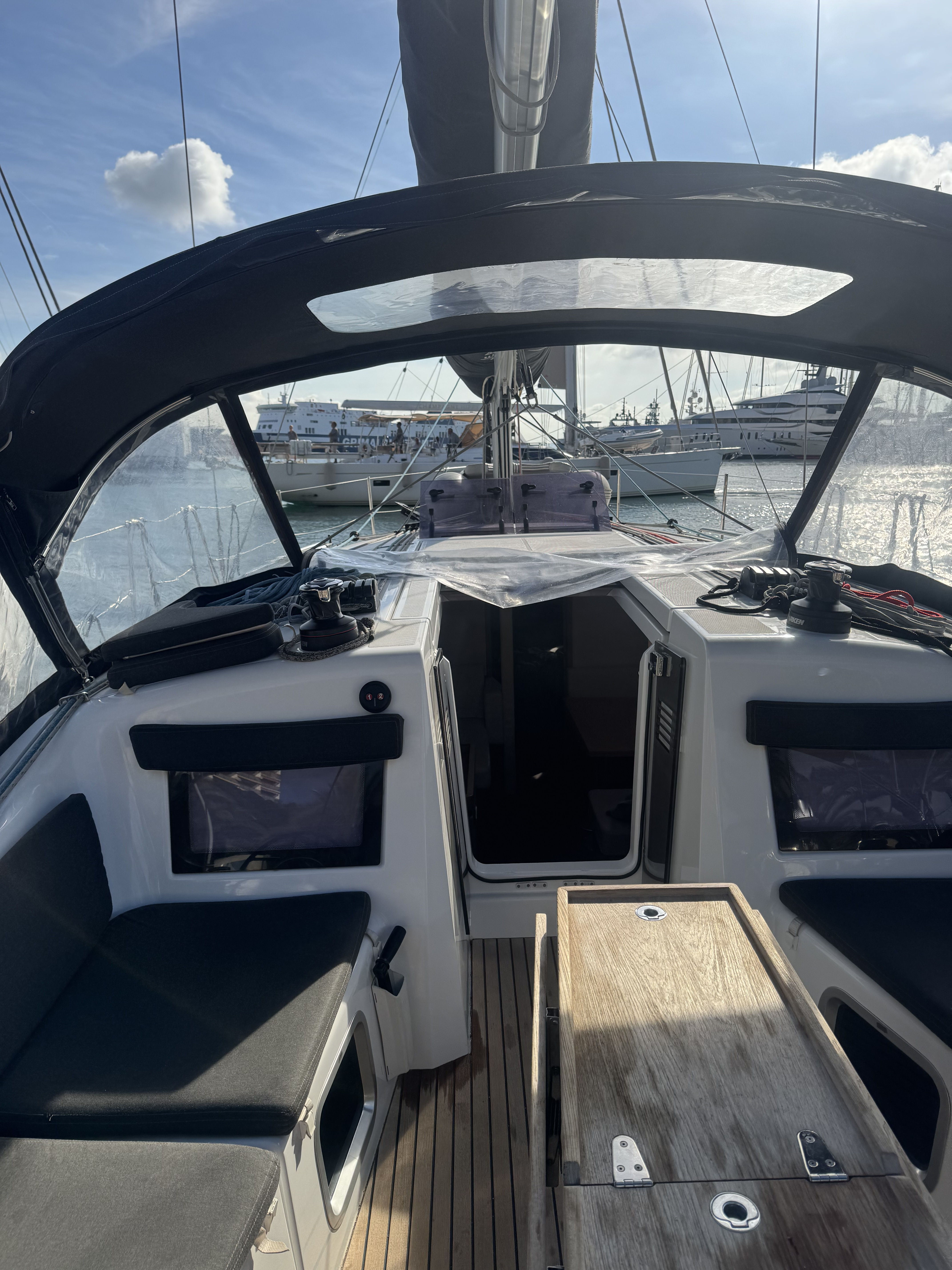 | Outside | Badeplattform, Biminitop, elektr. Ankerwinsch, elektr. Winsch, Sprayhood, Windex |