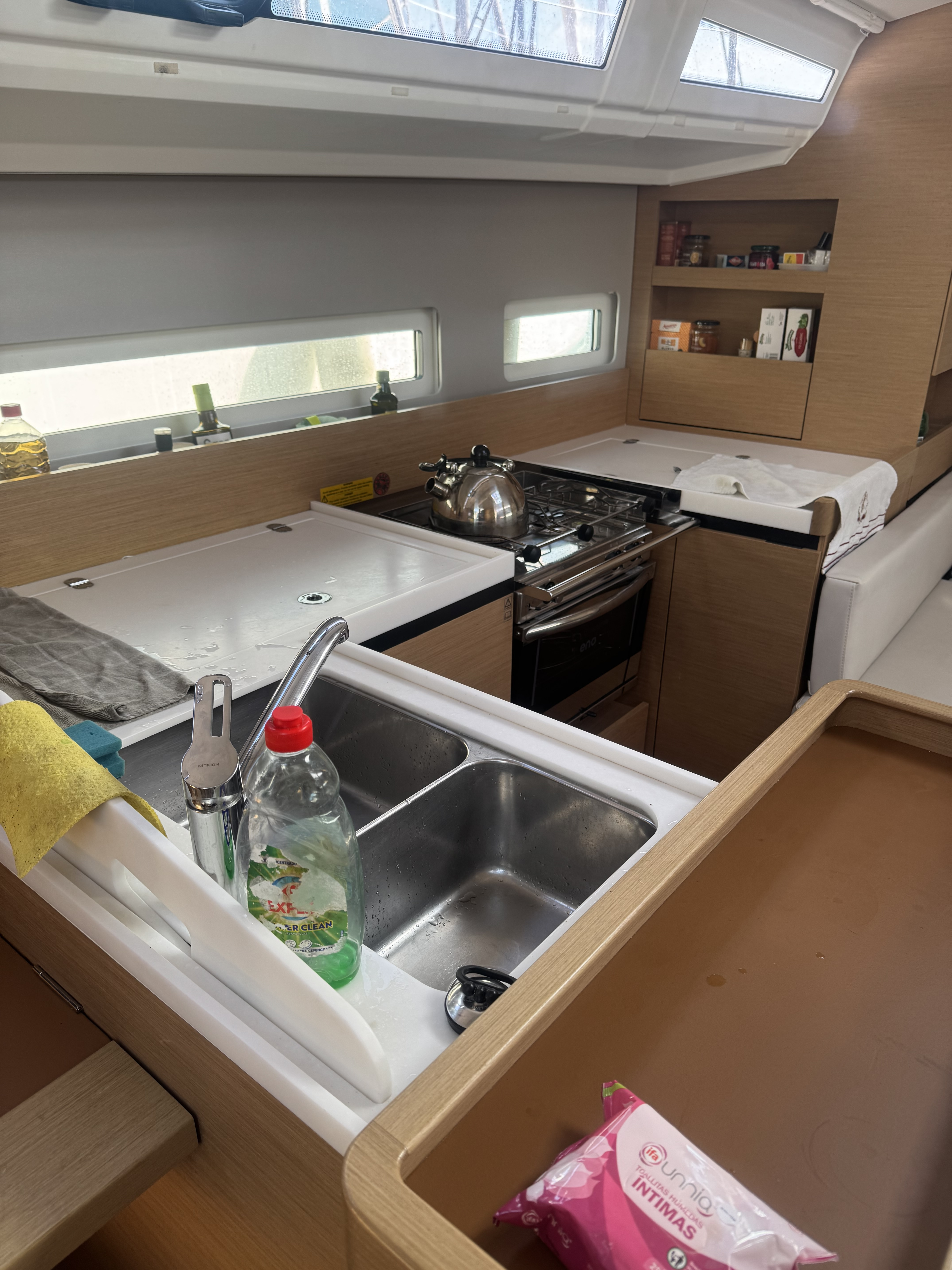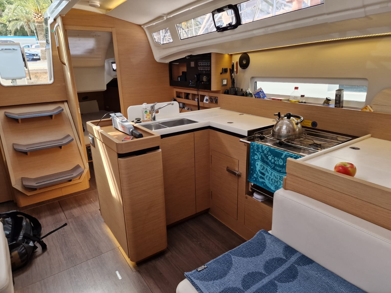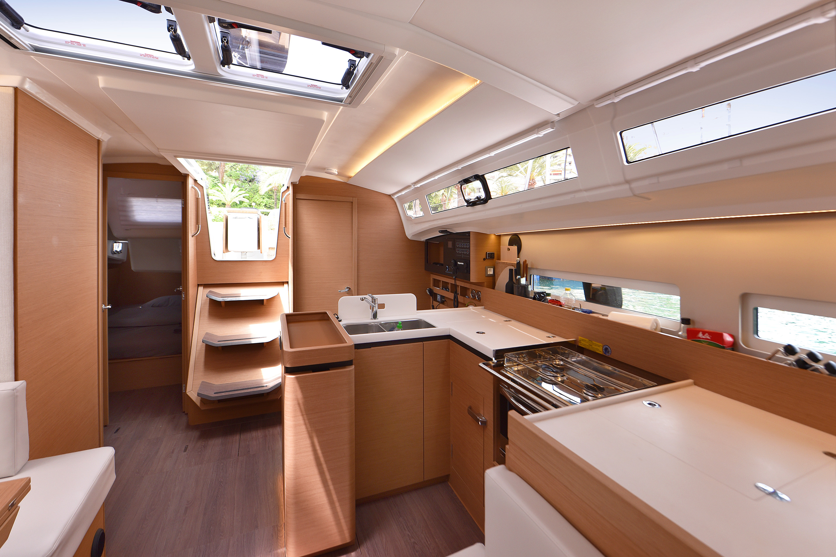 | Outside | Badeplattform, Biminitop, elektr. Ankerwinsch, elektr. Winsch, Sprayhood, Windex |