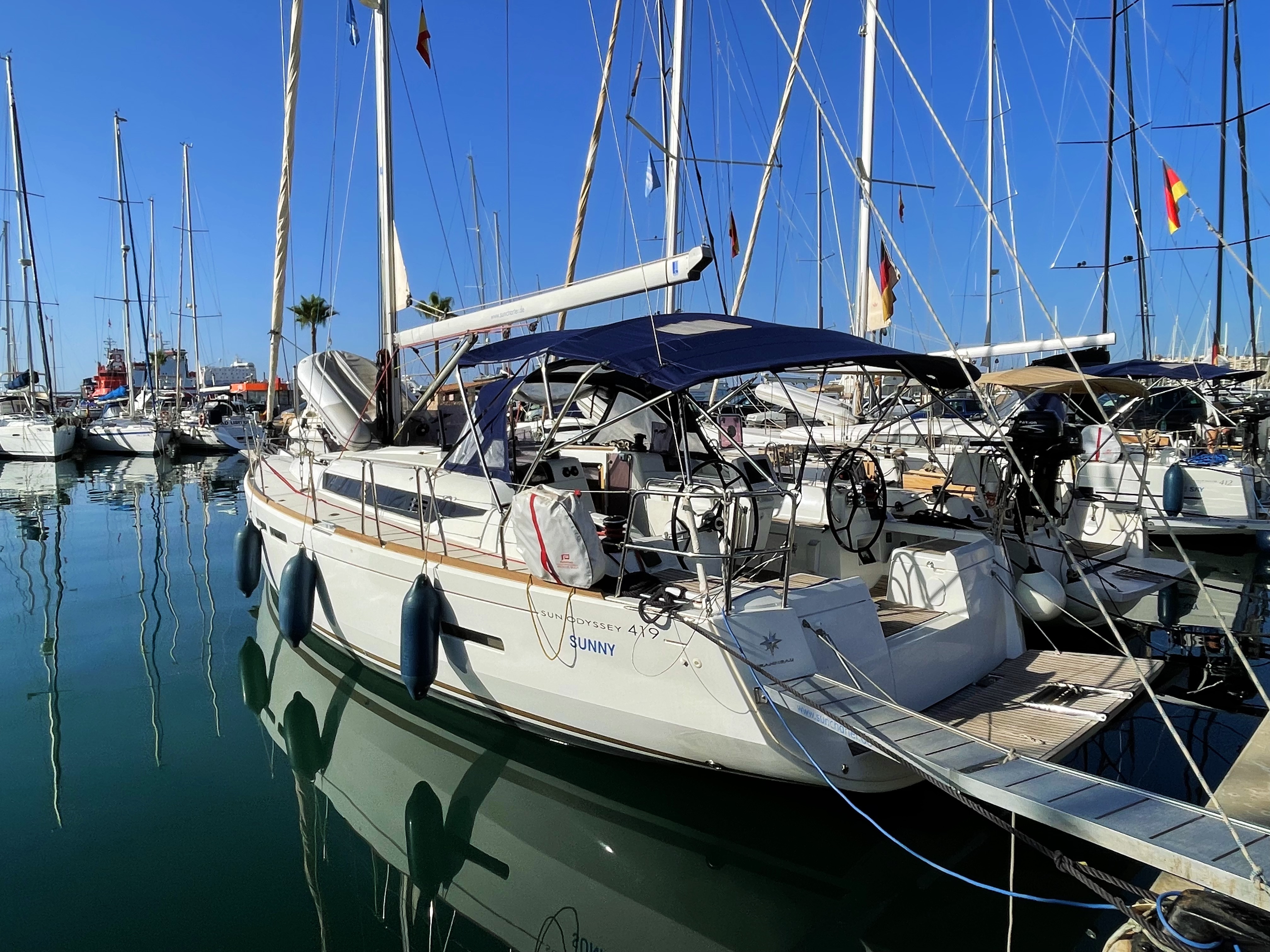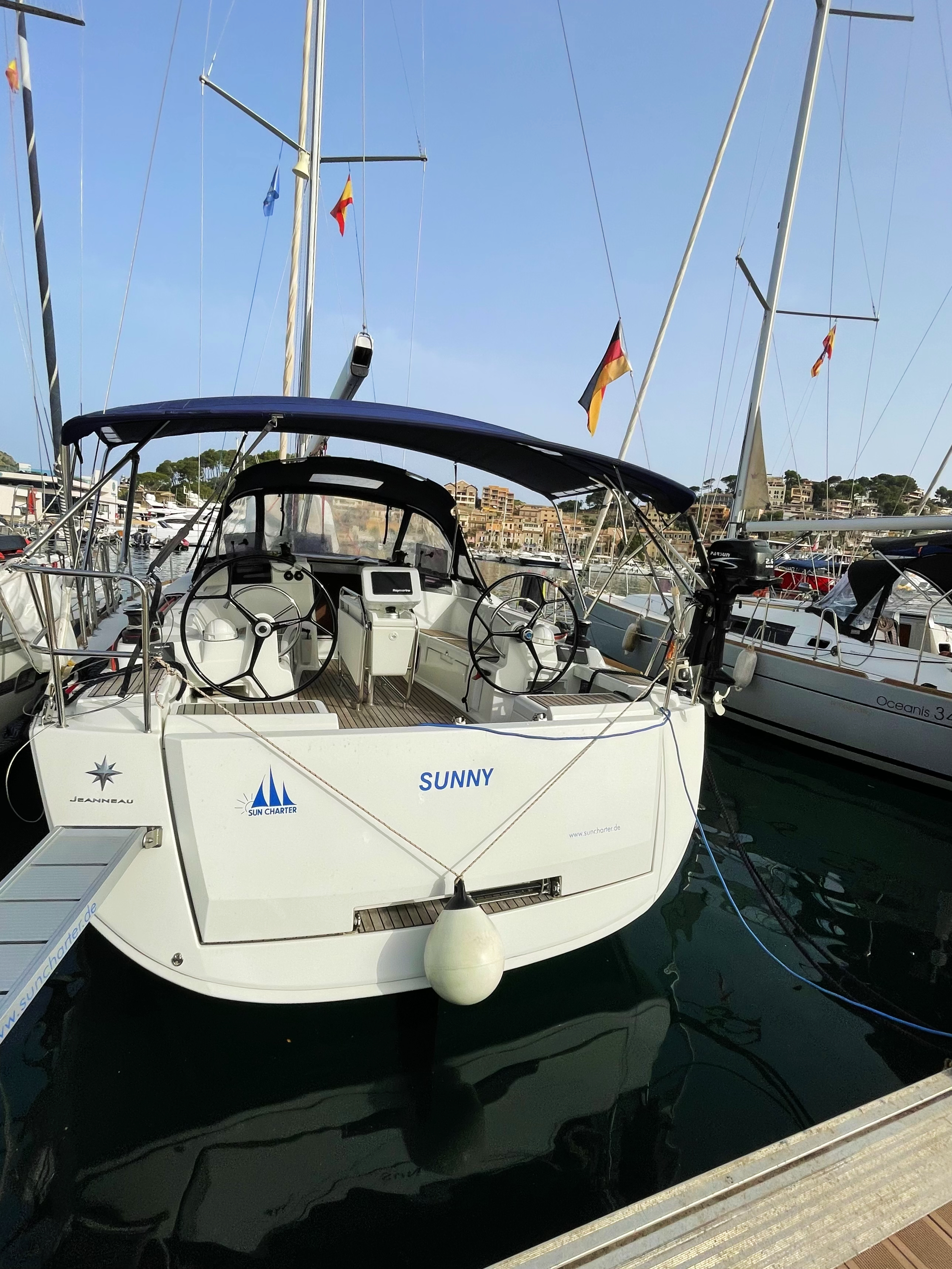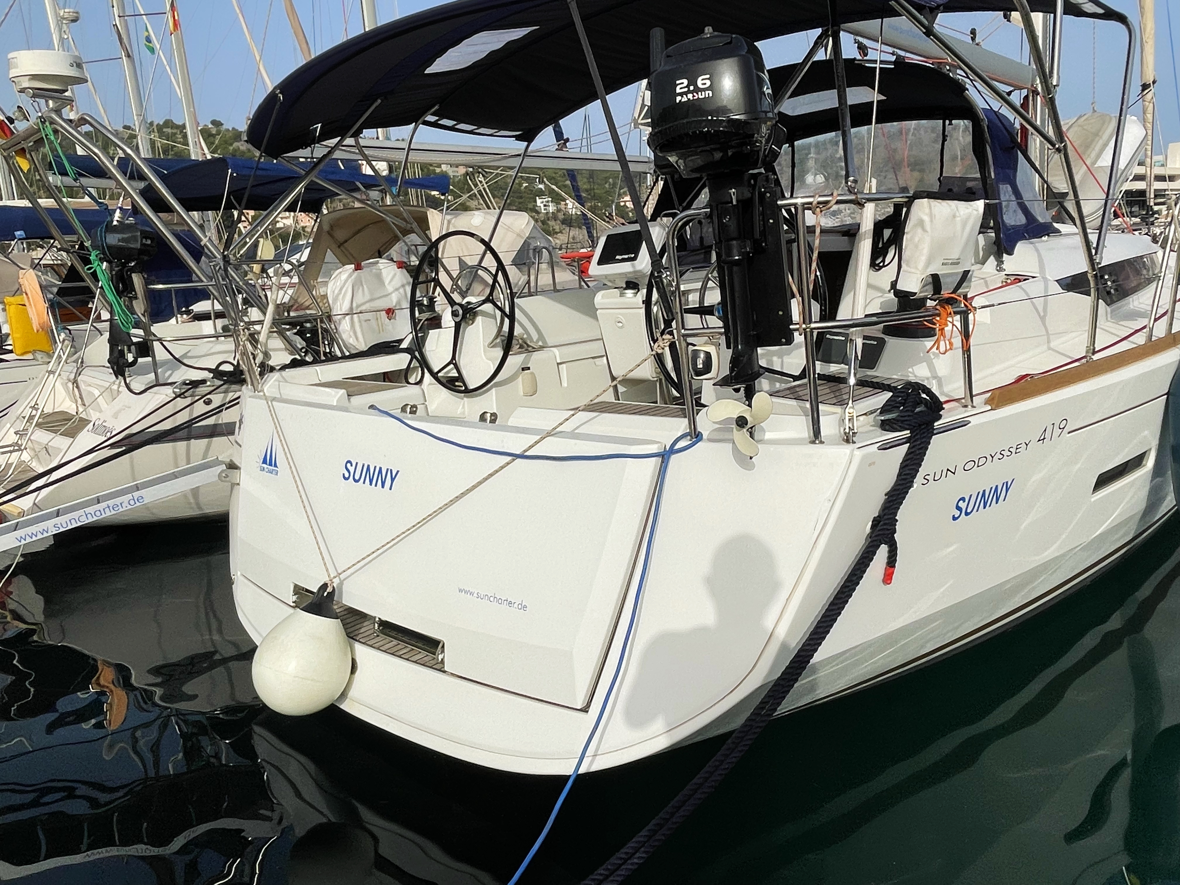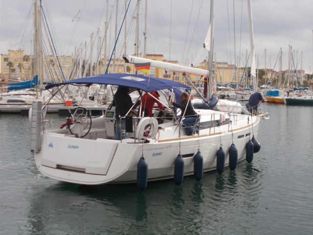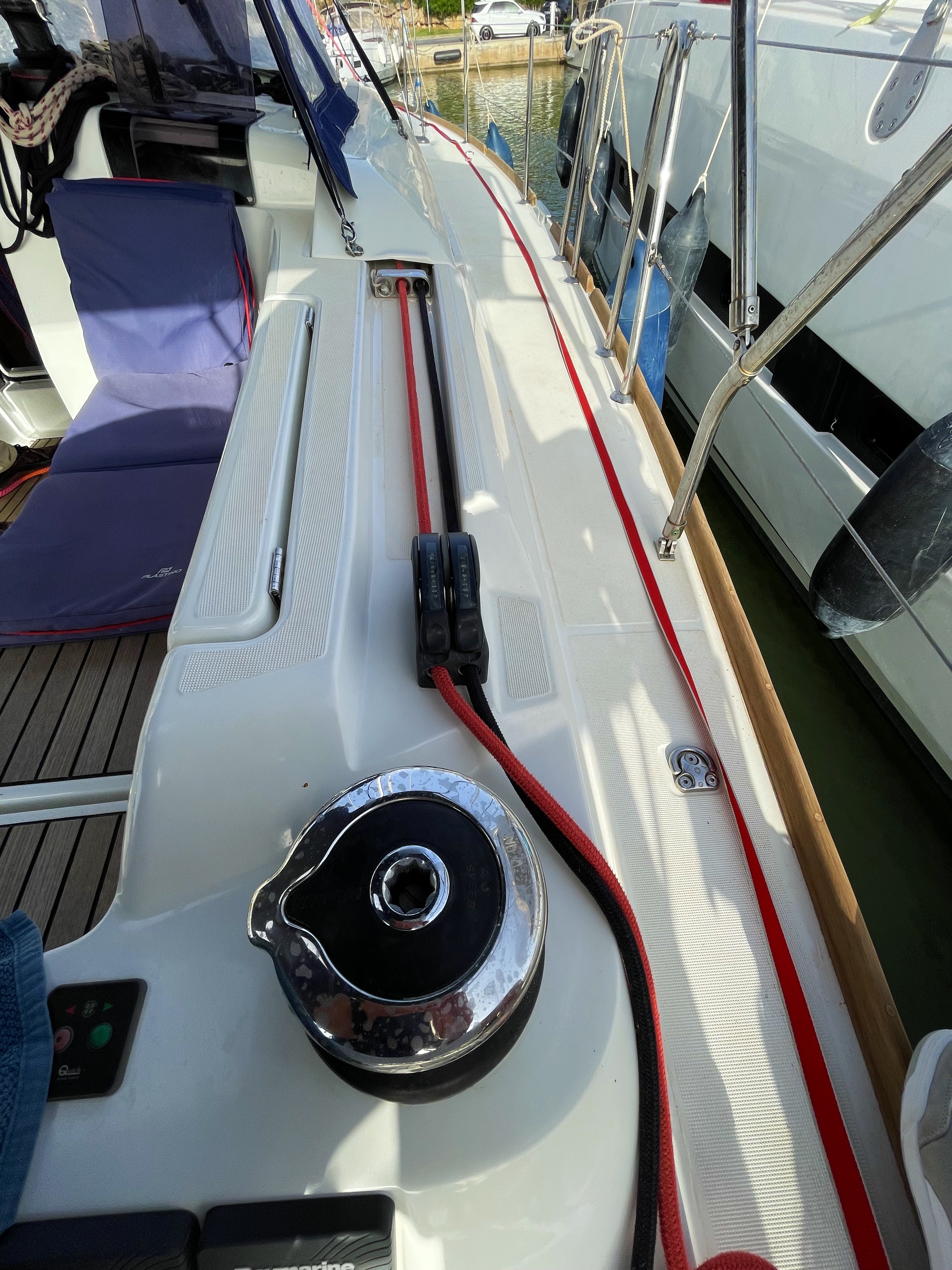 | Outside | 220 V-Landanschluss, Anker mit Kette, Ankerwinsch, Biminitop, Bootshaken, Cockpitdusche, Cockpitlautsprecher, Cockpitpolster, Cockpittisch, Dieselkanister , elektr. Ankerwinsch, Fender, Festmacherleinen, Gangway, Kugelfender, Kunststoff-Eimer (Pütz), Solaranlage, Sprayhood, Wantenschneider, Wasserkanister , Wasserschlauch, Windex |