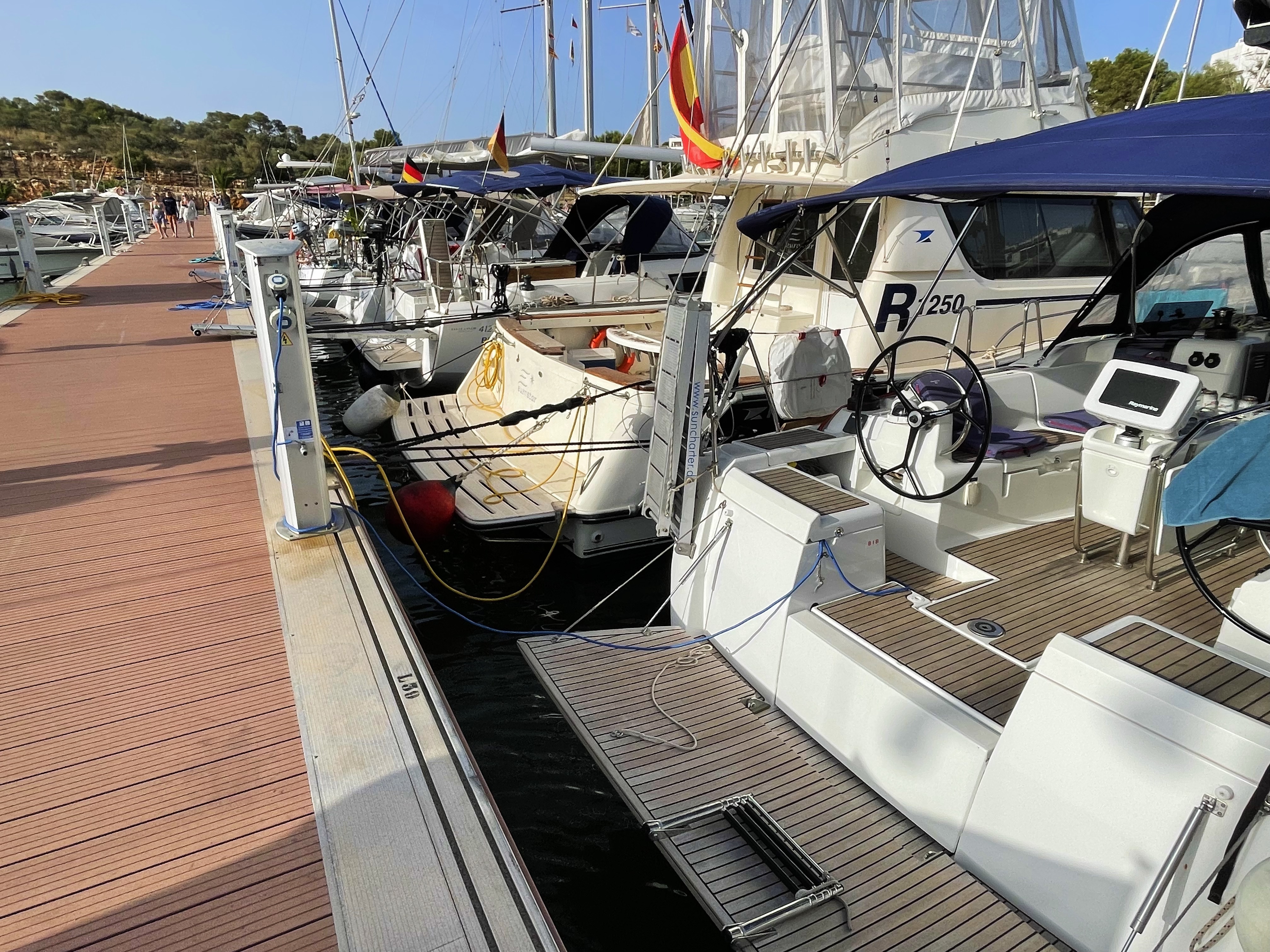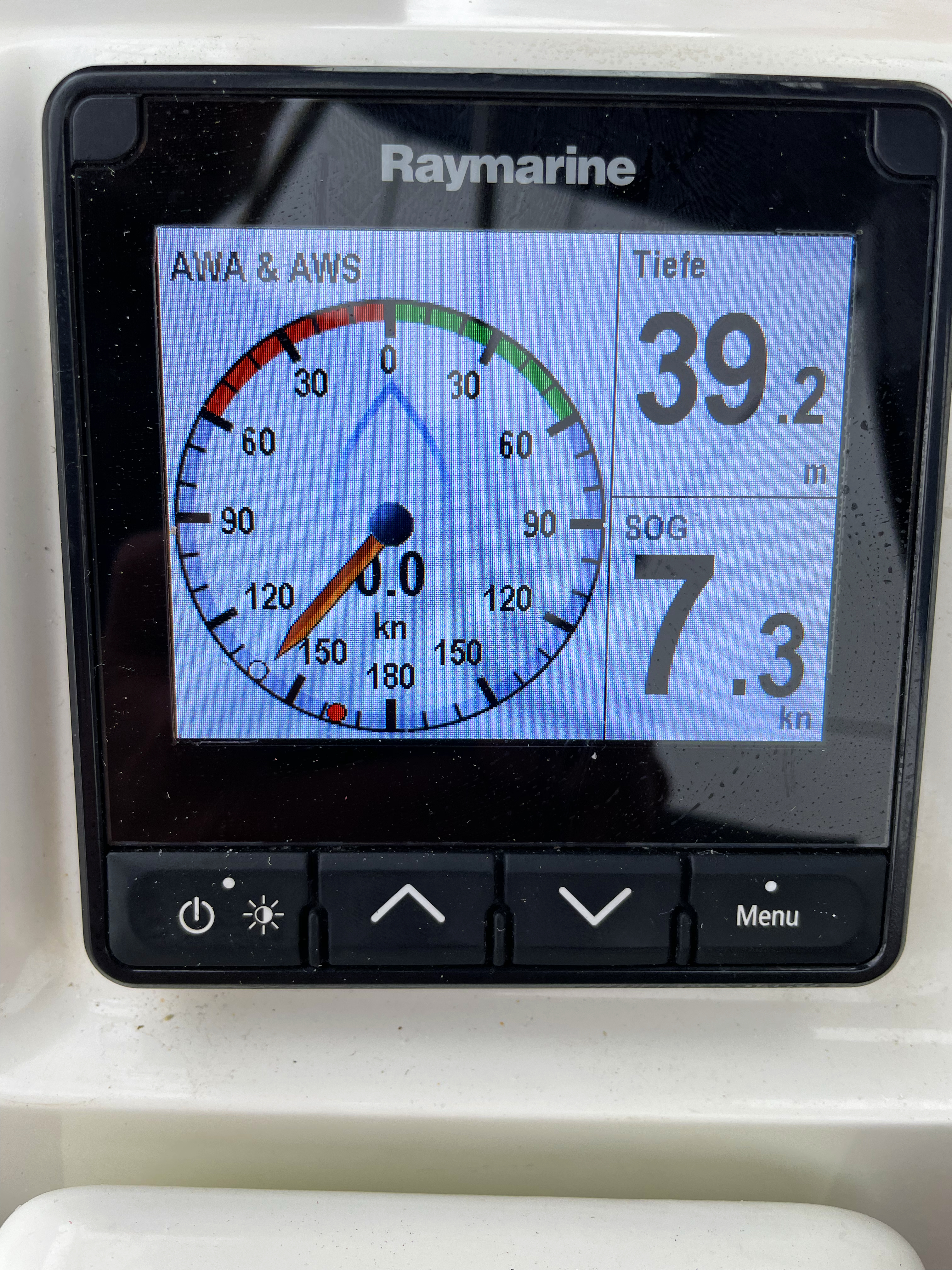 | Navigation | Barometer, Echolot, Fernglas, GPS mit Kartenplotter im Cockpit, Hafenhandbücher, Handpeilkompass, Navigationsbesteck, Seekarten, Tridata (Log, Echolot, Windm.) |