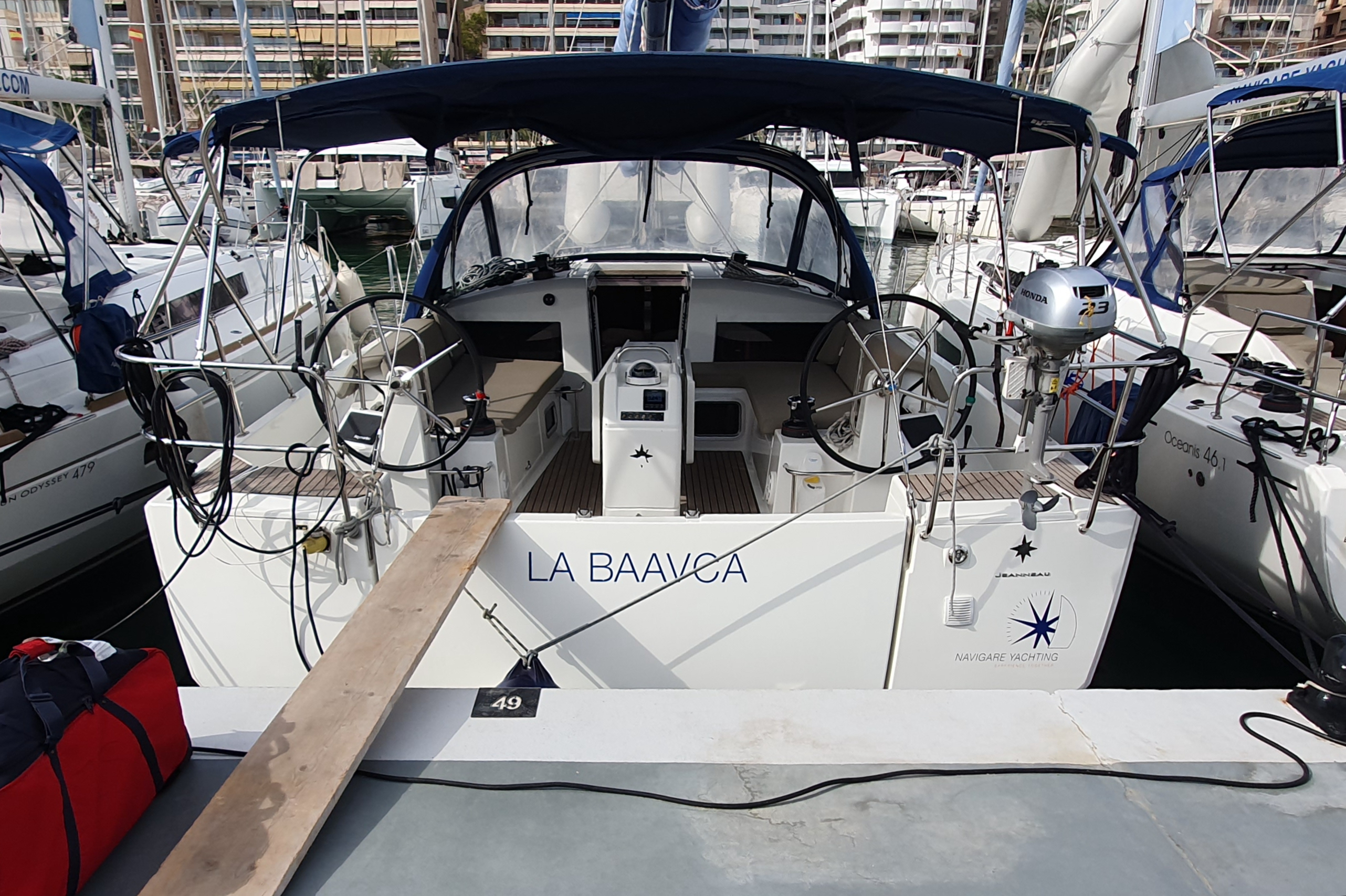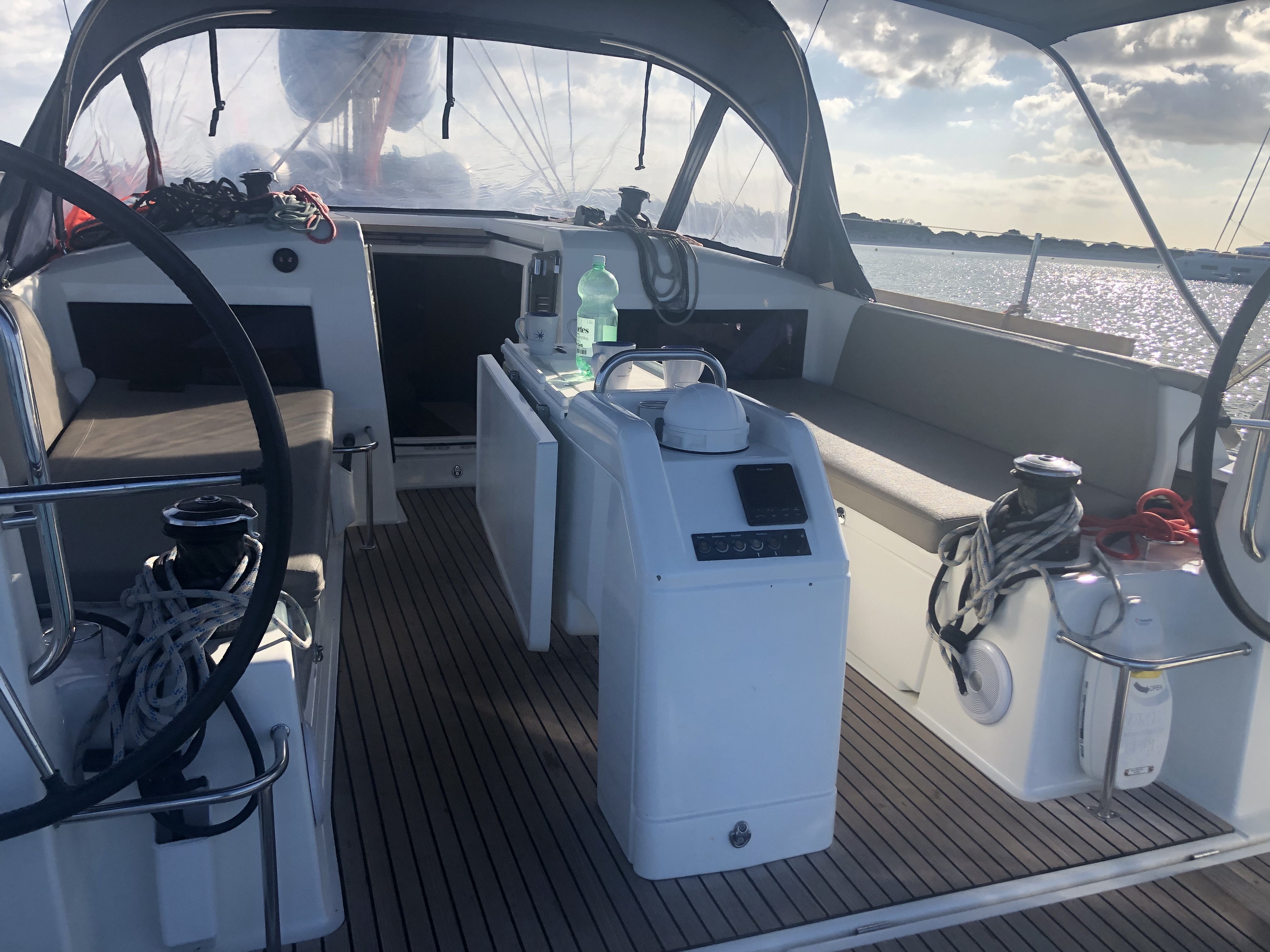 | Outside | 220 V-Landanschluss, Anker mit Kette, Badeleiter, Badeplattform, Biminitop, Bootshaken, Cockpitdusche, Cockpitlautsprecher, Cockpitpolster, Cockpittisch, elektr. Ankerwinsch, Fender, Festmacherleinen, Gangway, Kugelfender, Sprayhood, Teak im Cockpit, Wantenschneider, Windex, Winschen |