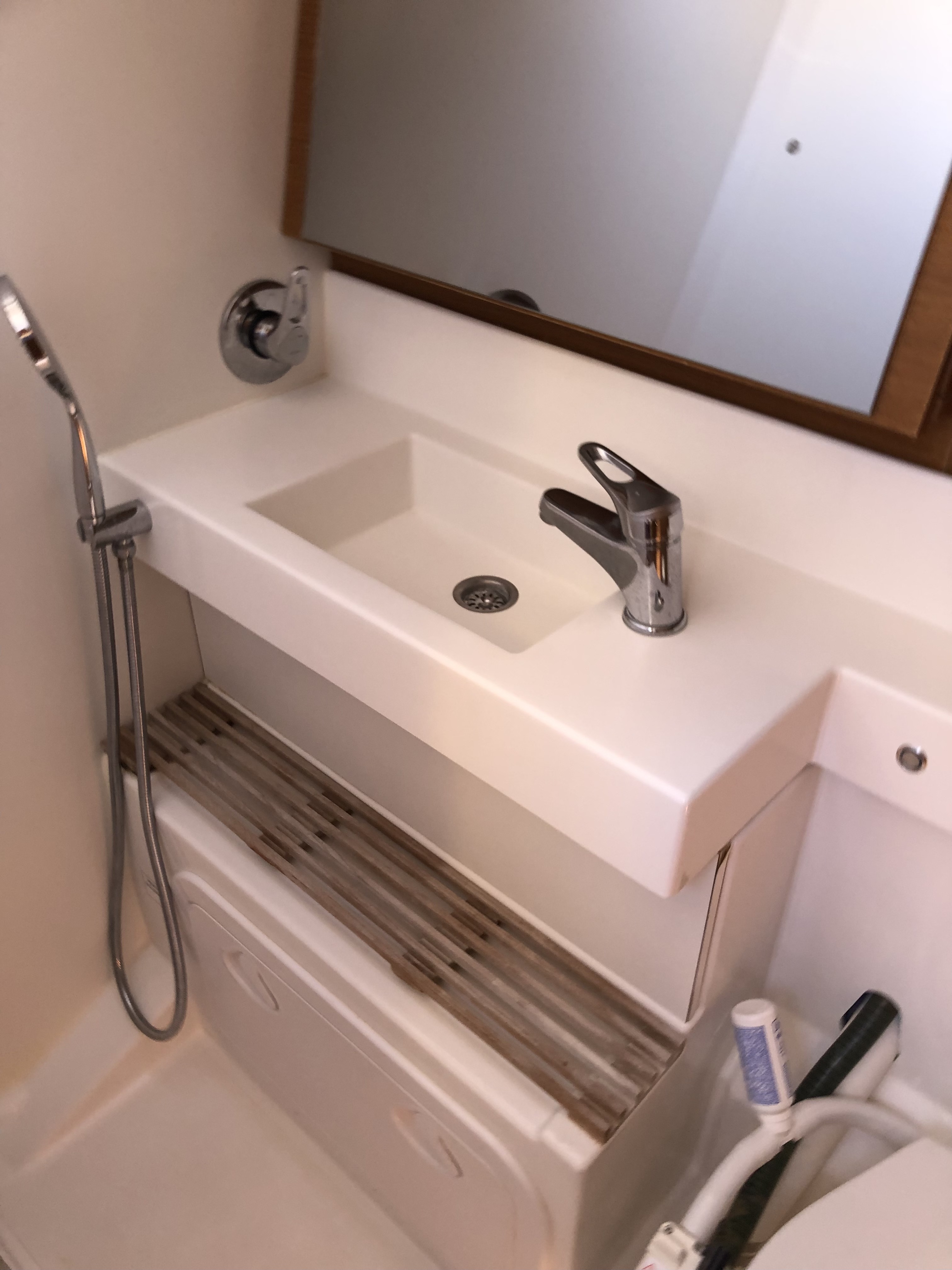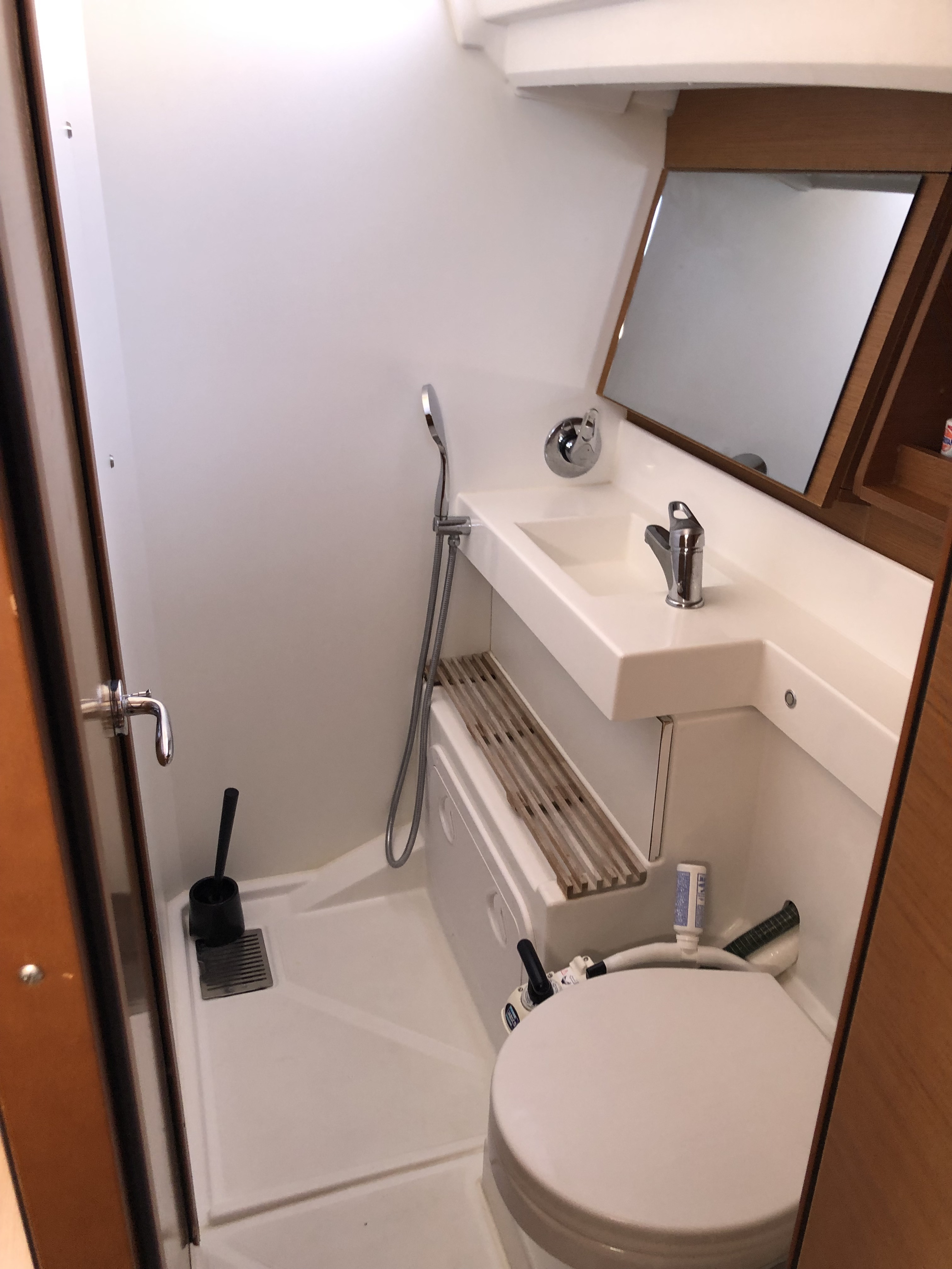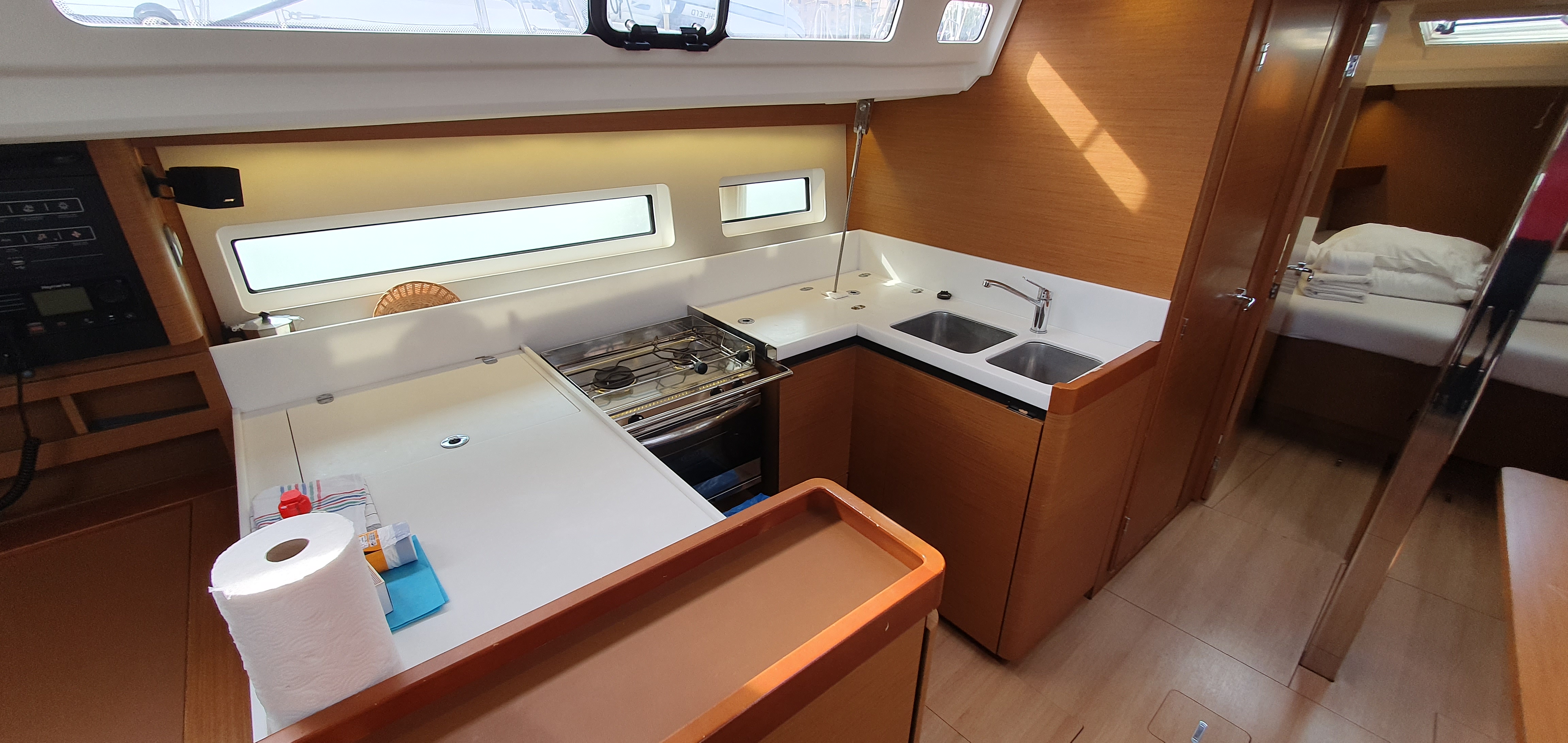 | Inside | 12V/220V-Steckdosen, 2-flammiger Gasherd, Fäkalientank, FUSION Sound System, Heizung, Kühlschrank, Ladegerät, Lautsprecher im Salon, Pantryausstattung, Radio mit USB und Bluetooth, Ventilatoren in Kabinen, Wasserkocher |