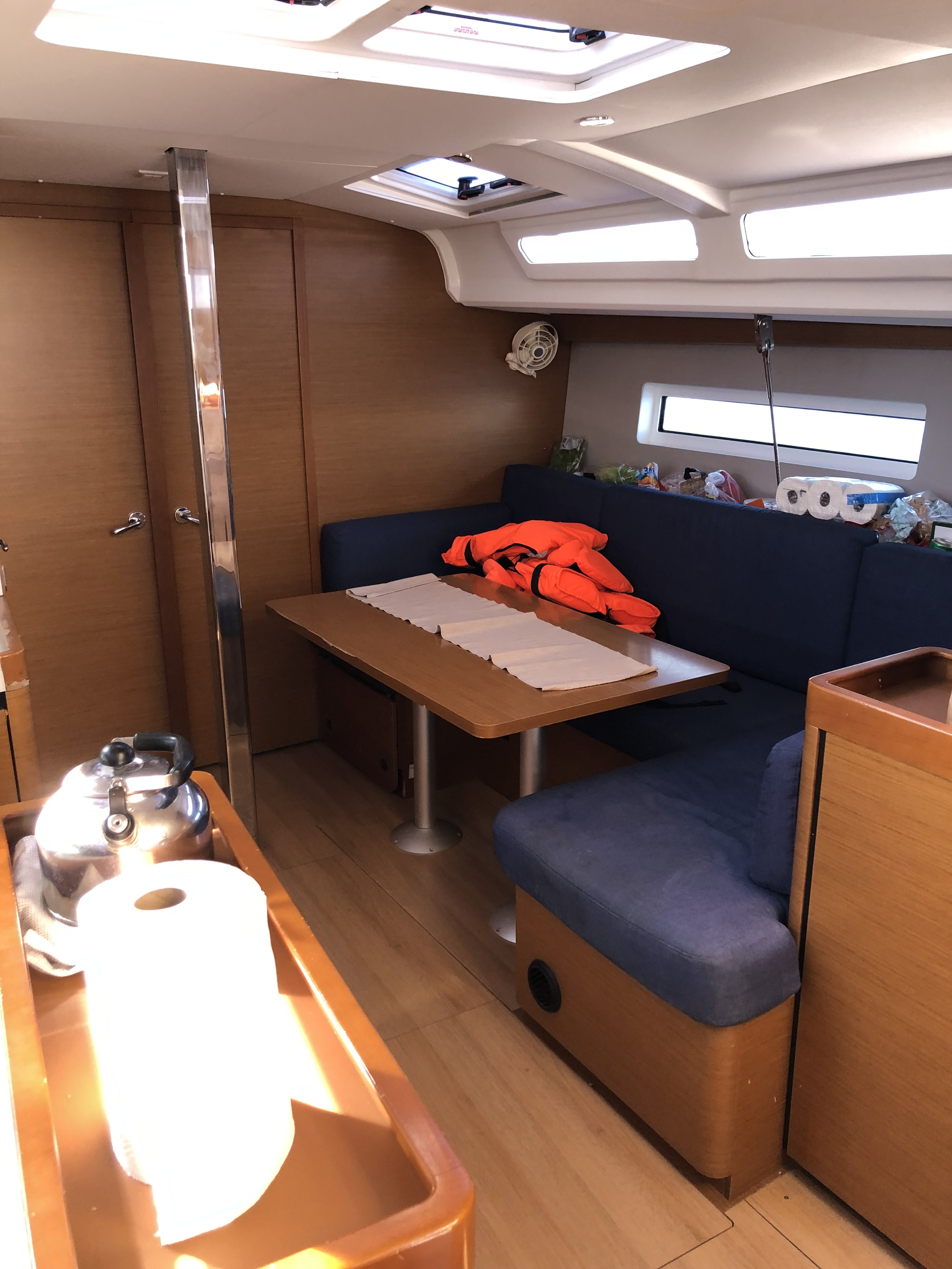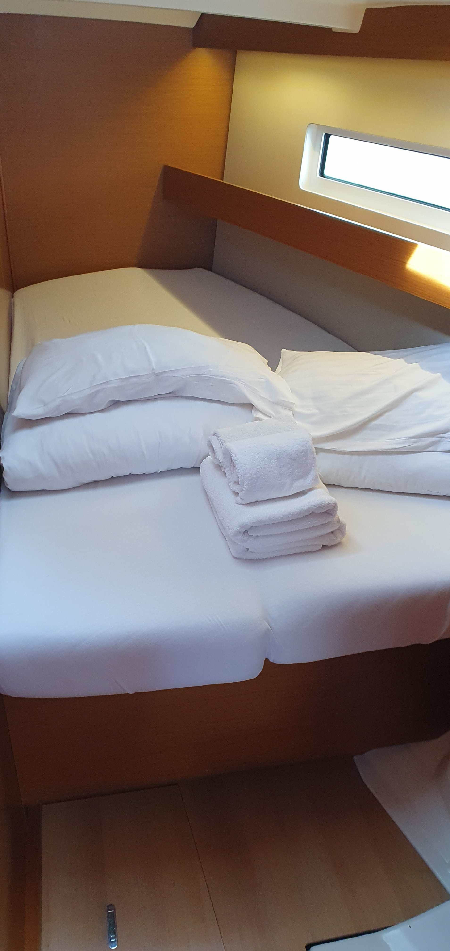 Die Yacht war technisch in einem einwandfreien Zustand, lediglich die Segelgarderobe hatte ihre beste Zeit schon hinter sich, d.h. das korrekte Segelprofil hat sich nicht mehr einstellen lassen, was das Segelerlebnis mit dieser Yacht ein wenig geschmälert hat und das Potential des Schiffes unter Segel nicht voll nutzen ließ. Trotz dieses Kritikpunktes war es ein schöner Segeltörn und der Vercharterer ist sehr empfehlenswert.