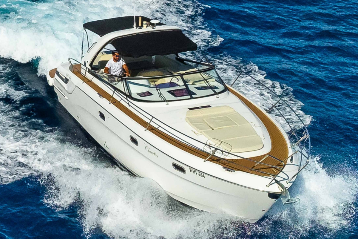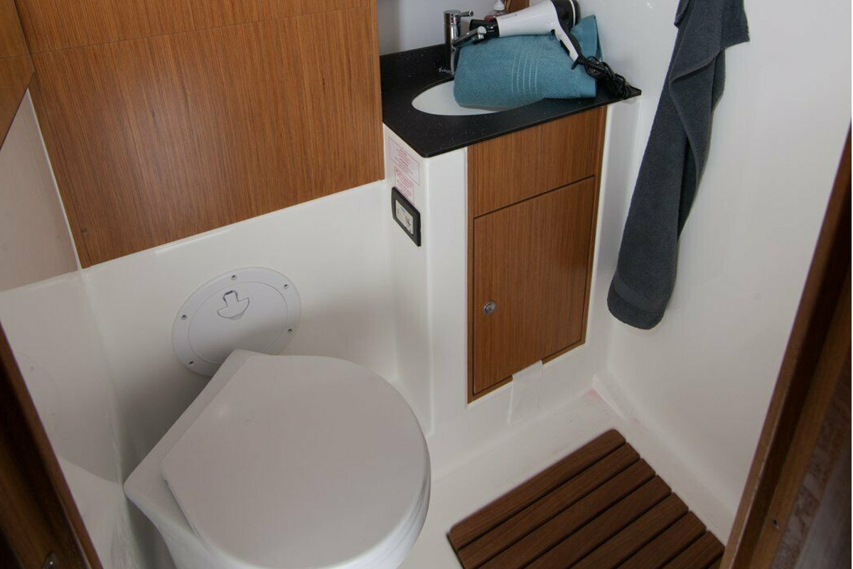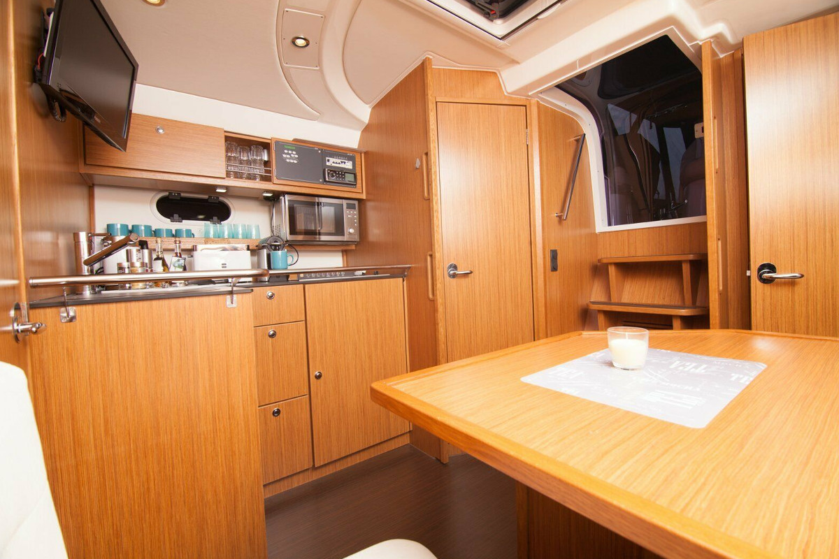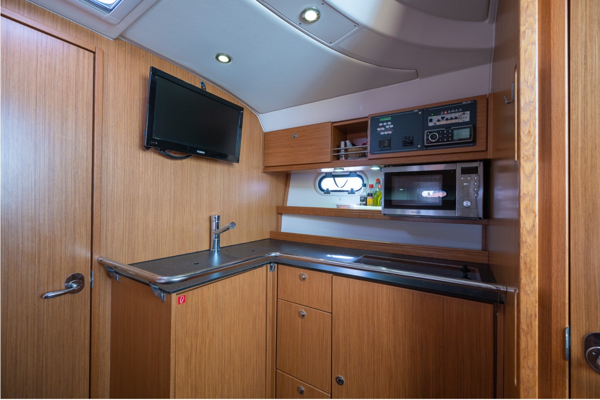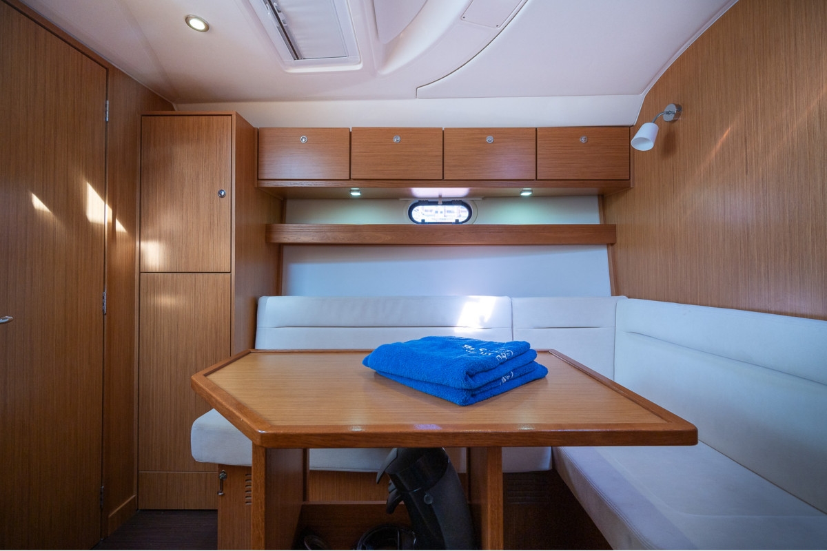 | Outside | 220 V-Landanschluss, Badeleiter, Badeplattform, Biminitop, Cockpitdusche, Cockpitlautsprecher, Deckpolster, elektr. Ankerwinsch, Teakdeck |