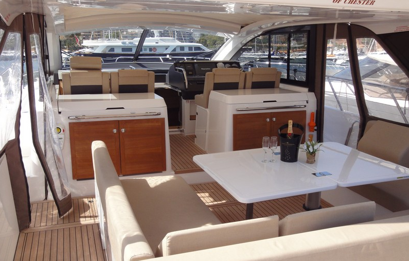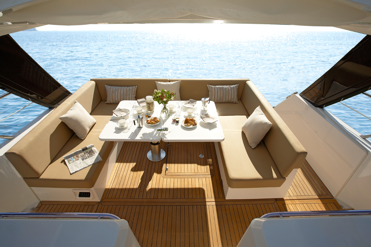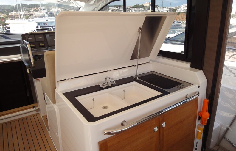 | Outside | Badeplattform (hydr.), Cockpitkühlschrank, Grill, hydraul. Gangway |