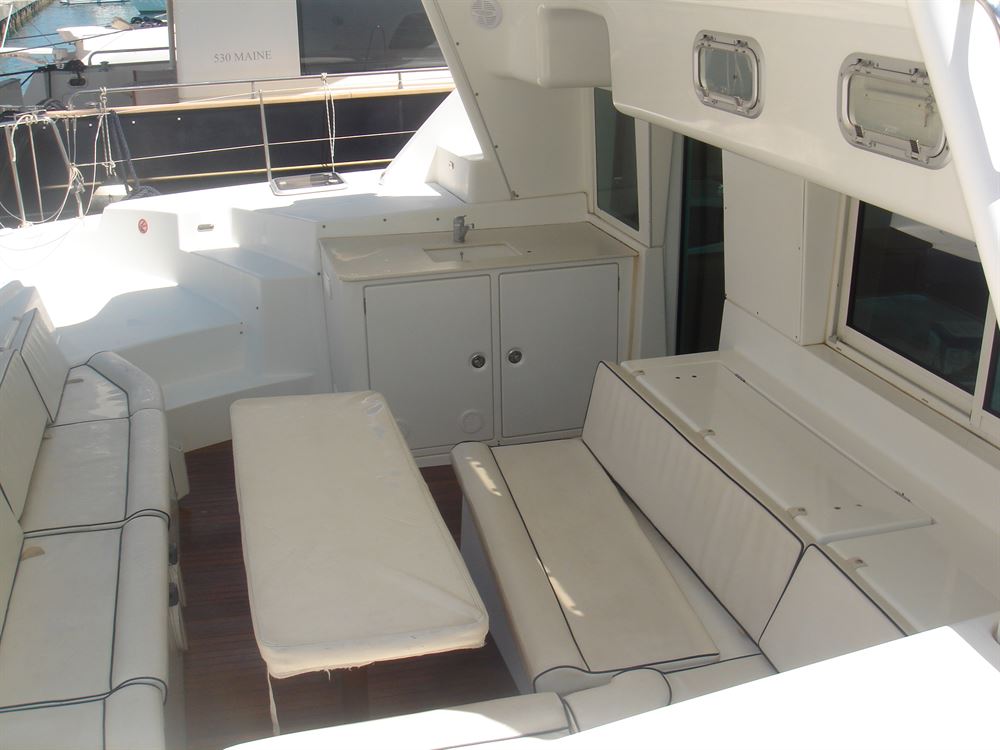 220 V-Landanschluss, Badeleiter, Biminitop, Cockpitdusche warm/kalt, Cockpitlautsprecher, Cockpittisch, elektr. Ankerwinsch, elektr. Winsch, Flybridge, Gangway, Teak im Cockpit, Windex |