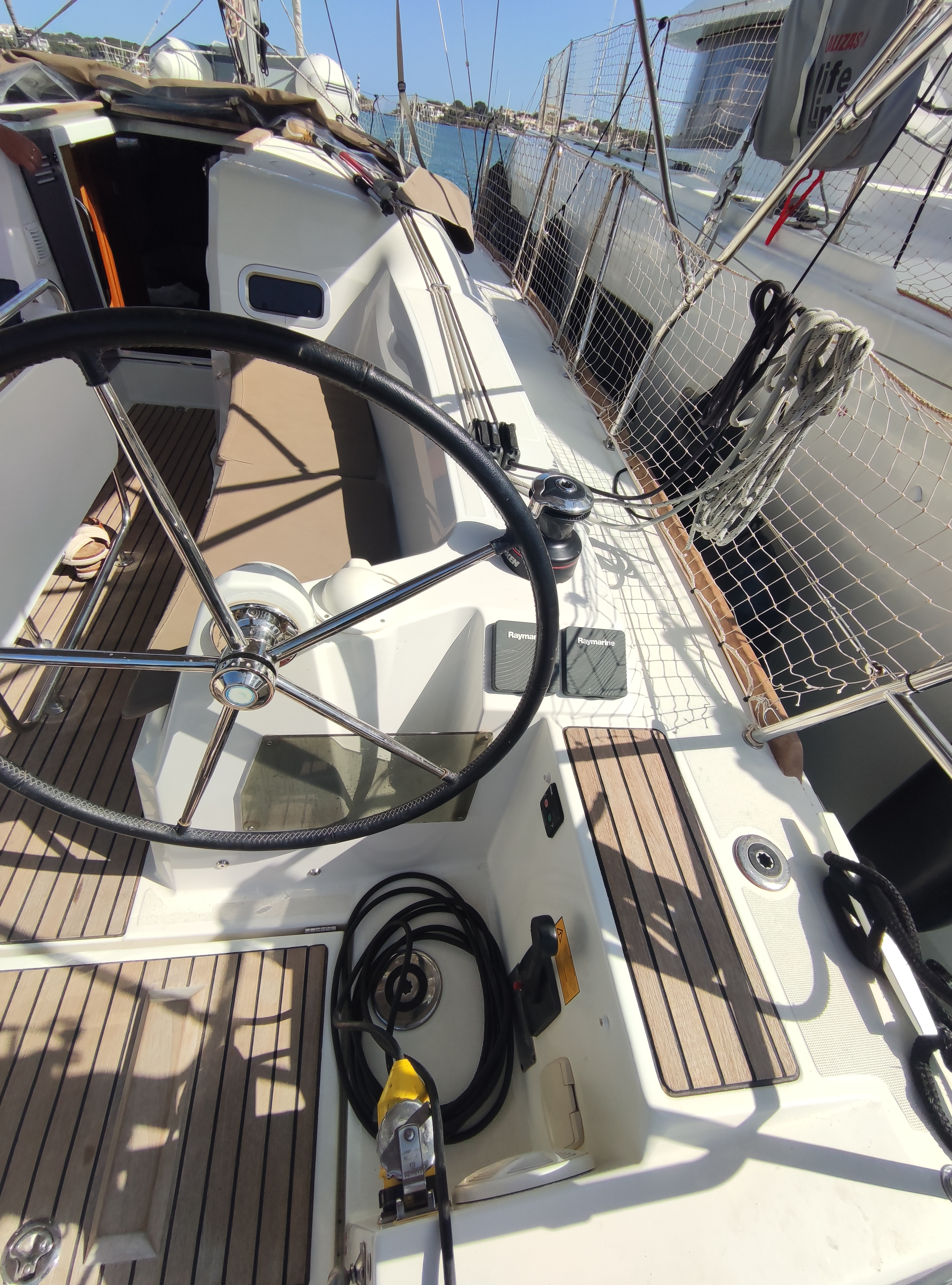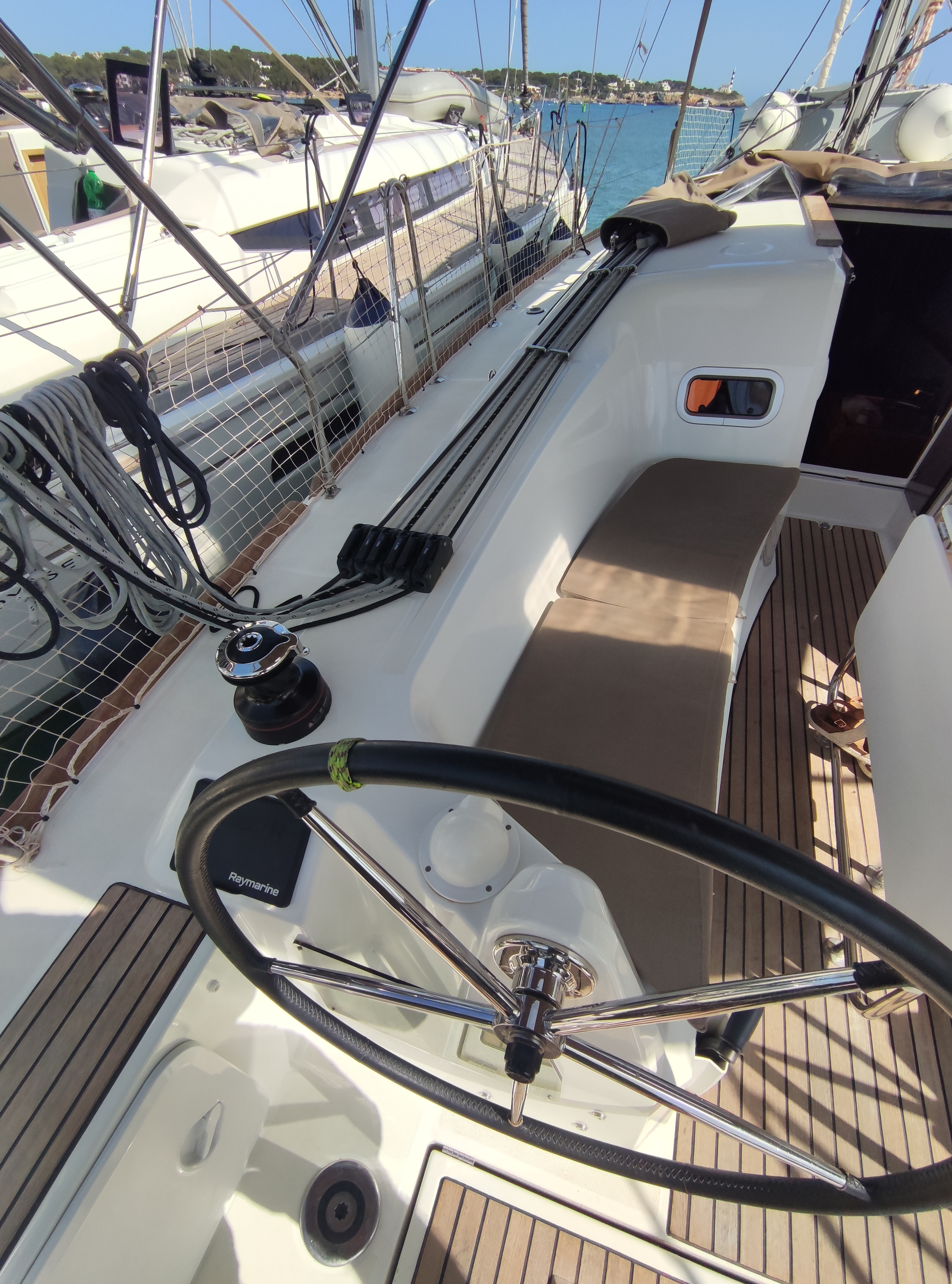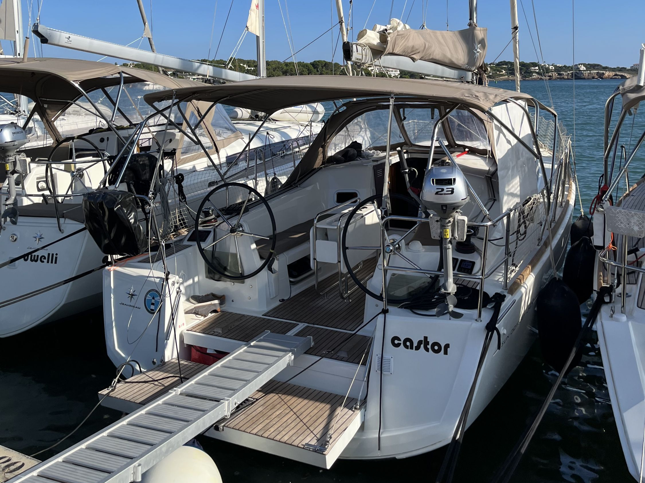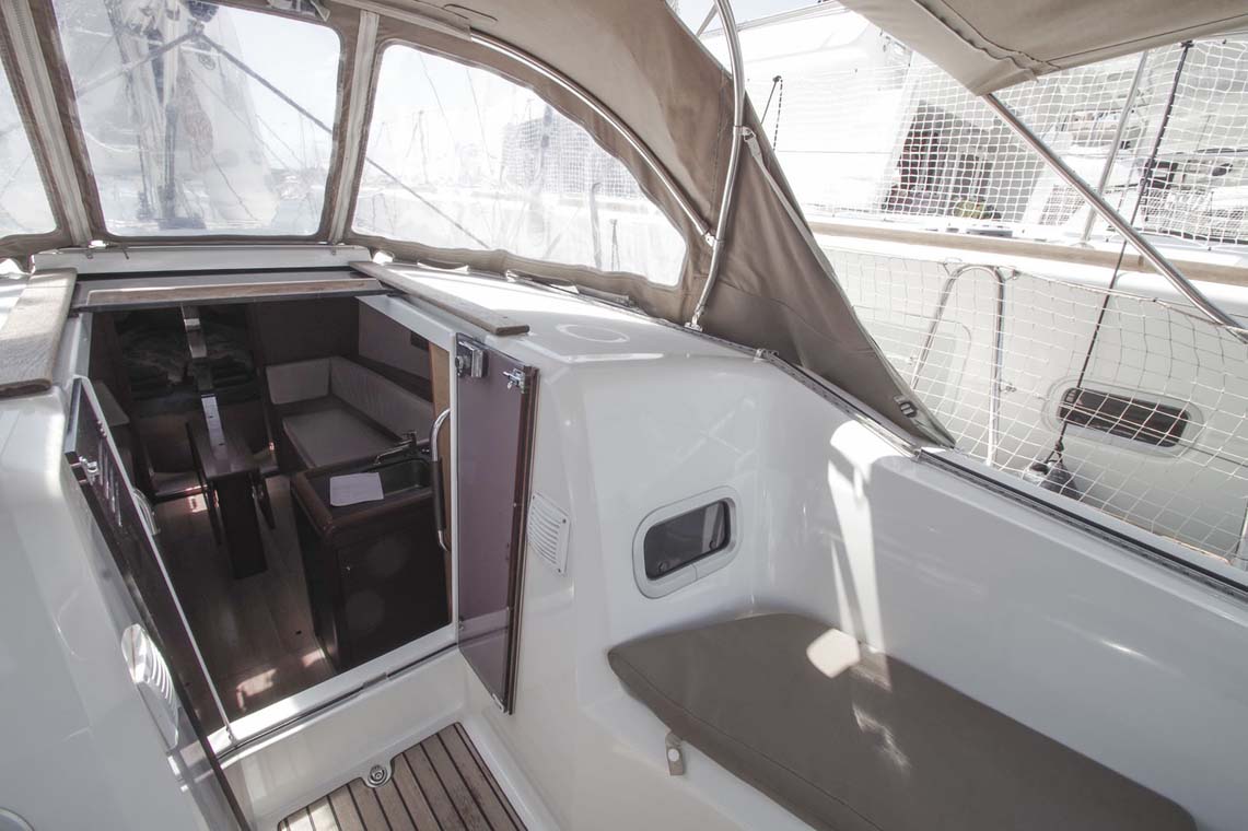 | Outside | Badeplattform, Biminitop, Cockpitdusche, Cockpitpolster, elektr. Ankerwinsch, Solaranlage, Sprayhood, Teak im Cockpit |