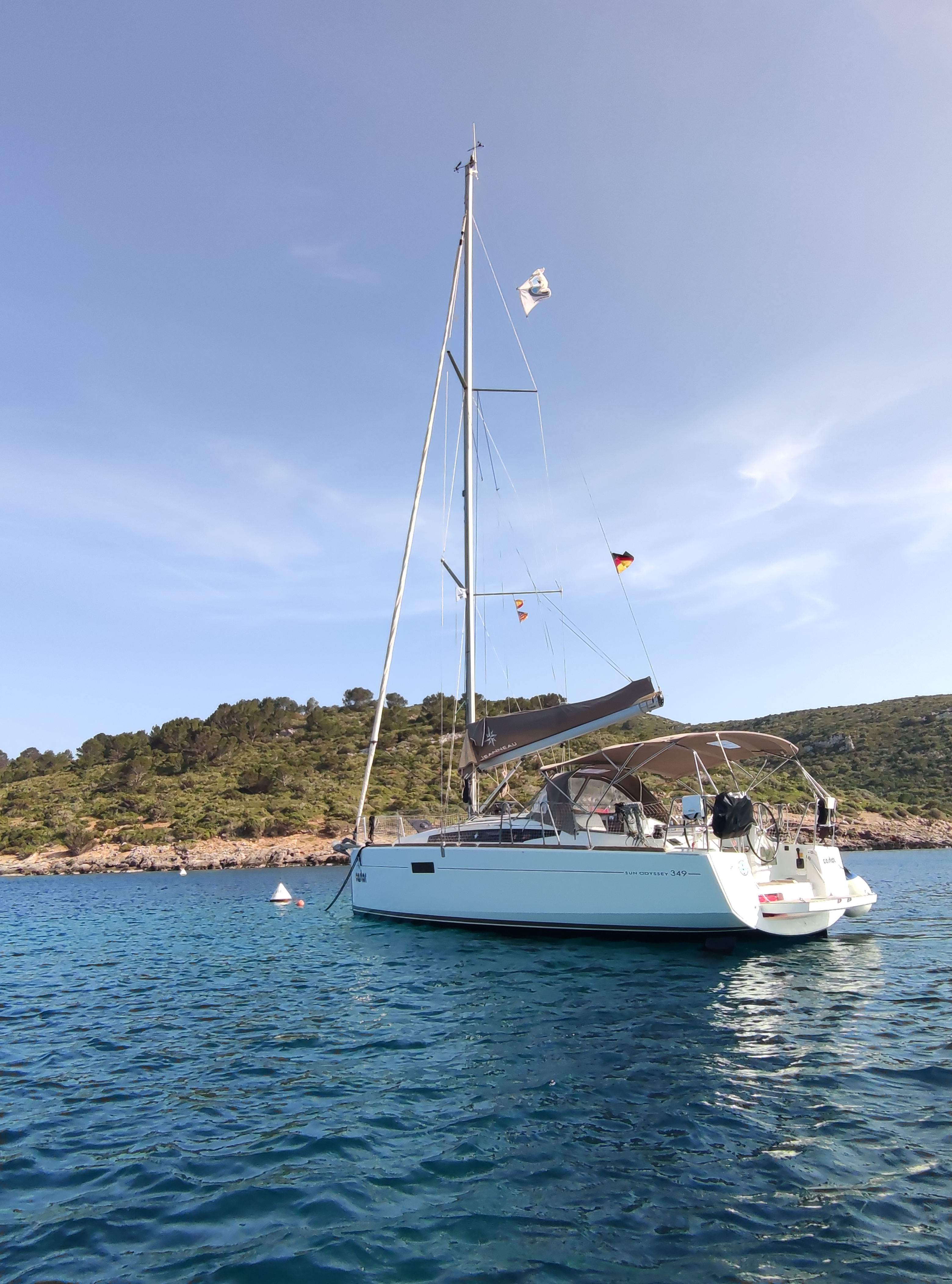 Yacht hatte eine Schwäche in der Servicebatterie, wenn der Kühlschrank mit lief, musste der Motor öfter zum Laden gestartet werden, konnte man aber mit leben. Wenn das Dingi nicht auf dem kleinen Solarpanel lag war es etwas besser.
