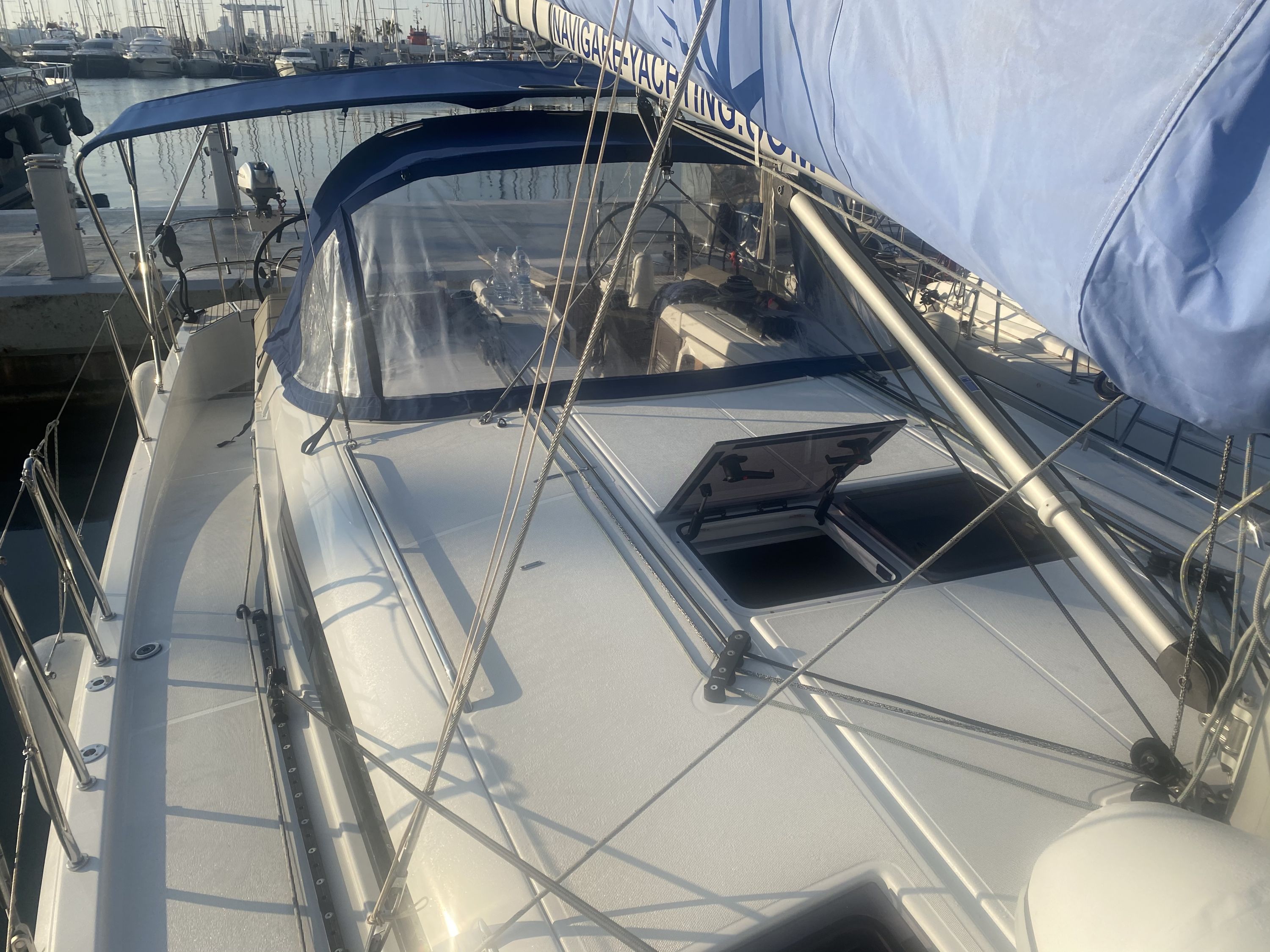 | Outside | 220 V-Landanschluss, Anker mit Kette, Badeleiter, Badeplattform, Biminitop, Bootshaken, Cockpitdusche, Cockpitlautsprecher, Cockpitpolster, Cockpittisch, elektr. Ankerwinsch, Fender, Festmacherleinen, Gangway, Kugelfender, Sprayhood, Teak im Cockpit, Wantenschneider, Windex, Winschen |