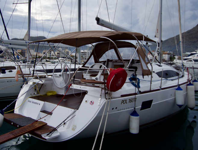 | Outside | Badeplattform, Biminitop, Cockpitdusche, Cockpitlautsprecher, Cockpittisch, elektr. Ankerwinsch, elektr. Winsch, Gangway |