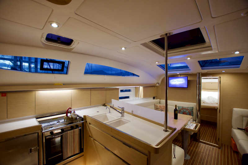 | Safety | AIS Empfänger, Automatikwesten, Autopilot, Bilgepumpe, Bootsmannstuhl, Bordapotheke, Bordwerkzeug, Bugstrahlruder, Lifebelts, Navigationslichter, Notsignale, Rettungsinsel, UKW-Funk m. DSC |