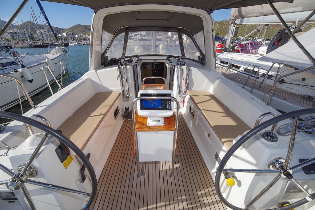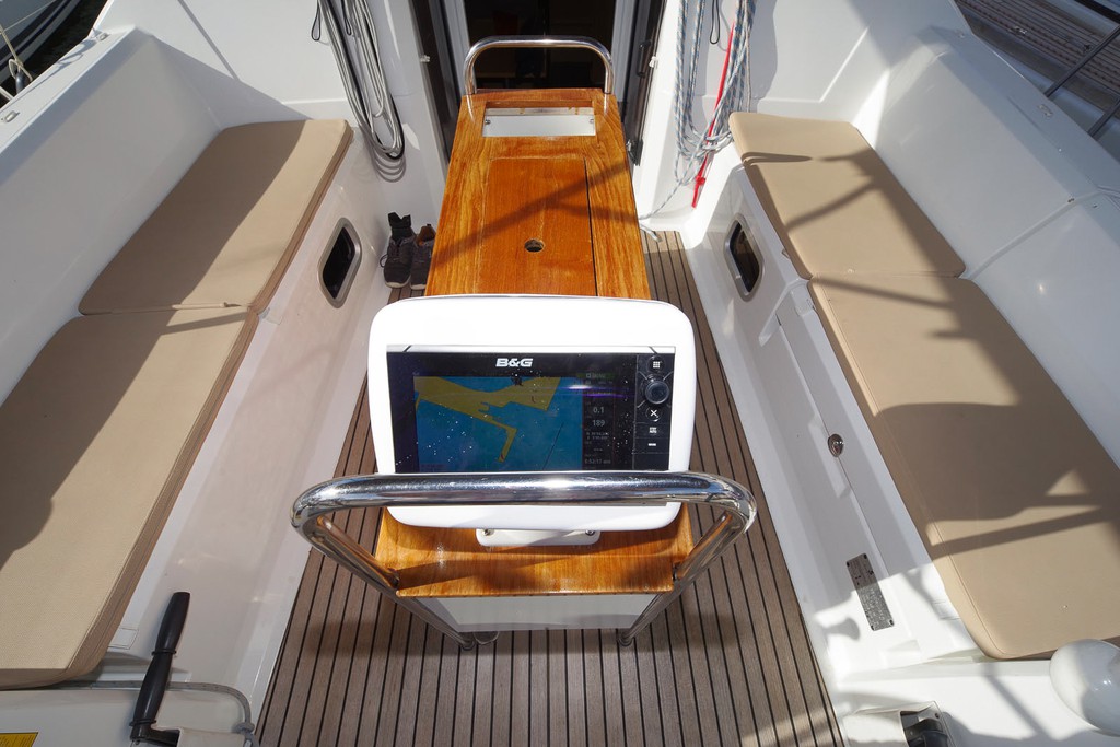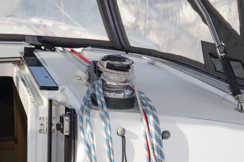 | Outside | Badeleiter, Badeplattform, Biminitop, Cockpitdusche, Cockpitpolster, Fender, Fernsteuerung für elektr. Ankerwinsch, Festmacherleinen, Sprayhood, Winschen |