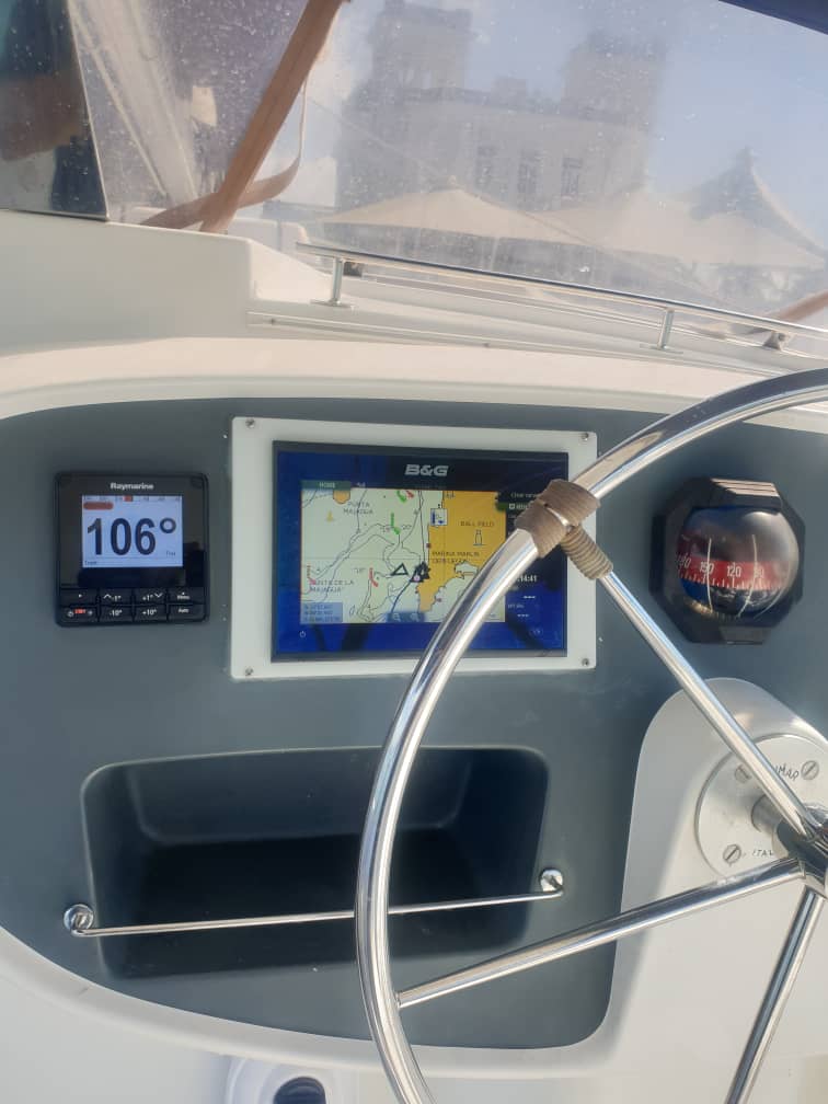 | Navigation | Echolot, GPS mit Kartenplotter, Navigationsbesteck, Radar, Windmesser |