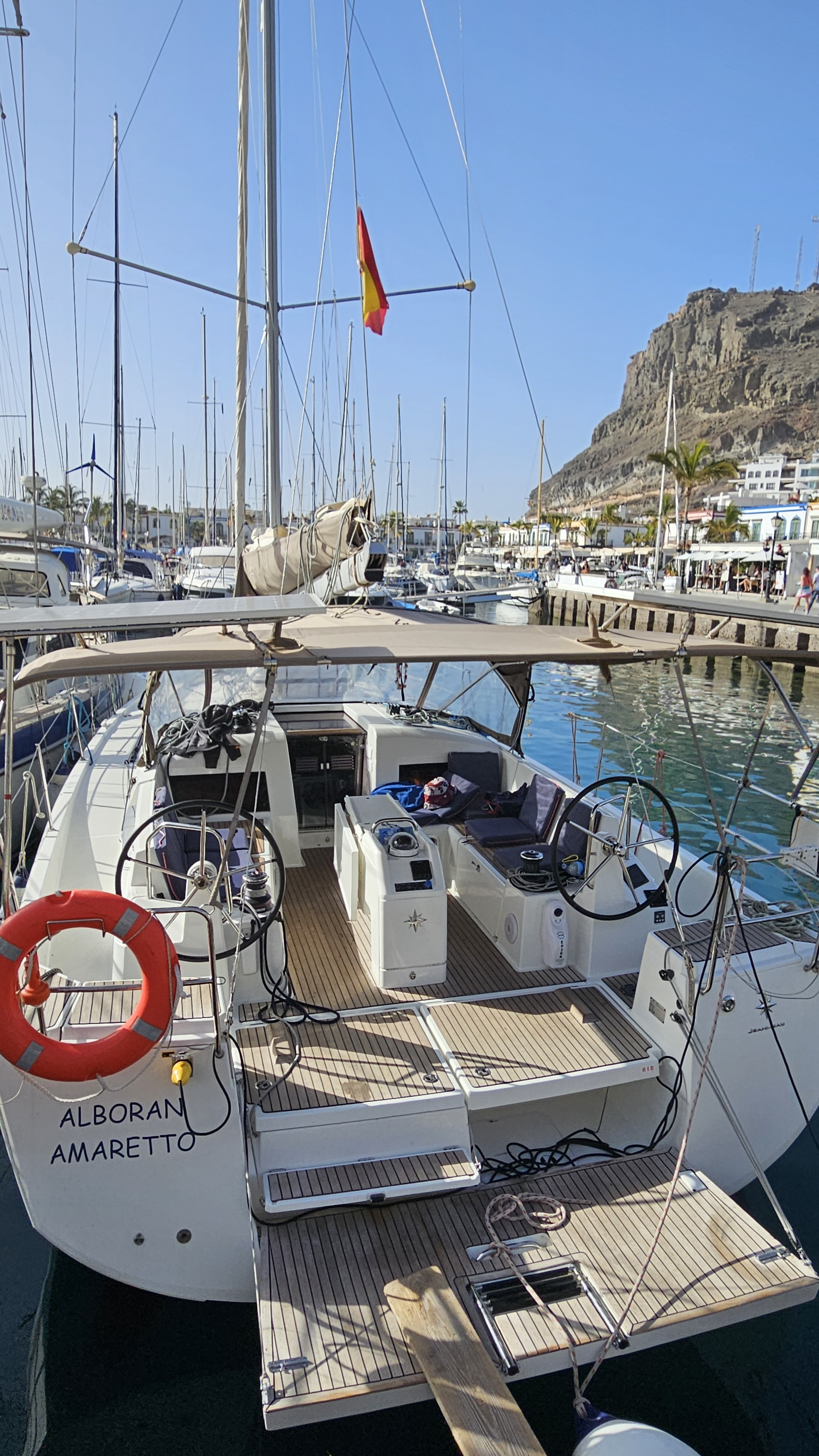 Die Yacht war, wie bei Alboran bekannt, für das Alter (Bj. 2023) schon recht abgenutzt, aber in einwandfreiem Zustand. Das Personal absolut hilfsbereit, immer präsent und für den kleinen Stützpunkt mit 4-5 Personen vor Ort. Die Yachtausstattung ist einfach (z.B. nur ein Kühlschrank, keine Kühlbox) wie auch wenige Stauschränke, aber das ist Sun Odyssey typisch und nicht dem Vercharterer anzulasten. Dafür 3 gute Winschkurbeln, Bose Soundanlage, nie Batterieprobleme, zweites UKW-Handfunkgerät, also echt top.