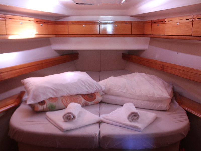 | Outside | Anker mit Kette, Badeleiter, Biminitop, Cockpitdusche, Cockpitlautsprecher, Cockpittisch, elektr. Ankerwinsch, Fender, Festmacherleinen, Solaranlage, Sprayhood, Teak im Cockpit, Wasserschlauch, Windex |