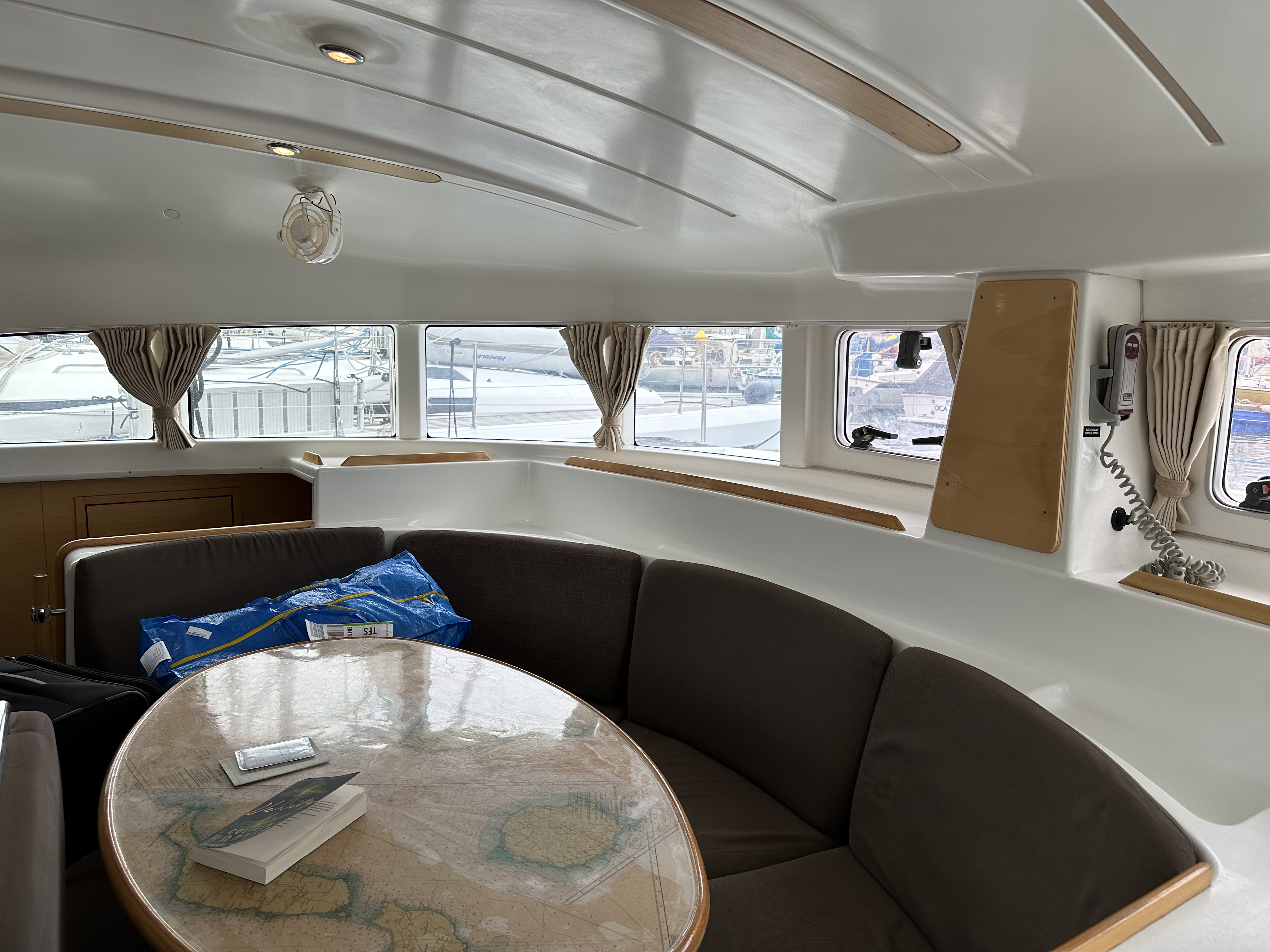 | Outside | Biminitop, Cockpitlautsprecher, Cockpitpolster, Cockpittisch, elektr. Ankerwinsch, elektr. Winsch, Festmacherleinen, Gangway, Sprayhood, Wasserschlauch, Windex |