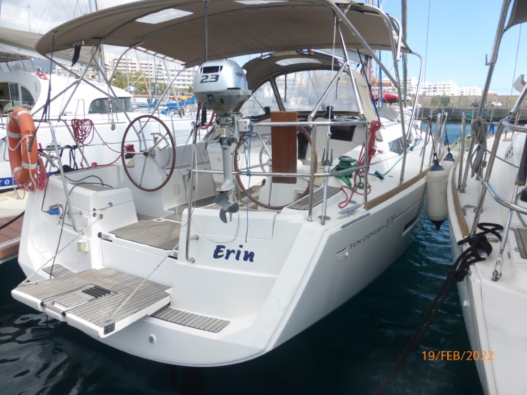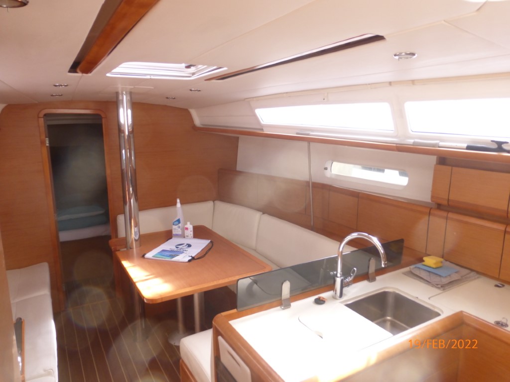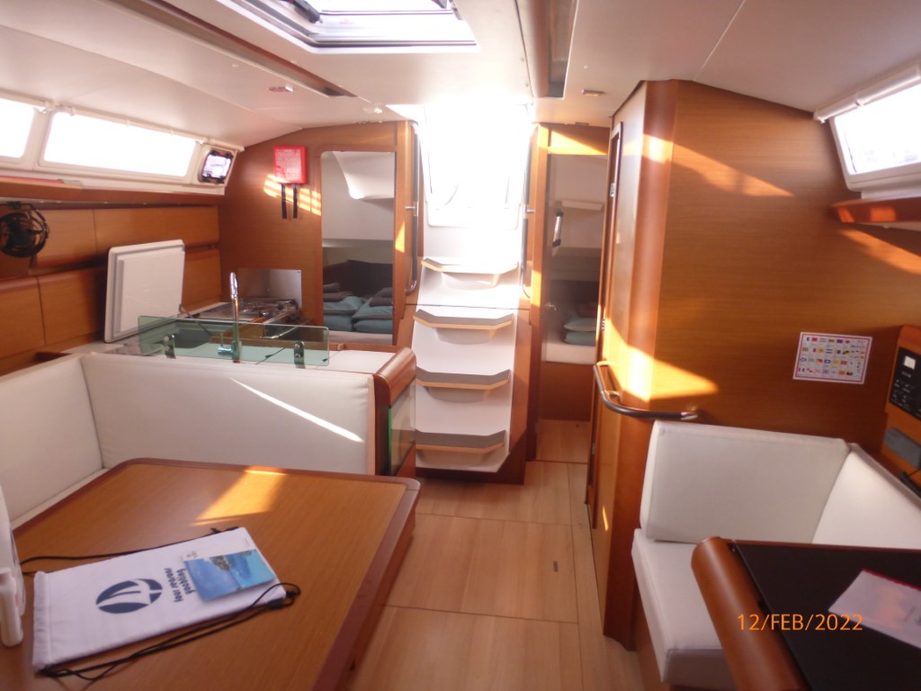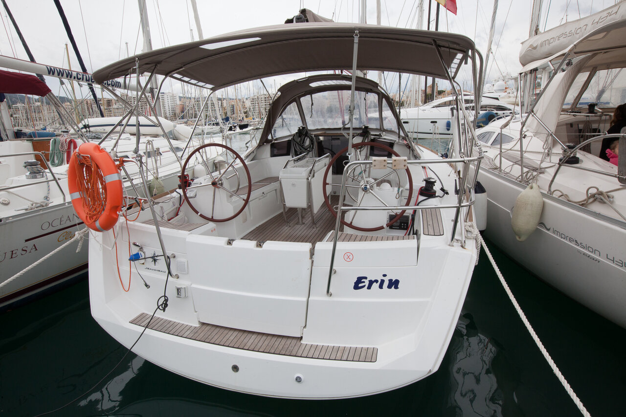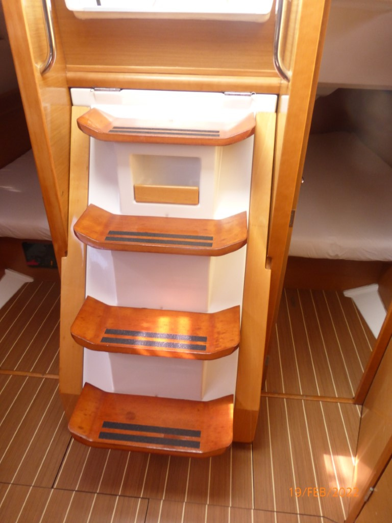 | Outside | 12 V-Anschluss, Anker mit Kette, Badeleiter, Badeplattform, Biminitop, Cockpitdusche, Cockpitlautsprecher, Cockpittisch, elektr. Ankerwinsch, Fender, Gangway, Segel-Flickwerkzeug, Sprayhood, Teak im Cockpit, Treibanker, Wasserschlauch, Windex |